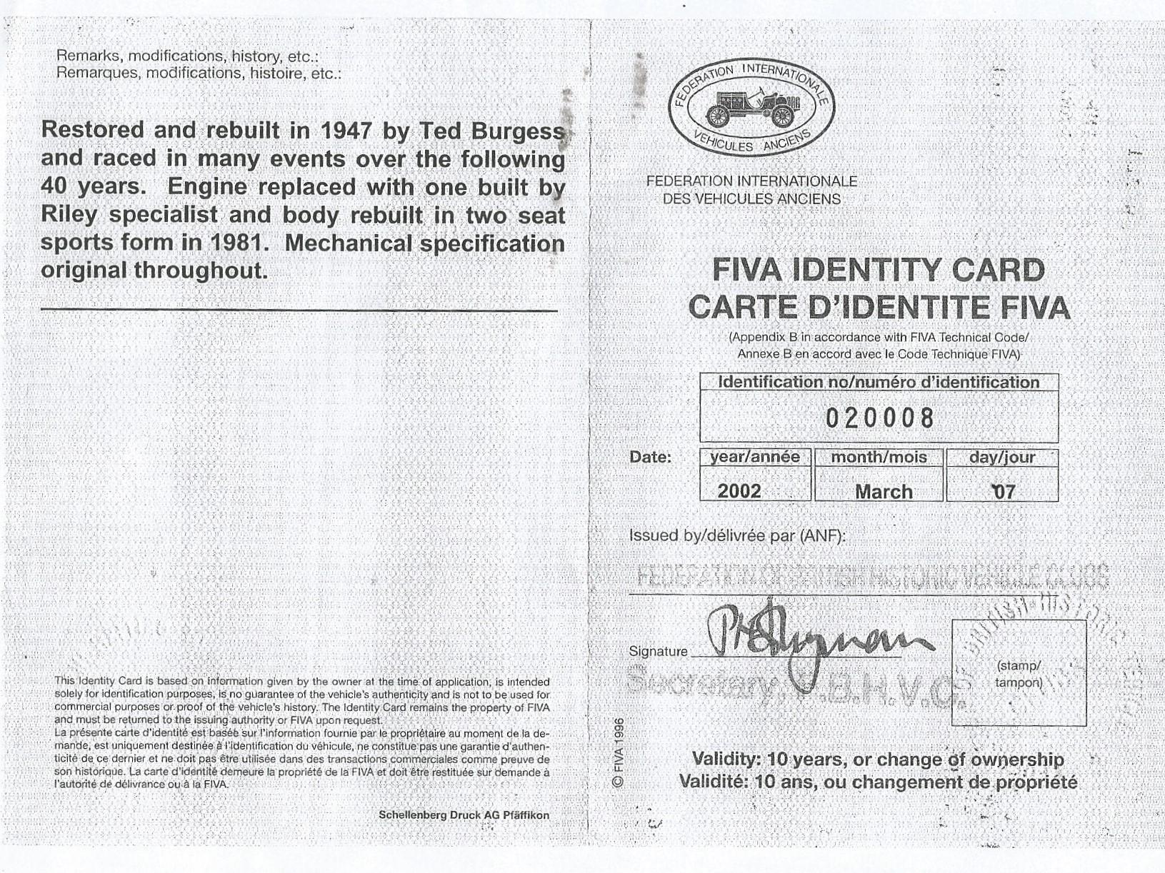 The car received FIVA certification in 2002.