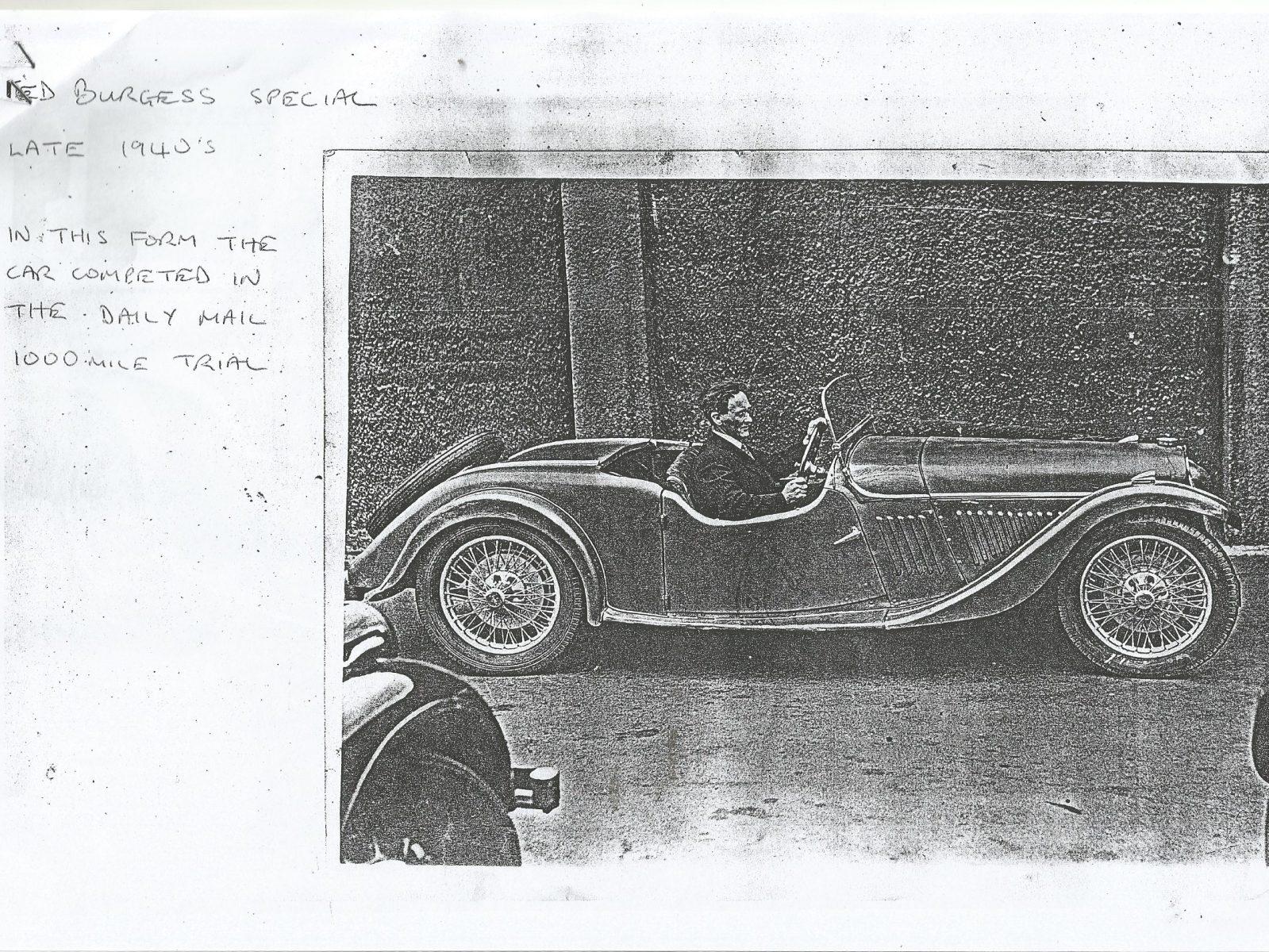 A Classic & Sportscar article from January 1986 recounts the memories of then-owner R. B. Rands, Teddy Burgess's nephew, who sold the car in 1960 for just £10 due to the introduction of the MOT test and the lack of a garage. At that time it still retained its Tourer configuration and was nicknamed “The Bluebird” within the family; the registration book confirms that its original colour was blue before the present green.