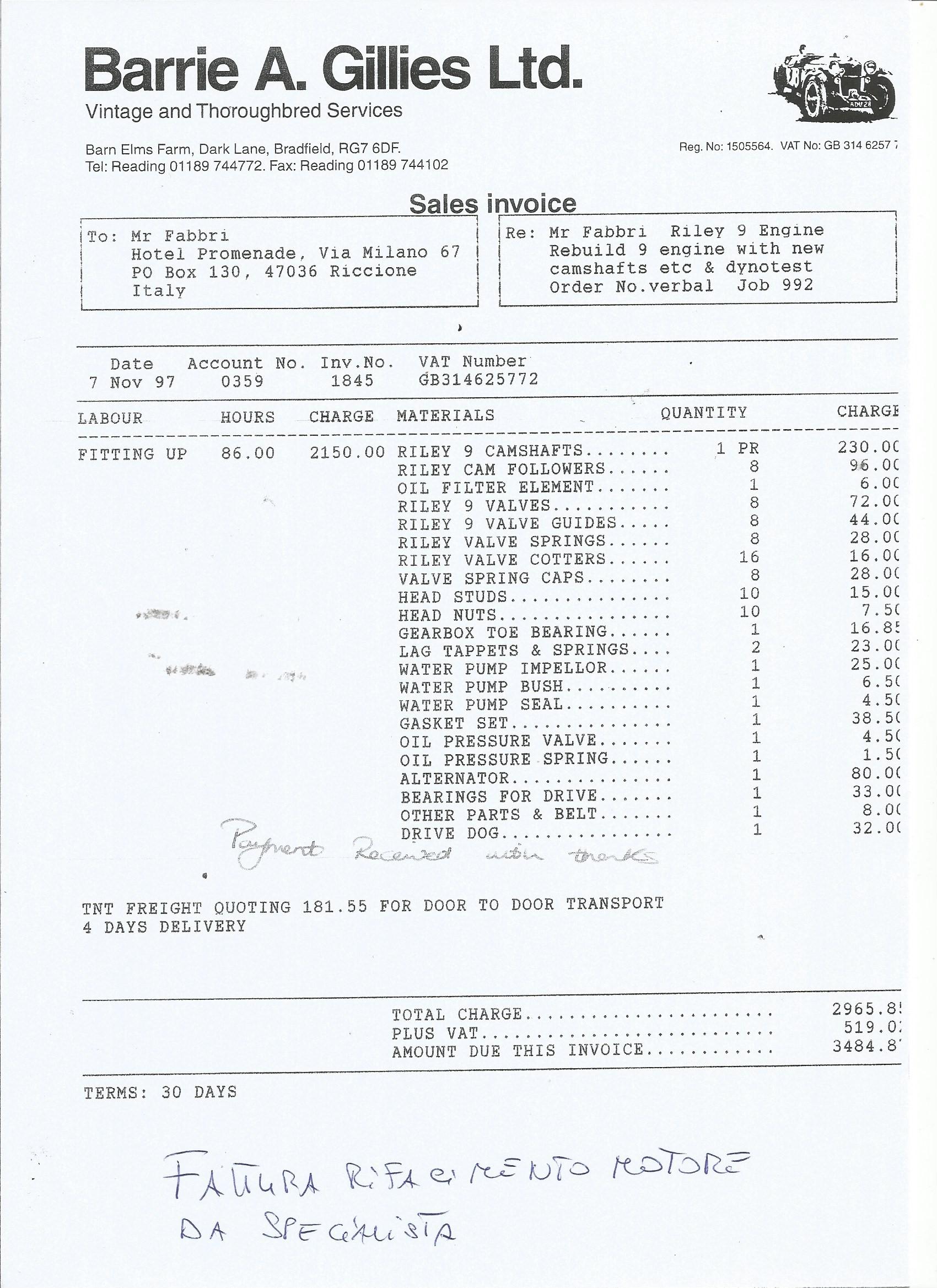 In 1997 the new owner opted for a more road-oriented engine. It was fully rebuilt in the UK by specialist Barrie Gillies, with invoice available.