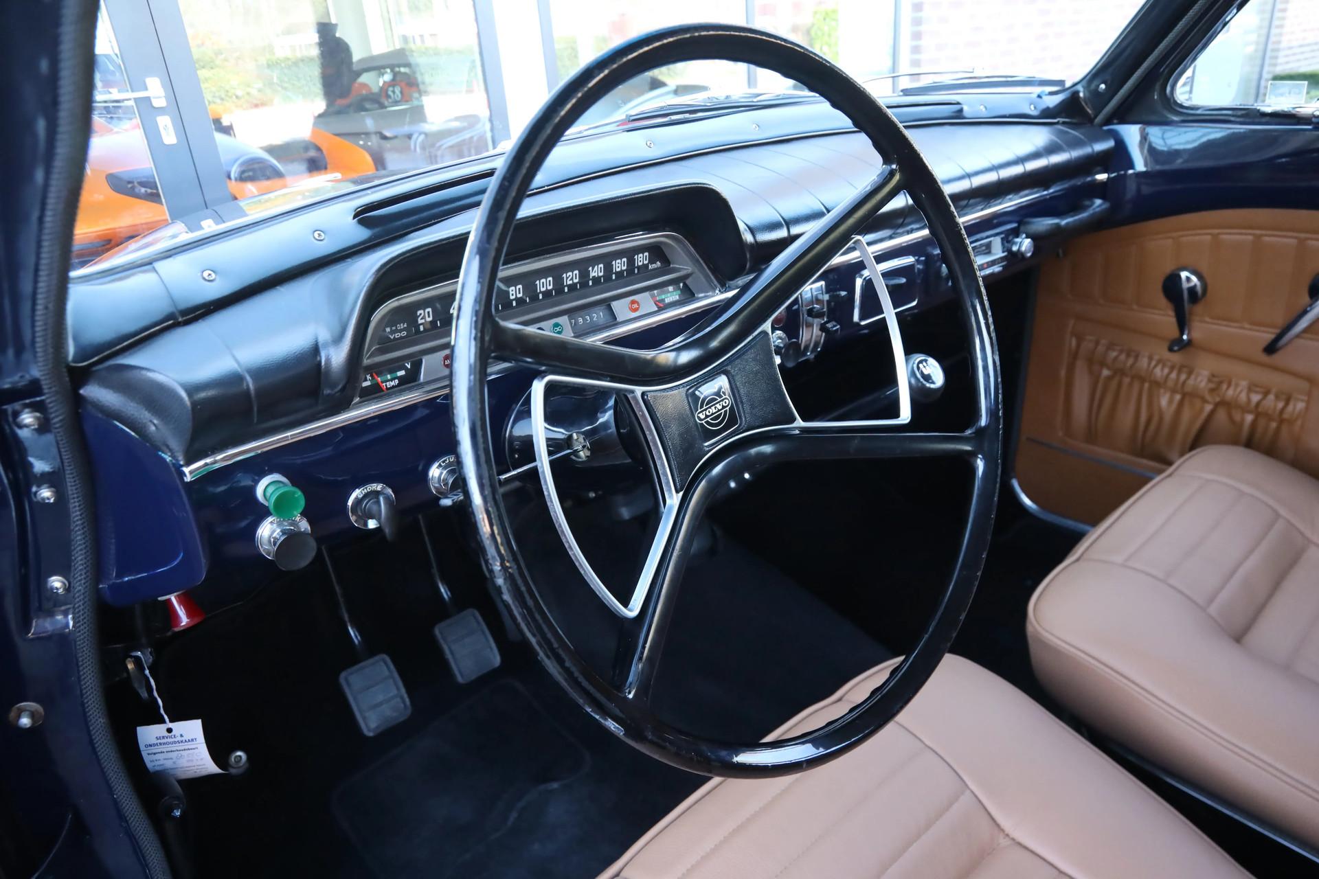 The Volvo is powered by the beloved B18 engine. The engine produces 75 horsepower and in this case, is mated to a four-speed manual transmission. Both the transmission and the engine were completely overhauled during the restoration and are therefore in good condition. The engine runs nicely and moves the Volvo effortlessly. The transmission shifts precisely and has fine gearbox ratios. The engine compartment looks beautifully cared for and was also repainted during the restoration. The brakes and chassis have been completely renewed. During the restoration, all wishbones, the subframe and the rear axle were all repainted or powder coated. The mufflers were replaced during the restoration and the exhaust system is also in very good condition.