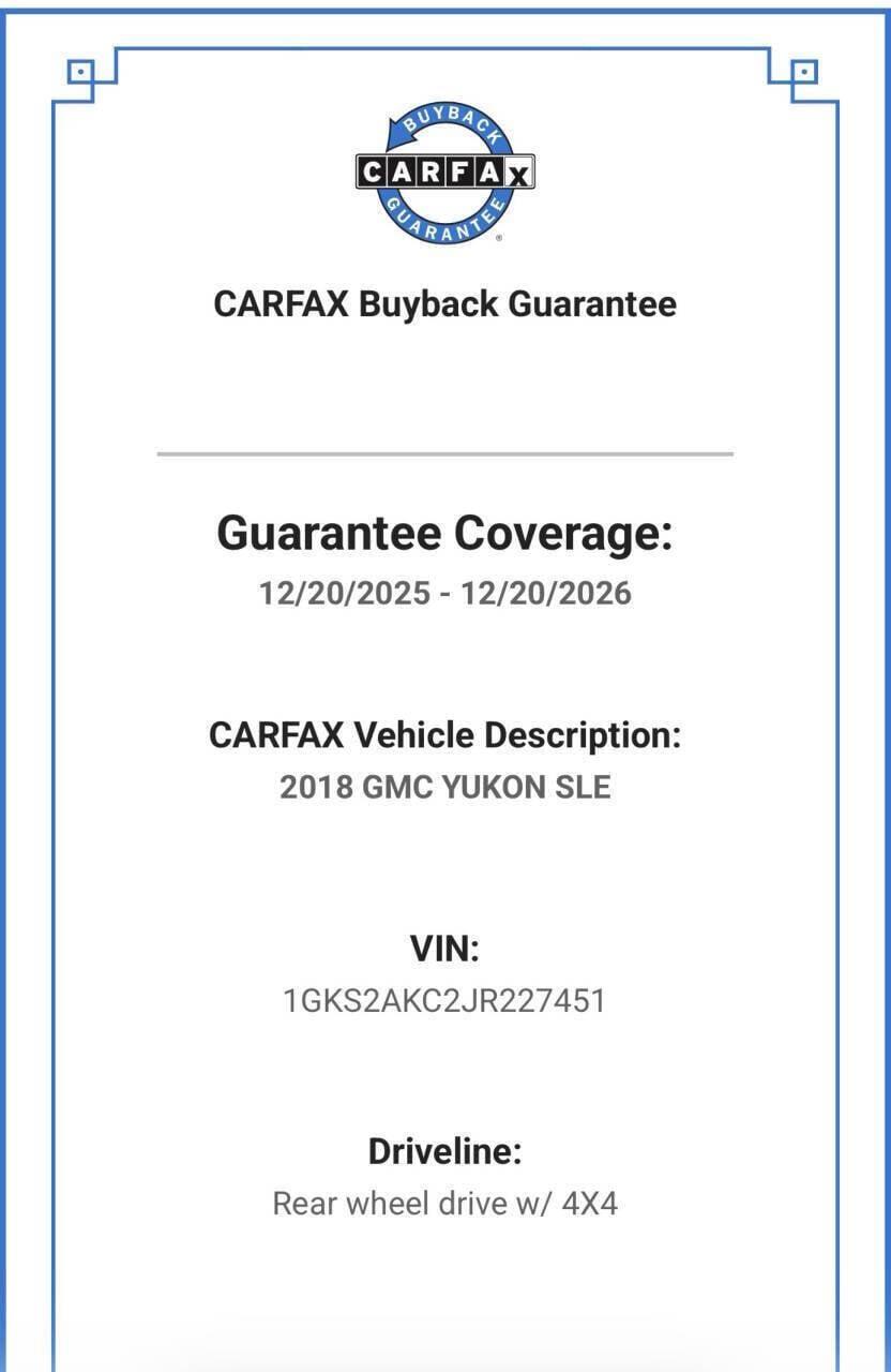 Vehicle Overview Model: 2018 GMC Yukon SLE Engine: 5.3 Liter V8 Transmission: Automatic Carfax Report: Clean Ownership: Only 2 Previous Owners Buyback Guarantee: 1 Year CARFAX Buyback Guarantee Service History: Well serviced with documents. Prior Certified Pre-Owned. Sold new at Ellis Chevrolet Buick GMC, Malone, New York. Installed Features Drivetrain: 4X4, On Demand 4WD, Locking Differential Comfort: Adjustable Lumbar Support, Dual-Zone Climate Control, Rear Air Conditioning, Heated Side Mirrors Technology: Android Auto, Apple CarPlay, Bluetooth, Premium Sound System, Satellite Radio, Wi-Fi Compatible Safety: Anti-Theft System, Driver Assistance Package, Electronic Braking System, Electronic Traction Control, Curtain Airbags, Side Airbags, Rearview Camera Convenience: Keyless Entry, Remote Engine Start, Power Liftgate, Power Seats, Power Adjustable Pedals Exterior: Chrome Accents, Alloy Wheels, Black Roof Rails, Fog Lights, Running Boards Seating: Bucket Seats, Third Row Seating, Rear Climate Controls, Split Folding Third Row Seat(s) Additional Features Towing Capability: HD Trailering Package, Trailer Brake Controller, Trailer Hitch, Trailer Wiring Driving Experience: Active Parking System, Braking Assist, Stability Control, Cruise Control Miscellaneous: Electronic Messaging Assistance, Multi-Function Display, Value Package, Voice Activated Commands, Tire Pressure Monitoring System This 2018 GMC Yukon SLE is equipped with a wide range of features, providing both luxury and practicality for all your driving needs! Whether you're navigating city streets or embarking on an adventure, this SUV has you covered. MGM Buy It Now Price: $21,794 Financing Options: Down payment starting at $2500 Long-term loans available No prepayment penalties pay off anytime Monthly payments as low as $259 (with approved credit) Sales tax and delivery can be financed Good credit required How to Get Started: Apply today on our website Text your ZIP code for a delivery quote Call or text us at 847-848-1850 Vehicles are sold as-is Viewing by appointment only WHY BUY FROM MGM? Over 200 cars in stock We own our inventory no consignments No inflated commissions Buy with confidence: 100% positive eBay feedback Over 500 five-star reviews MGM Classic Cars LLC 150 S. Church Street Addison, IL 60101 Mon Fri: 9 AM 5 PM Sat: 10 AM 3 PM Visit: MGMClassicCars.com