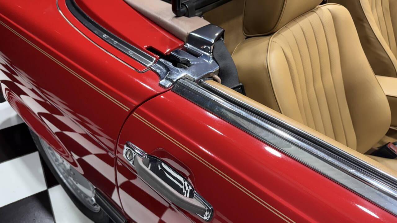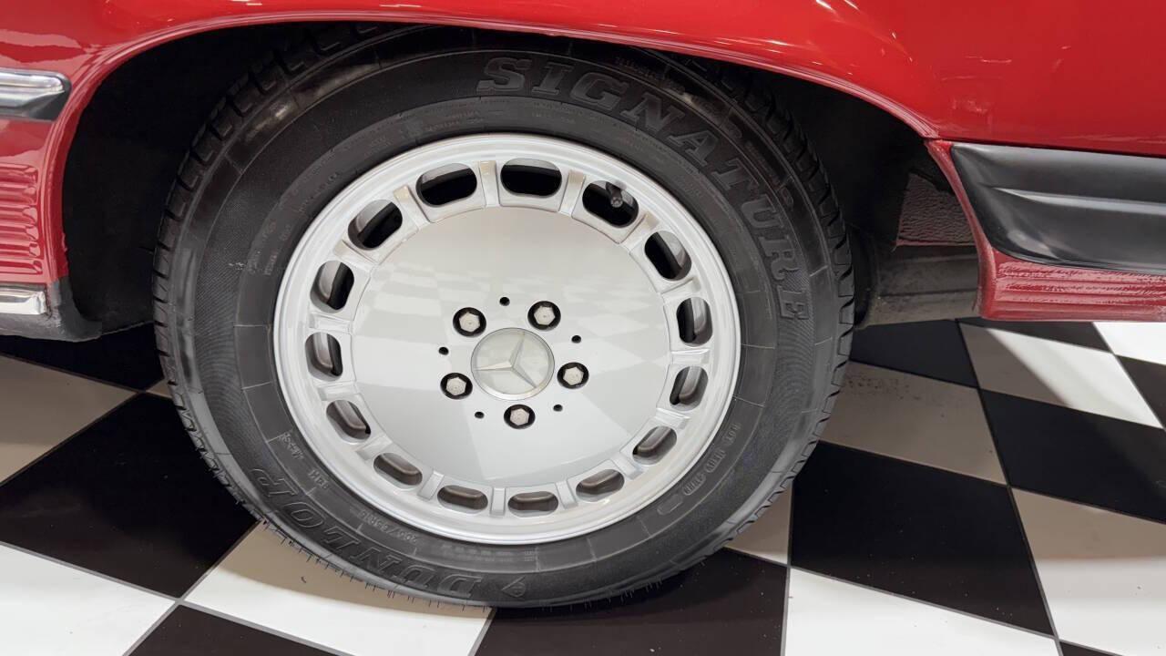 This 1987 Mercedes-Benz 560SL is finished in Signal Red over Palomino leather and is powered by a 5.5-liter V8 paired with a four-speed automatic transmission. Equipment includes a limited-slip differential, a color-matching removable hardtop, a replacement black soft top, silver-finished 15 Gullideckel alloy wheels, a Sony stereo, aftermarket speakers, electric windows, central locking, cruise control, and automatic climate control. Purchased by the previous owner in 2017, this R107 shows 94k miles. The car is finished in Signal Red (568) and features a body-color removable hardtop and a replacement black convertible soft top. Additional exterior equipment includes quad headlights, fog lights, and chrome-accented bumpers and trim. The power antenna does not work. The silver-finished 15 Gullideckel alloy wheels are mounted with Dunlap tires. The car was factory equipped with power steering, a fully independent suspension, and power-assisted four-wheel disc brakes. The cabin features two bucket seats upholstered in Palomino leather(274) along with a matching center console and door panels. Interior equipment includes a Sony stereo, aftermarket speakers, electric windows, central locking, cruise control, and automatic climate control. The four-spoke leather-wrapped steering wheel frames VDO instrumentation including a 170-mph speedometer, a 7k-rpm tachometer, a clock, and gauges for coolant temperature, oil pressure, fuel economy, and fuel level. The six-digit odometer shows 94k miles, approximately 4k of which were added from previous ownership. The 5.5-liter V8 was factory rated at 227 horsepower and 279 lb-ft of torque. Power is sent to the rear wheels through a four-speed automatic transmission and a limited-slip differential. The Carfax report shows no accidents or other damage. Suggested original price $28,900.00 MGM Buy it Now price $22,995.00 Financing available $2500 down pmt Must have good credit Sales tax & delivery can be financed as well Apply today on our website Text zip code for delivery quote 847-848-1850 All cars are sold in as-is condition Shown by appointment only! MGM Classic Cars LLC 150 S. Church Street Addison, IL 60101 Mon-Fri 9 am-5 pm Sat 10 am-3 pm