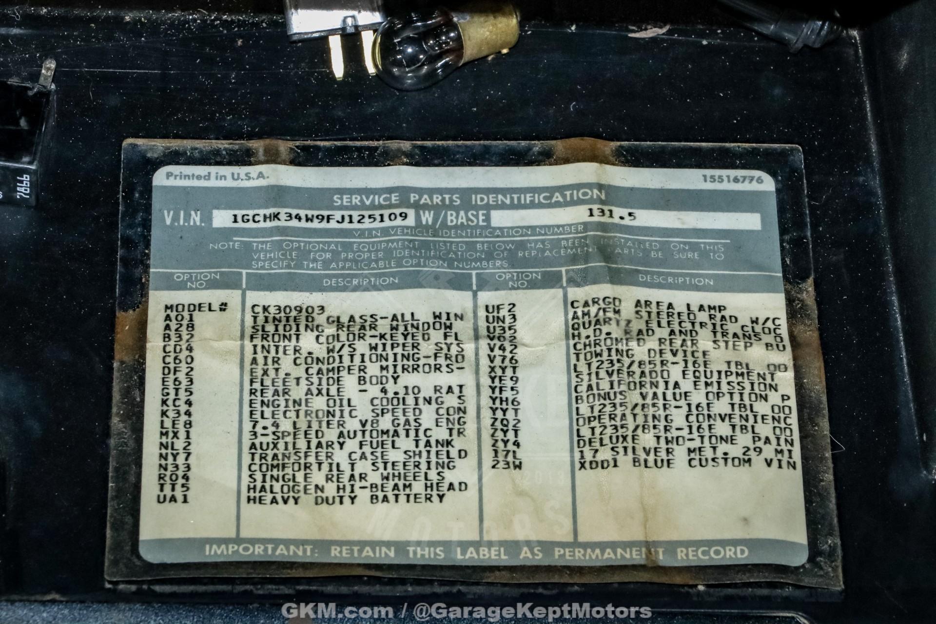 1985 Chevrolet K30 - 454ci V8- 3 Speed Automatic Transmission- 4x4- 4.10 Rear Axle- Grey Exterior- Tan Interior- 17" Mickey Thompson Wheels Wrapped In 35" Toyo Open Country Tires- Badland WinchThis 1985 Chevrolet K30 is a true heavy-duty classic built to handle whatever you throw at it, combining big-block power with serious off-road capability. At its heart is a massive 454ci V8, delivering the kind of torque and raw performance that made these trucks legends on job sites and trails alike. Paired with a 3-speed automatic transmission and a rugged 4x4 drivetrain, this K30 is ready to work, climb, tow, or cruise with authority.Equipped with a 4.10 rear axle, this truck is geared for strength and pulling power, making it ideal for both off-road adventures and heavy-duty use. The stance is aggressive and purposeful, sitting on 17-inch Mickey Thompson wheels wrapped in 35-inch Toyo Open Country tires, giving it the ground clearance and traction needed to tackle tough terrain with confidence.Finished in a clean grey exterior over a tan interior, this K30 strikes a balance between rugged utility and classic square-body style. The interior offers a straightforward, functional layout true to the era, while still providing a comfortable space for long drives or weekend adventures. Adding to its capability is a Badland winch, ensuring you're prepared when the terrain gets challenging or when it's time to lend a hand. Whether you're pulling yourself out of a tough spot or helping others, this truck is built to perform when it matters most.Square-body trucks continue to rise in popularity, and examples like this powered by a big block and equipped for real-world use are becoming increasingly hard to find. This 1985 K30 isn't just a classic truck; it's a statement piece that delivers power, presence, and purpose every time it hits the road or trail.