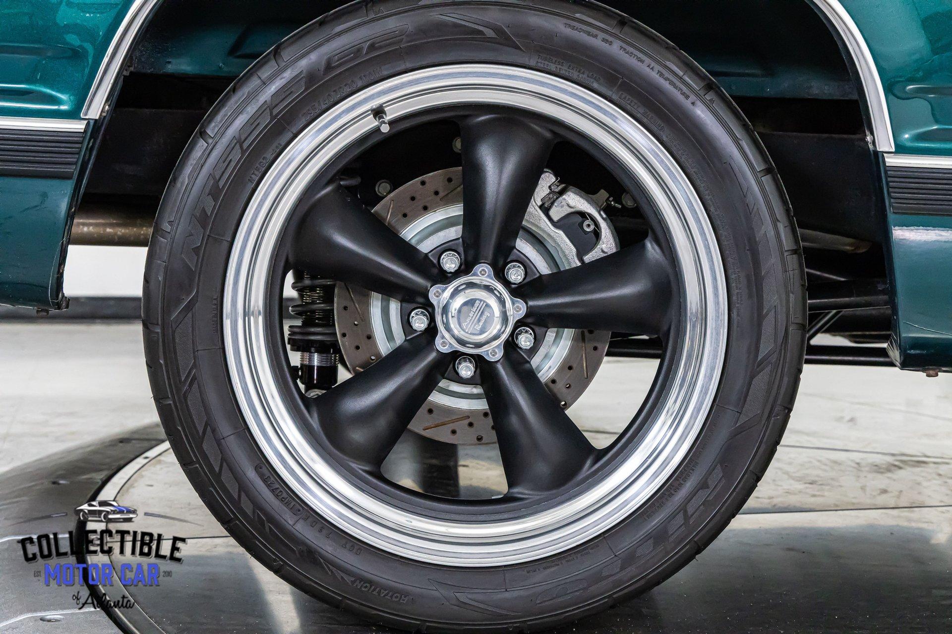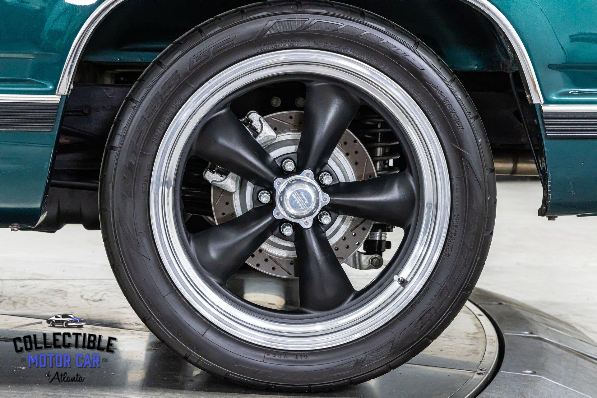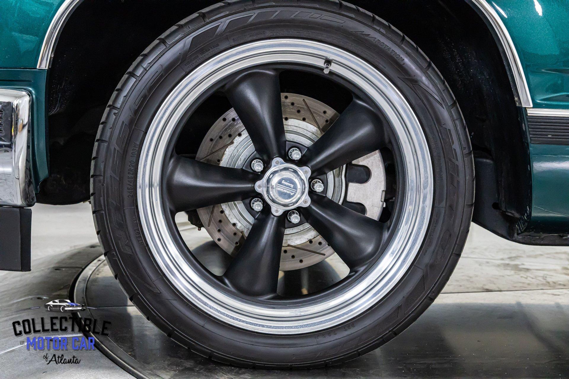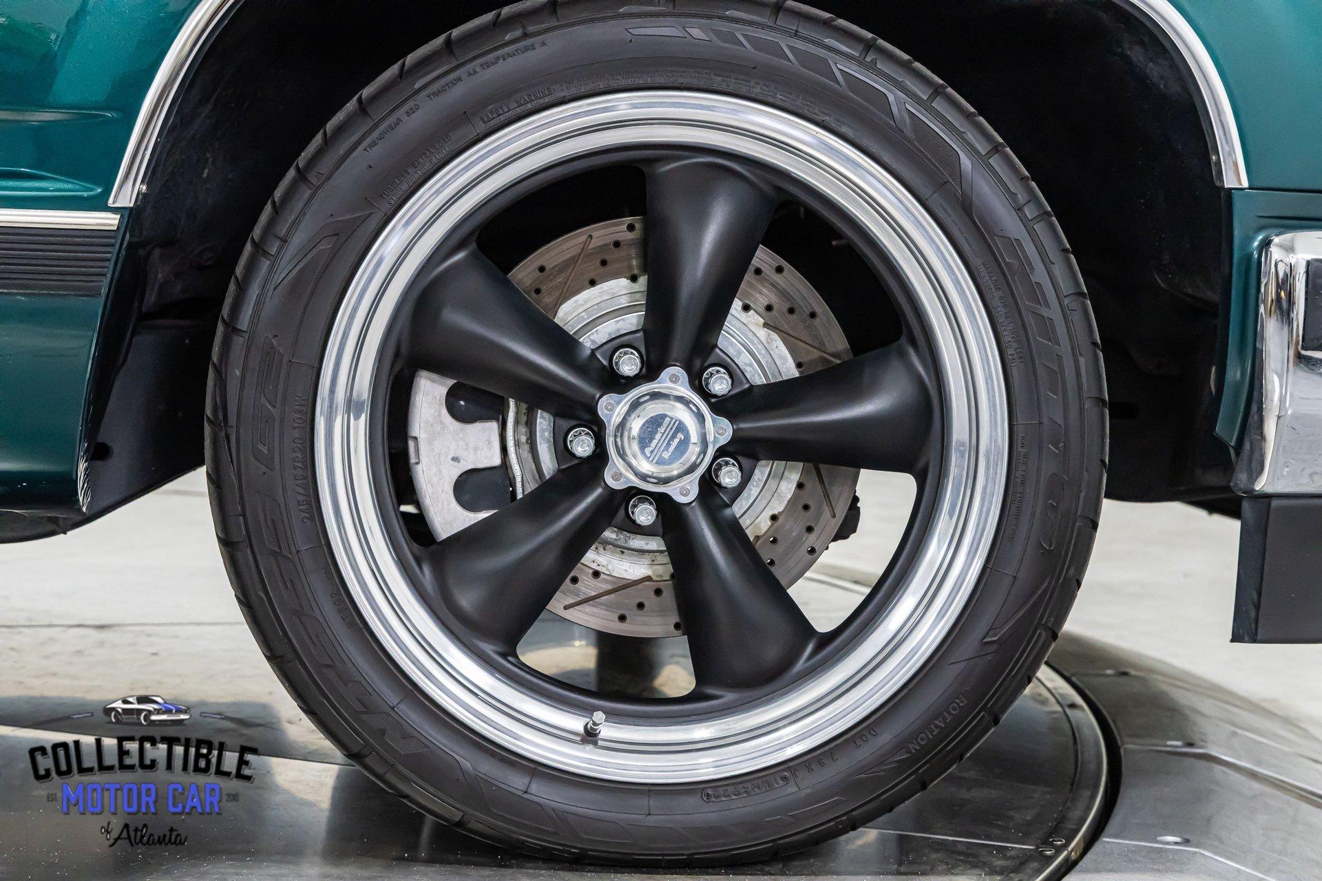This GMC sits right. It rides on custom American Racing Torq Thrust wheels measuring: