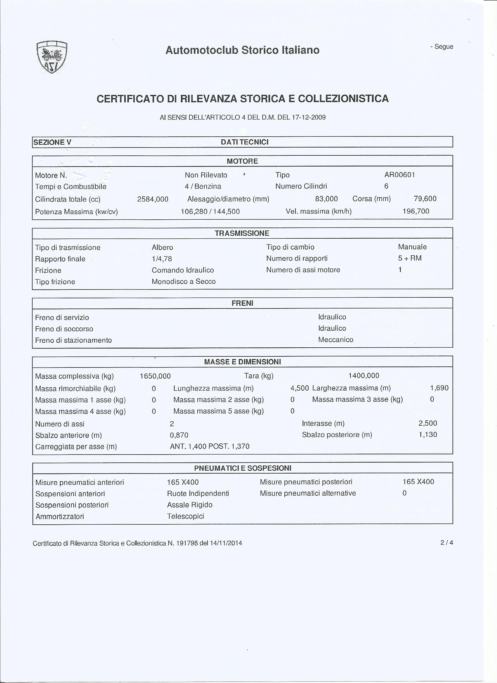 OMOLOGAZIONE ASI TARGA ORO- CRS