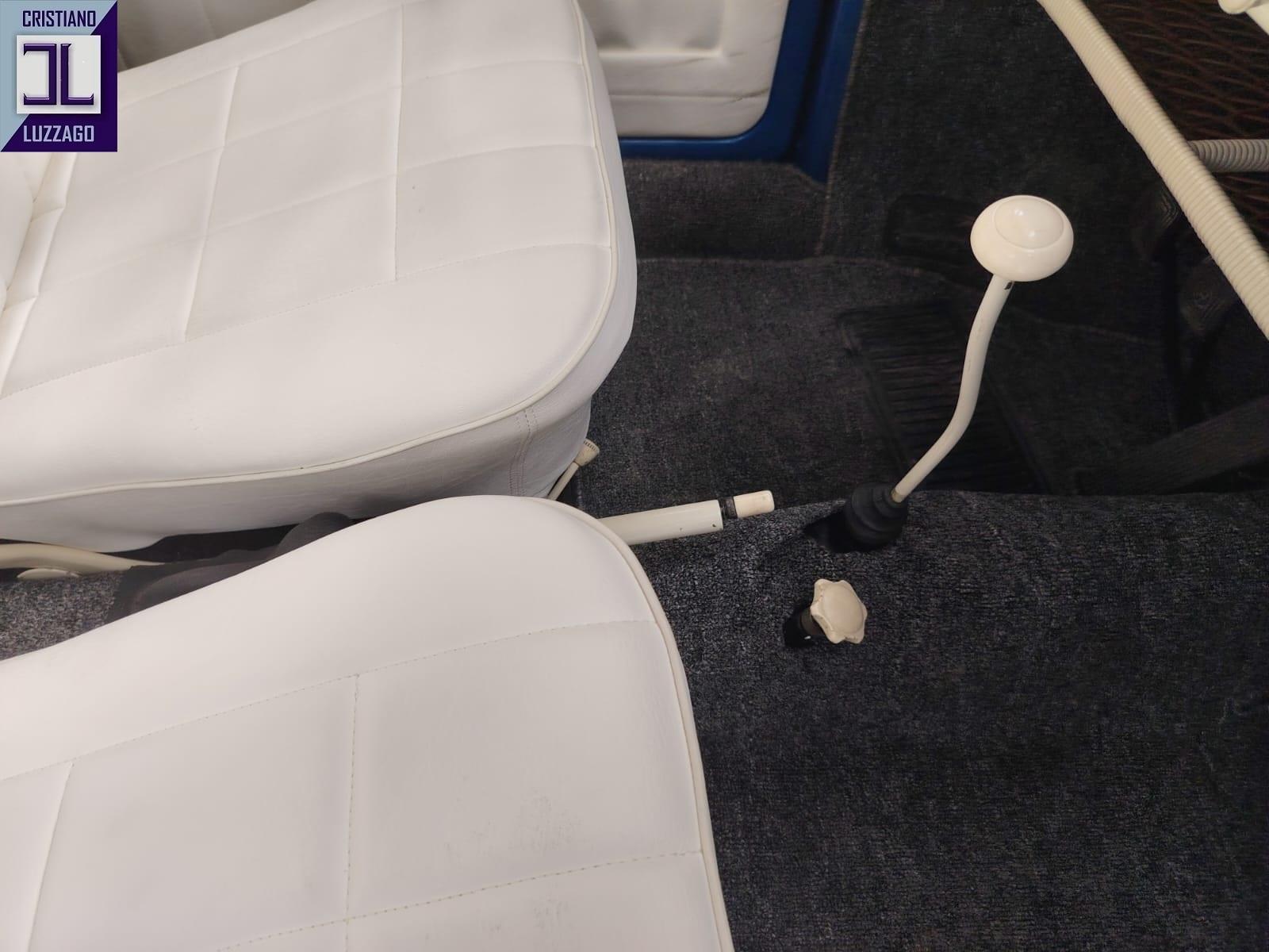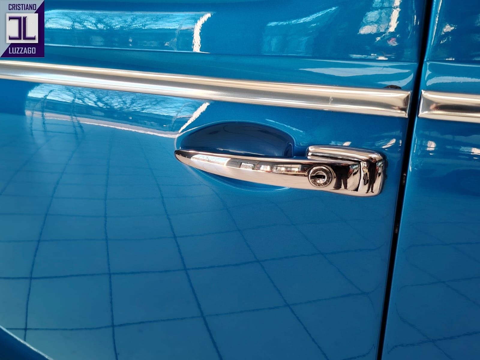 The metallic blue exterior and white interior are custom-selected colors, not original Volkswagen specifications, chosen to create a unique and elegant combination.