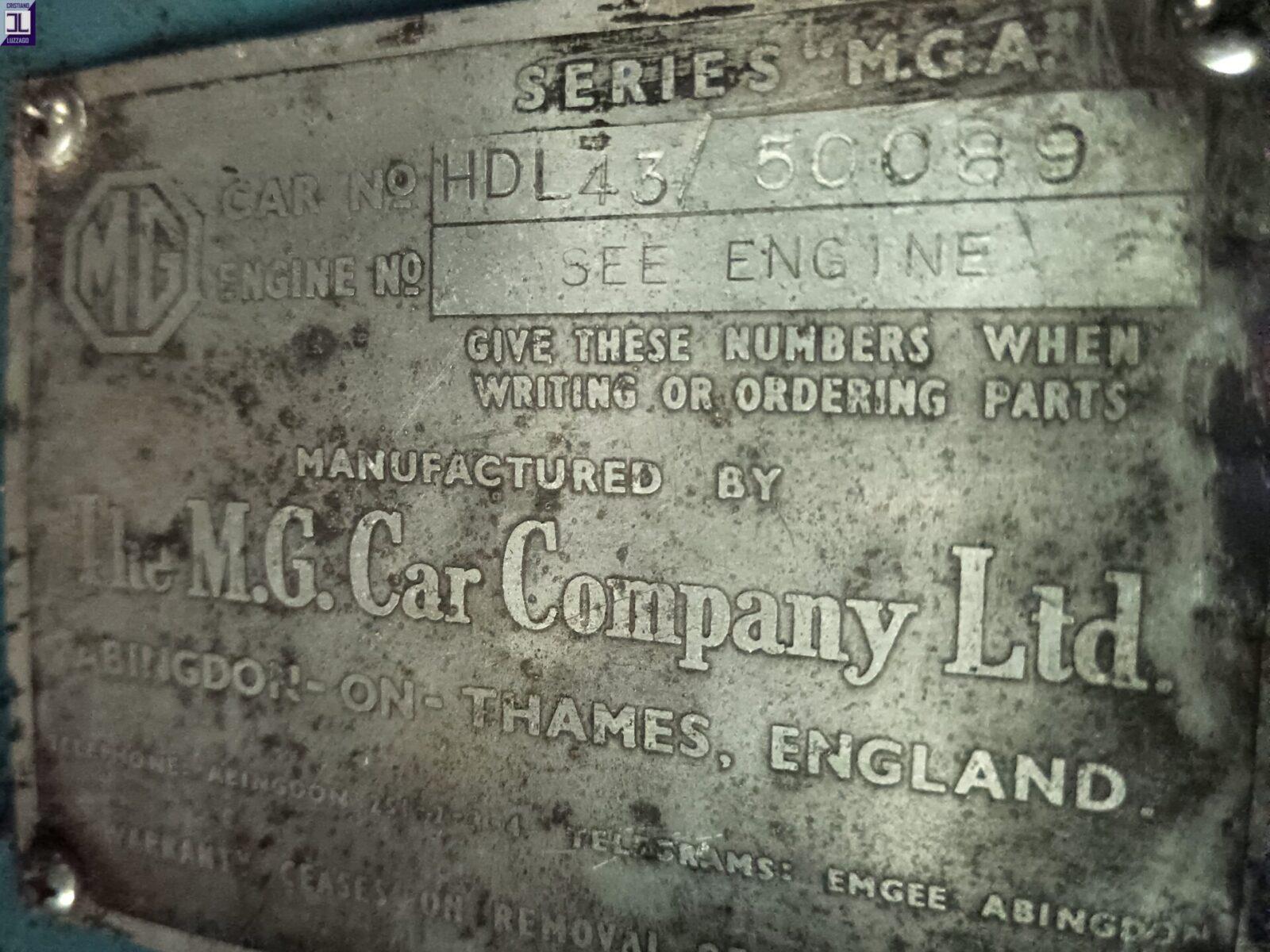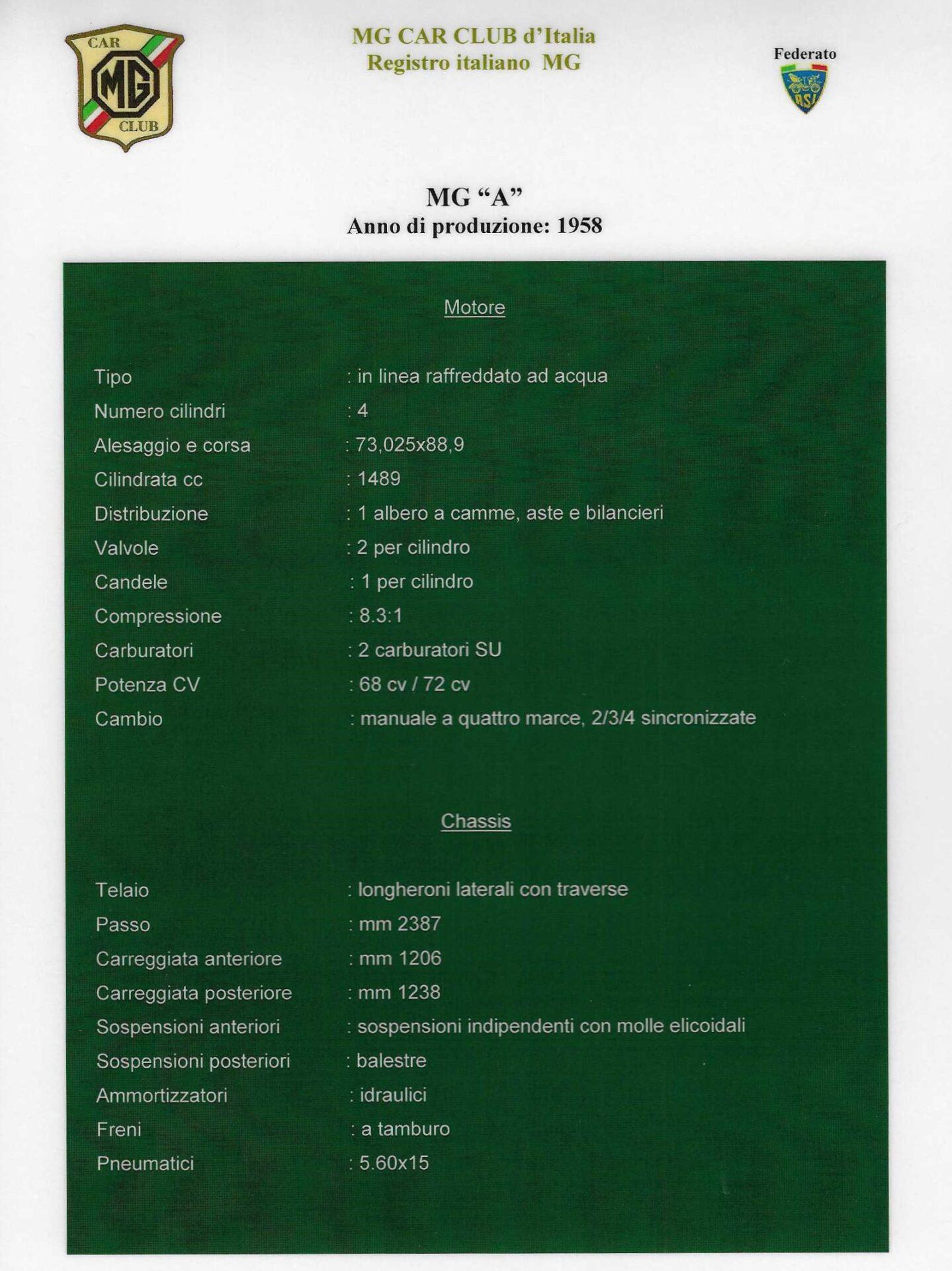 This 1958 MG A 1500 Roadster is an outstanding example of one of MG's most emblematic models. The car, identified by chassis number HDL 43/50089, still retains its original chassis stamping and factory identification plate, both highly sought-after features in the collector market. Although an administrative engineeer's number was assigned by the Italian authorities during its first Italian registration on 29 November 1988, the original factory identifiers remain intact on the vehicle.