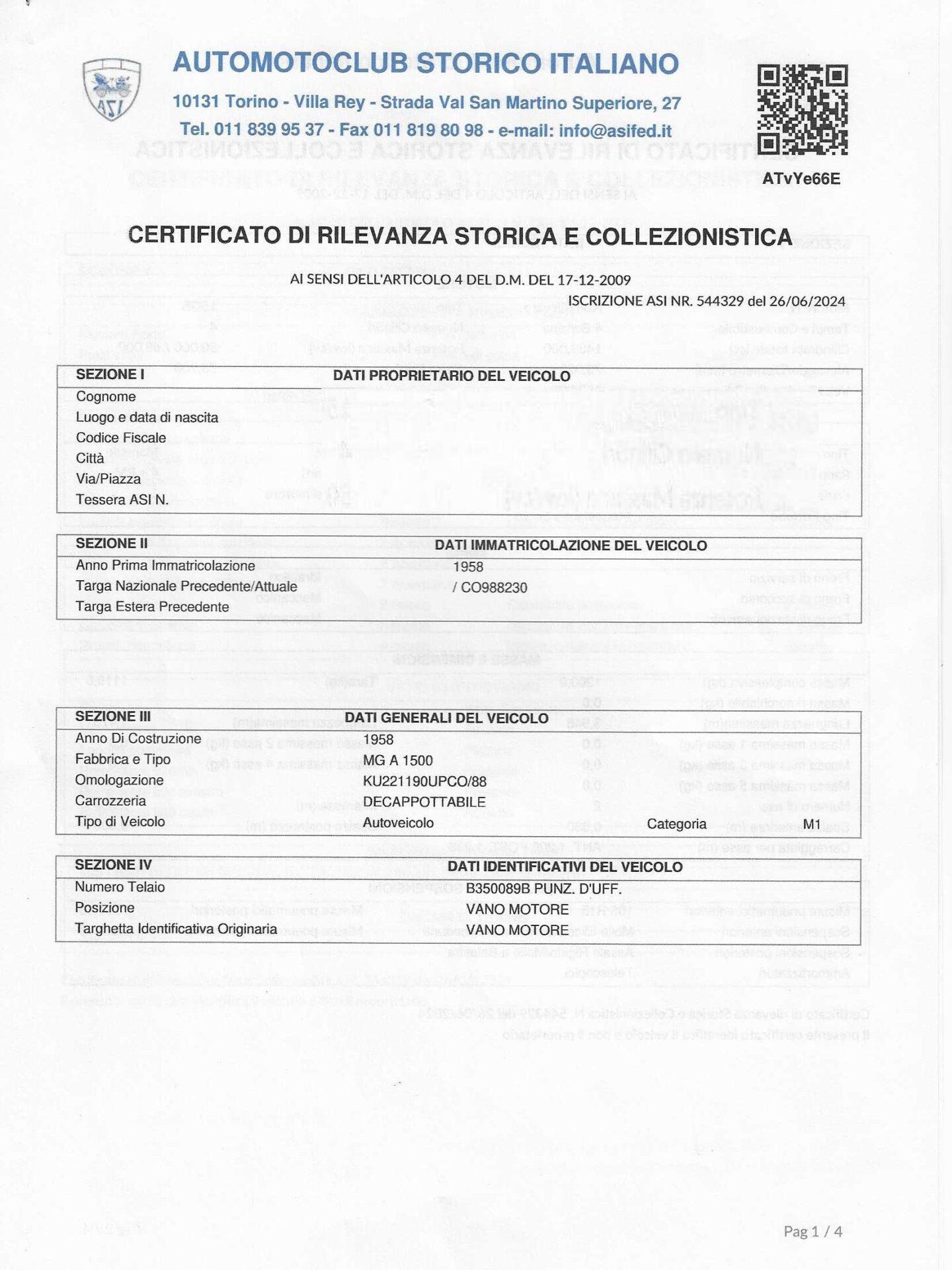 Over the past fifteen years the car has been meticulously maintained, with comprehensive photographic documentation and invoices for all bodywork and mechanical work carried out. The most significant intervention was a complete engine rebuild, which allowed the car to participate reliably in numerous rallies, especially those organized by the MG Car Club Italia, to which it has belonged since 2011.