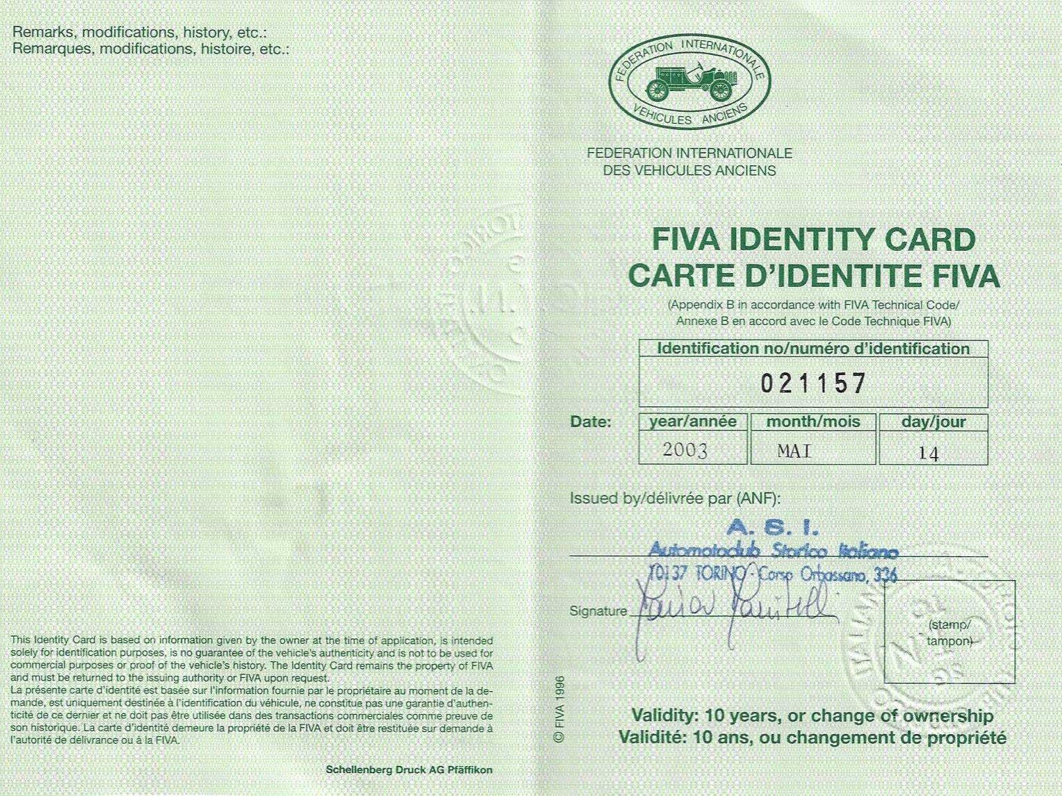 In 2003, it was issued a FIVA Identity Card for international historic events.