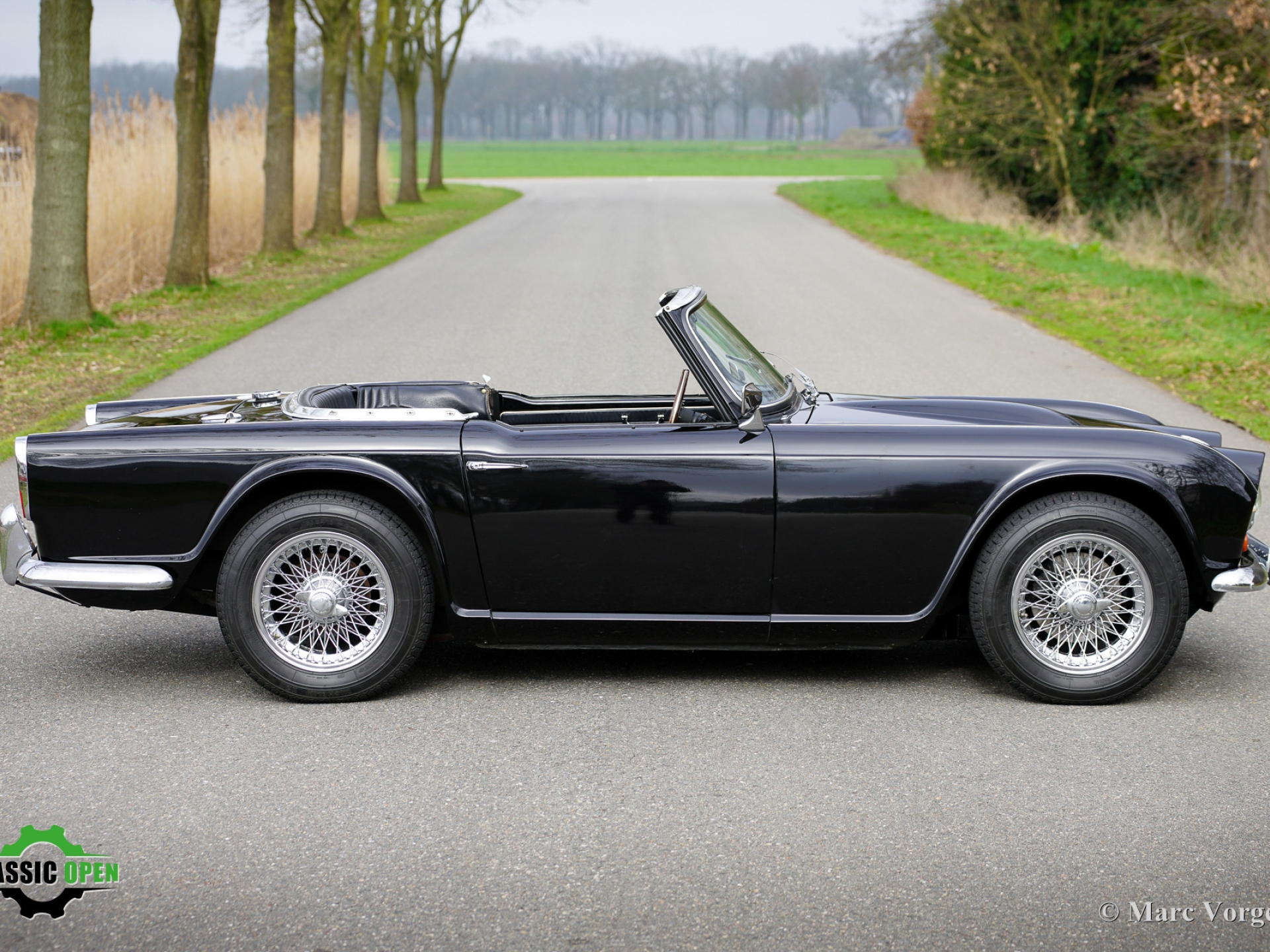 The TR4 is equipped with many desirable features, including Overdrive, chrome wire wheels, a high gloss lacquered wooden dashboard, and a Moto Lita wood rimmed sports steering wheel (the original steering wheel is included).