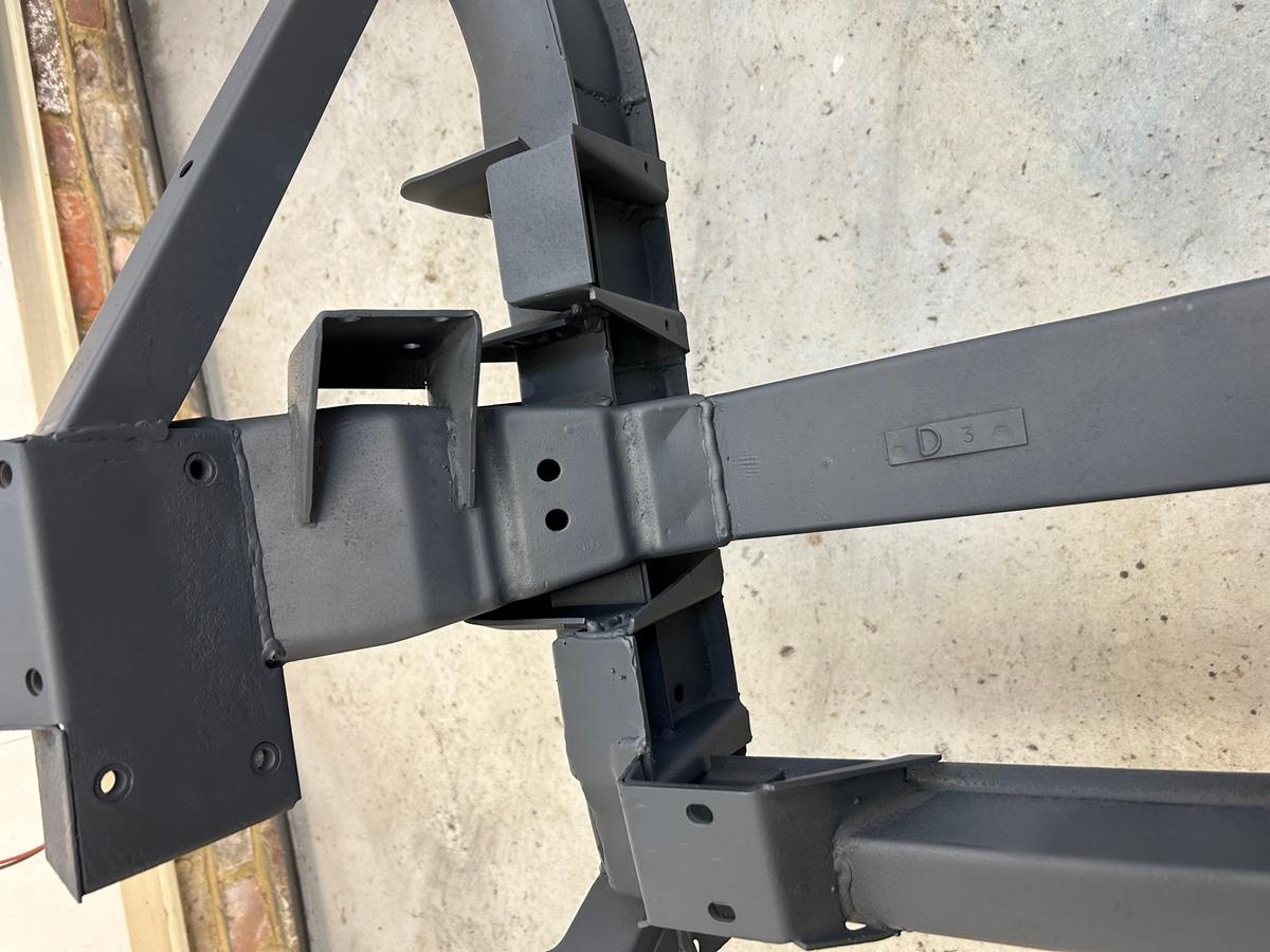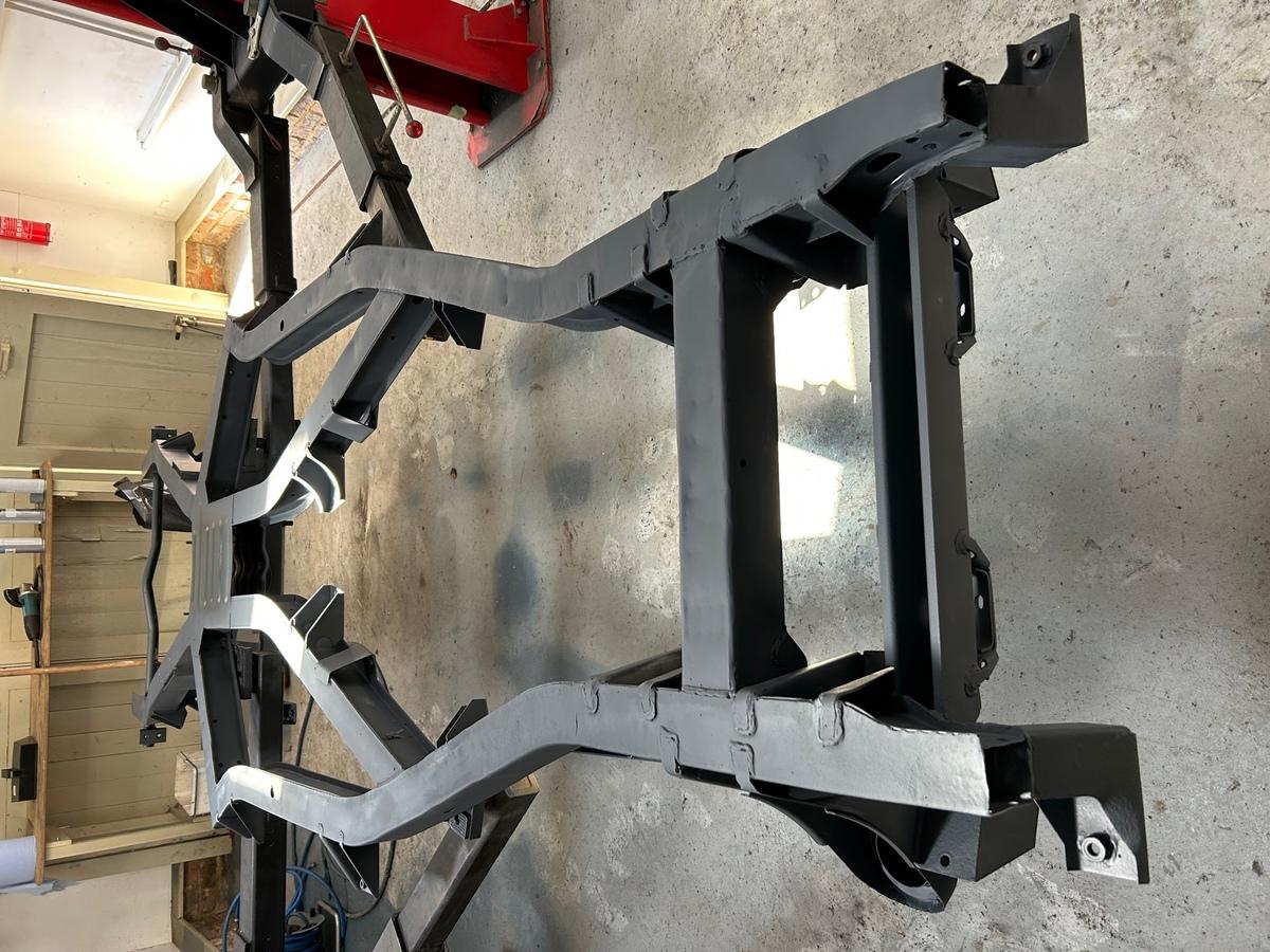 Chassis for the Triumph TR5 range. It originates from an imported1968 USA TR250 car. It's been fully refurbished. Welding undertaken by local fabrication company, coded welder with the recognised strengthening modifications. Completed chassis has been shot blasted and etch primed.