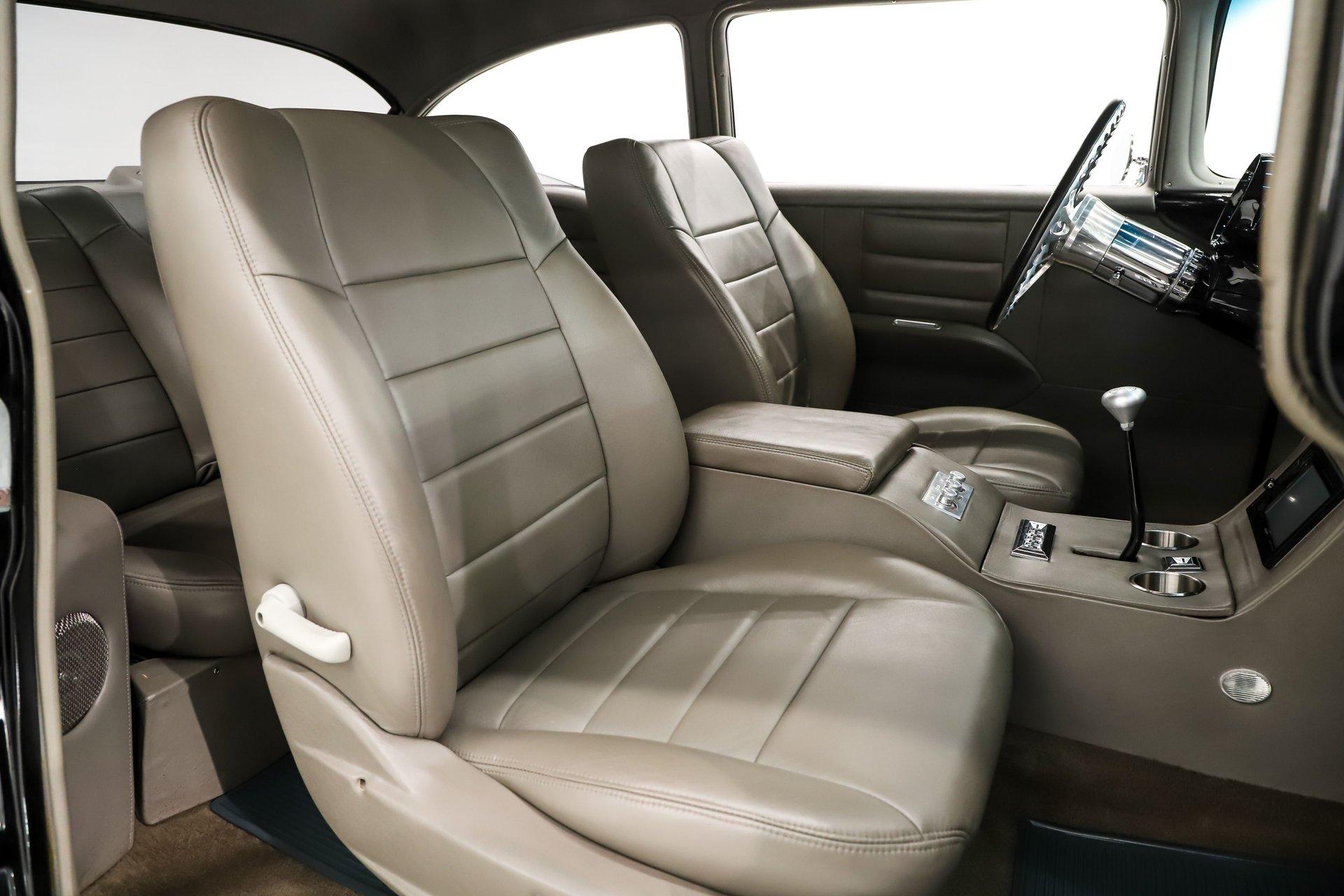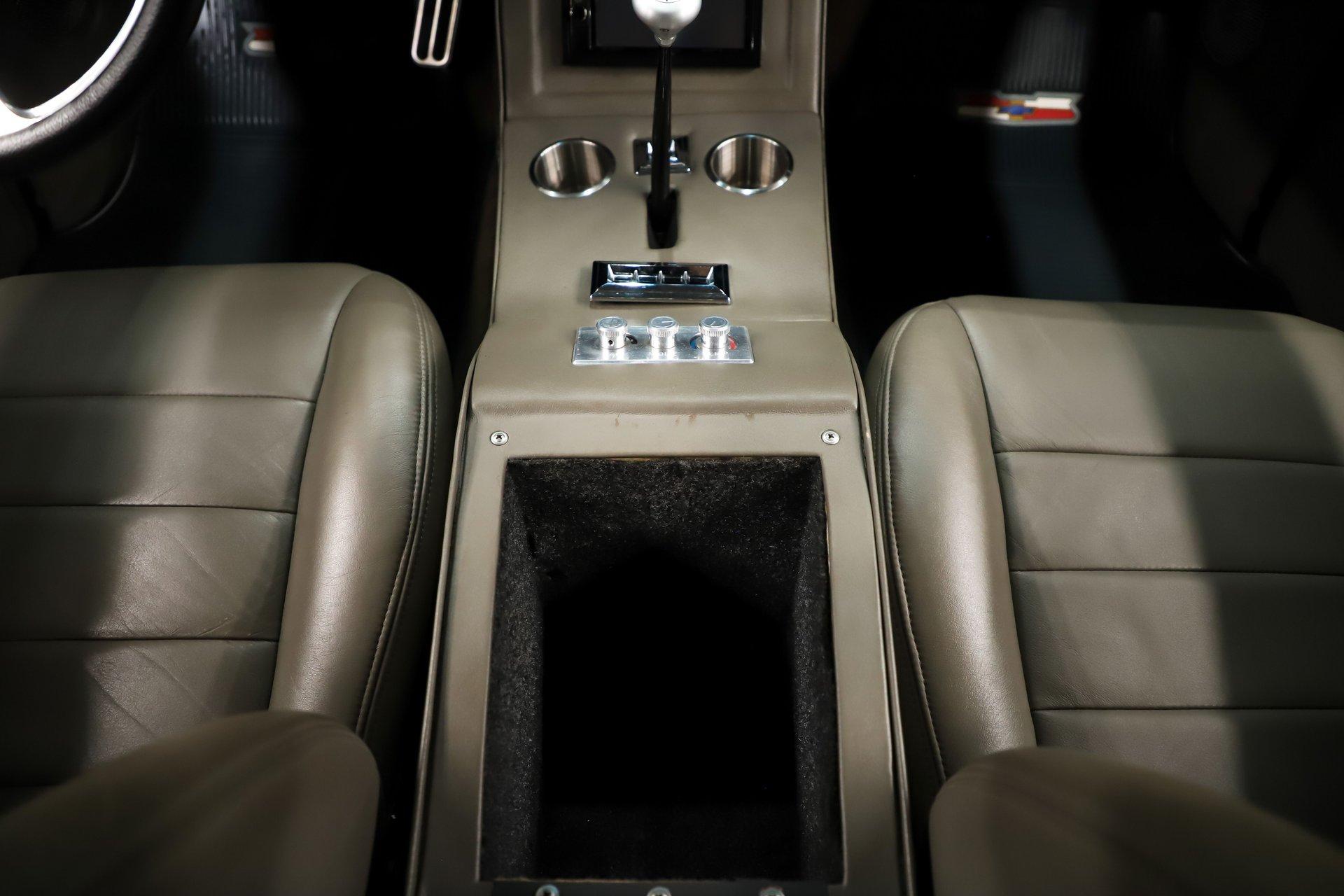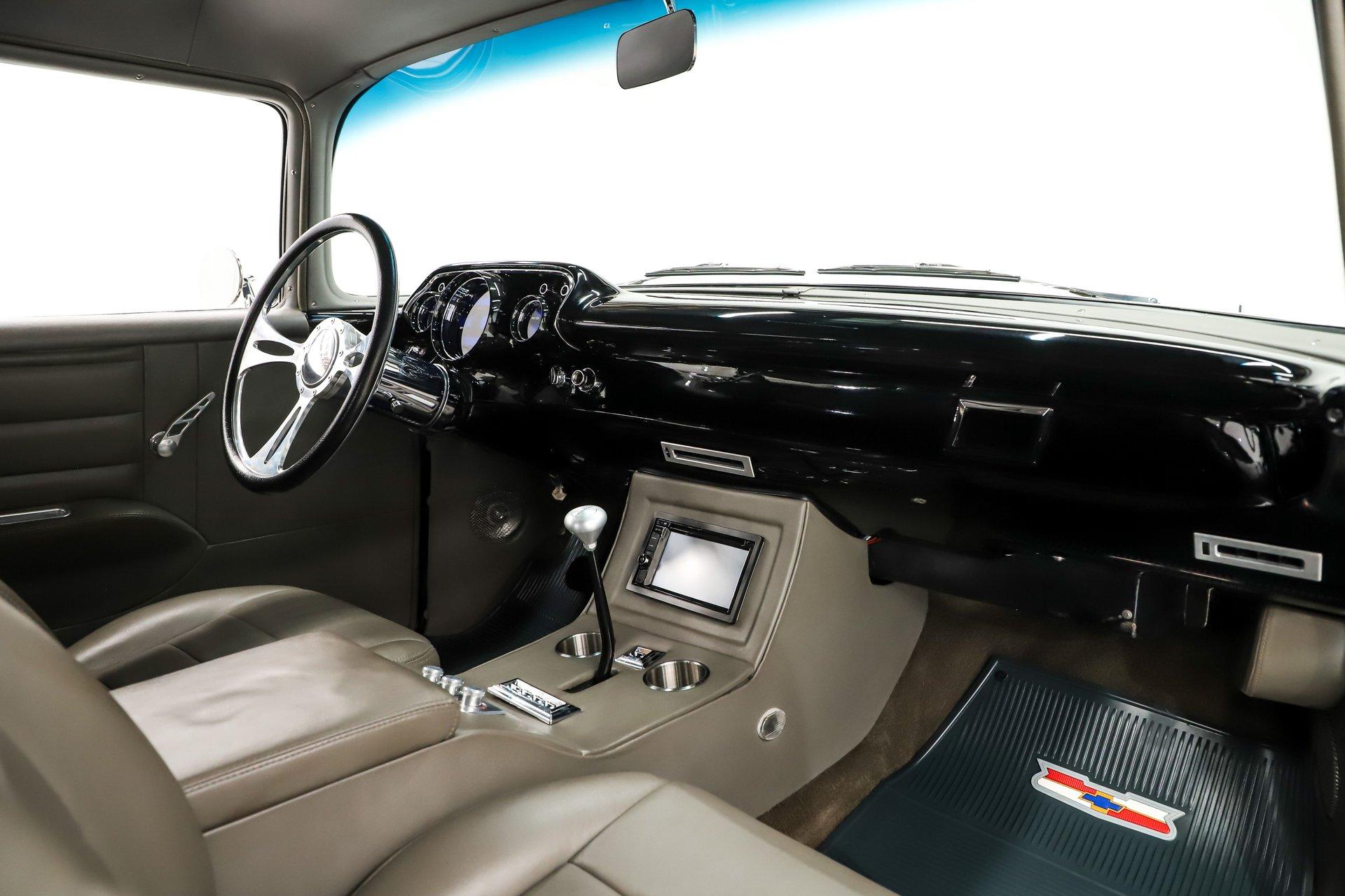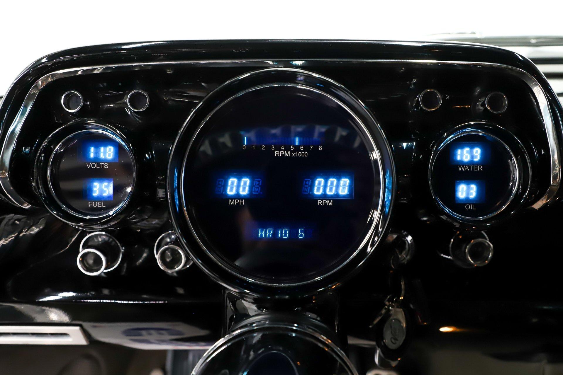 INTERIOR: It was gutted completely and was professionally redone. It was lined with Dynamat sound deadener. A custom console stretches front to back. There are four bucket seats all wrapped in leather. Custom side panels are covered in the matching leather. Headliner was replaced. Even the metal window frames were wrapped in leather. The metal dash was customized: the glove box, ashtray and holes were filled for a smooth look. It was painted slick black. It has digital gauges, and billet a/c vents. The console has a touch screen stereo system, there are speakers built in throughout the interior. It also has a Locar shifter, cup holders, power window and lock switches and the a/c controls. The front seats are power.