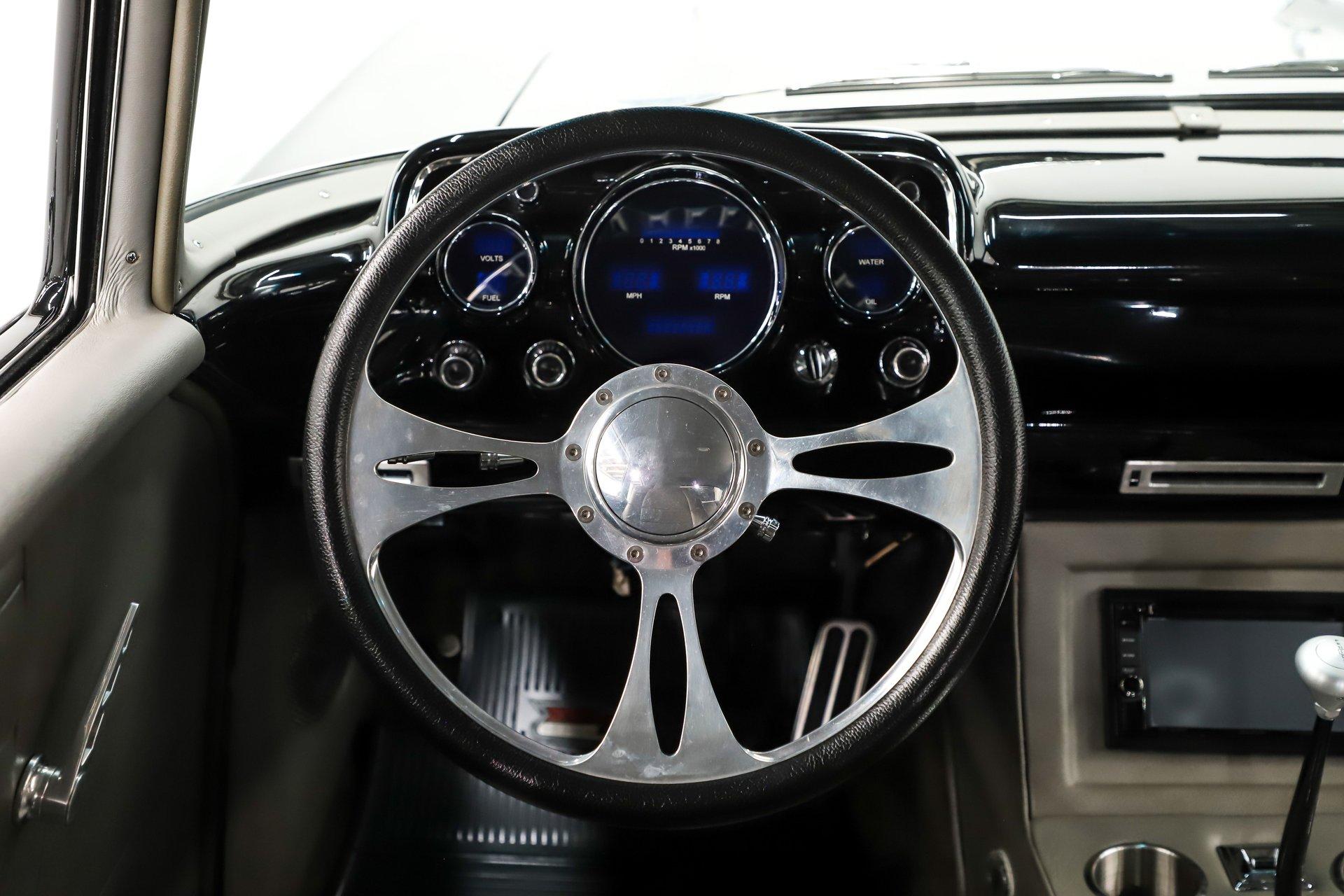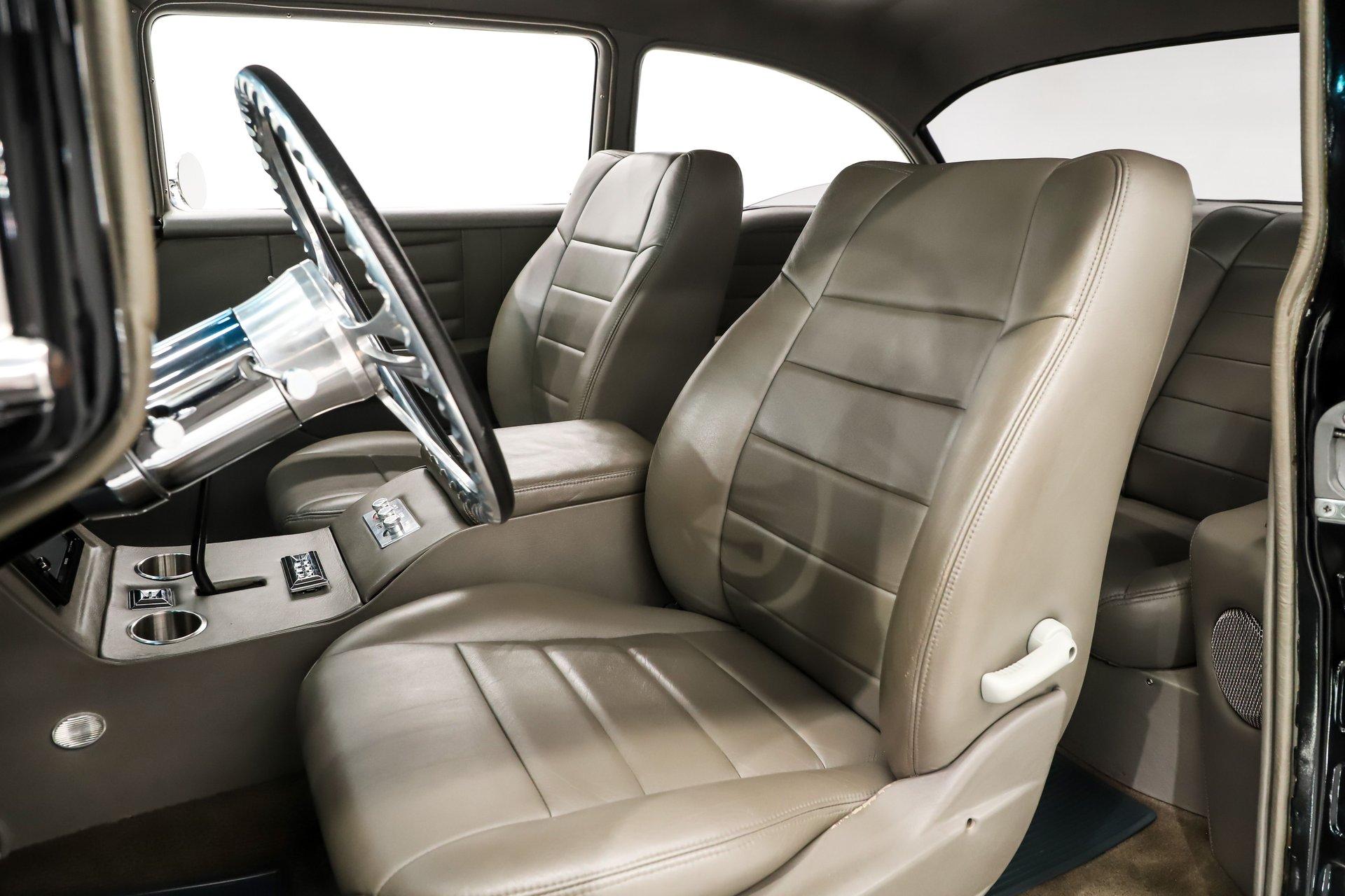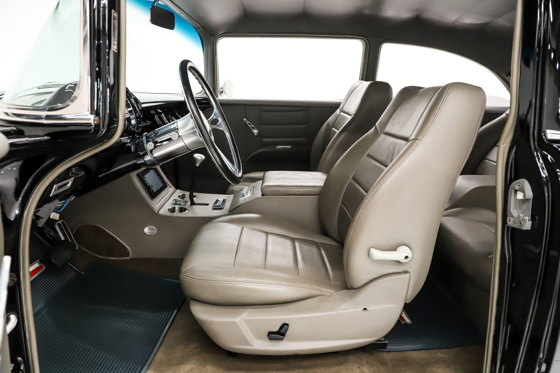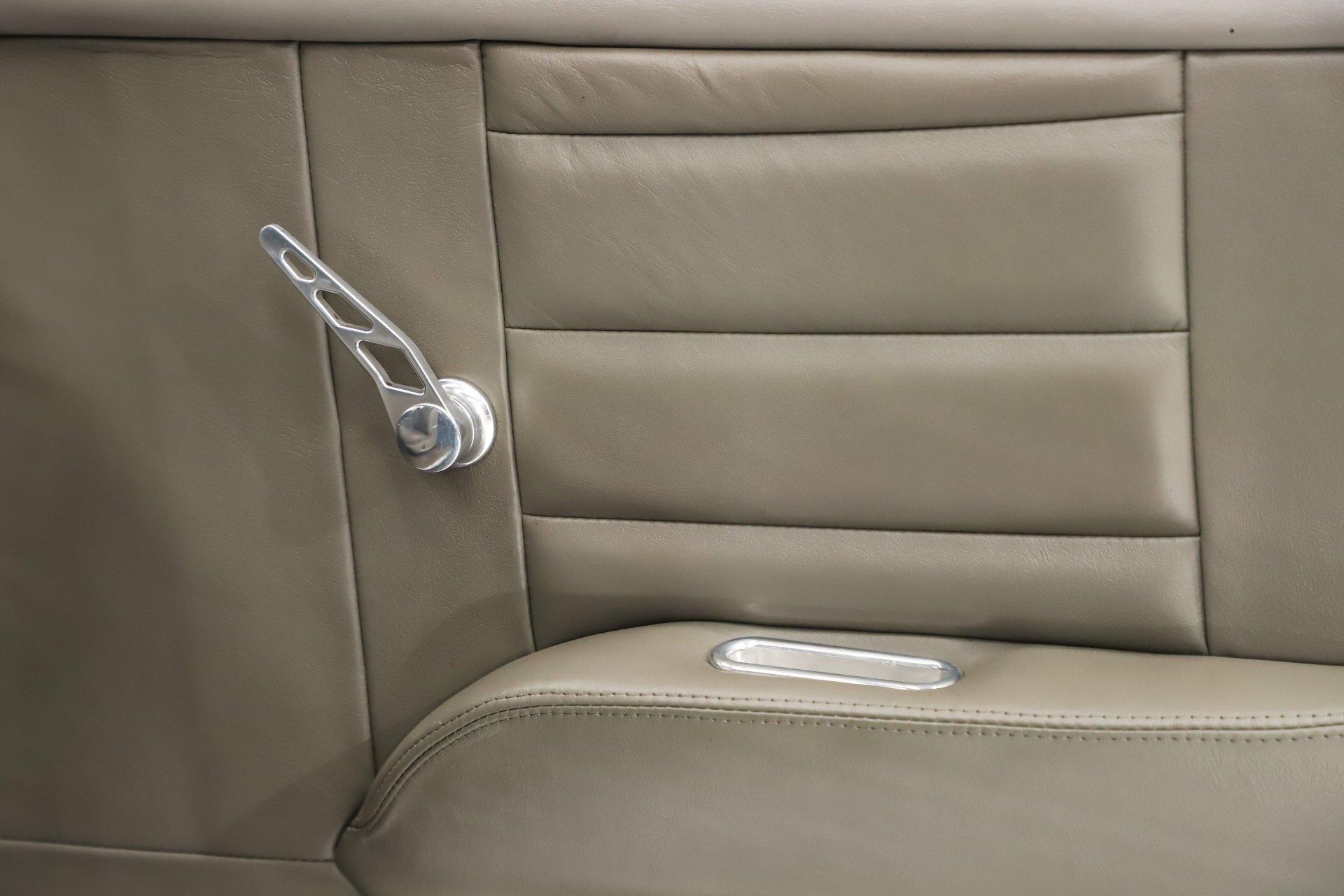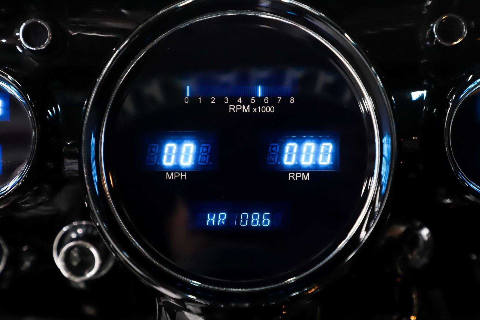 INTERIOR: It was gutted completely and was professionally redone. It was lined with Dynamat sound deadener. A custom console stretches front to back. There are four bucket seats all wrapped in leather. Custom side panels are covered in the matching leather. Headliner was replaced. Even the metal window frames were wrapped in leather. The metal dash was customized: the glove box, ashtray and holes were filled for a smooth look. It was painted slick black. It has digital gauges, and billet a/c vents. The console has a touch screen stereo system, there are speakers built in throughout the interior. It also has a Locar shifter, cup holders, power window and lock switches and the a/c controls. The front seats are power.
