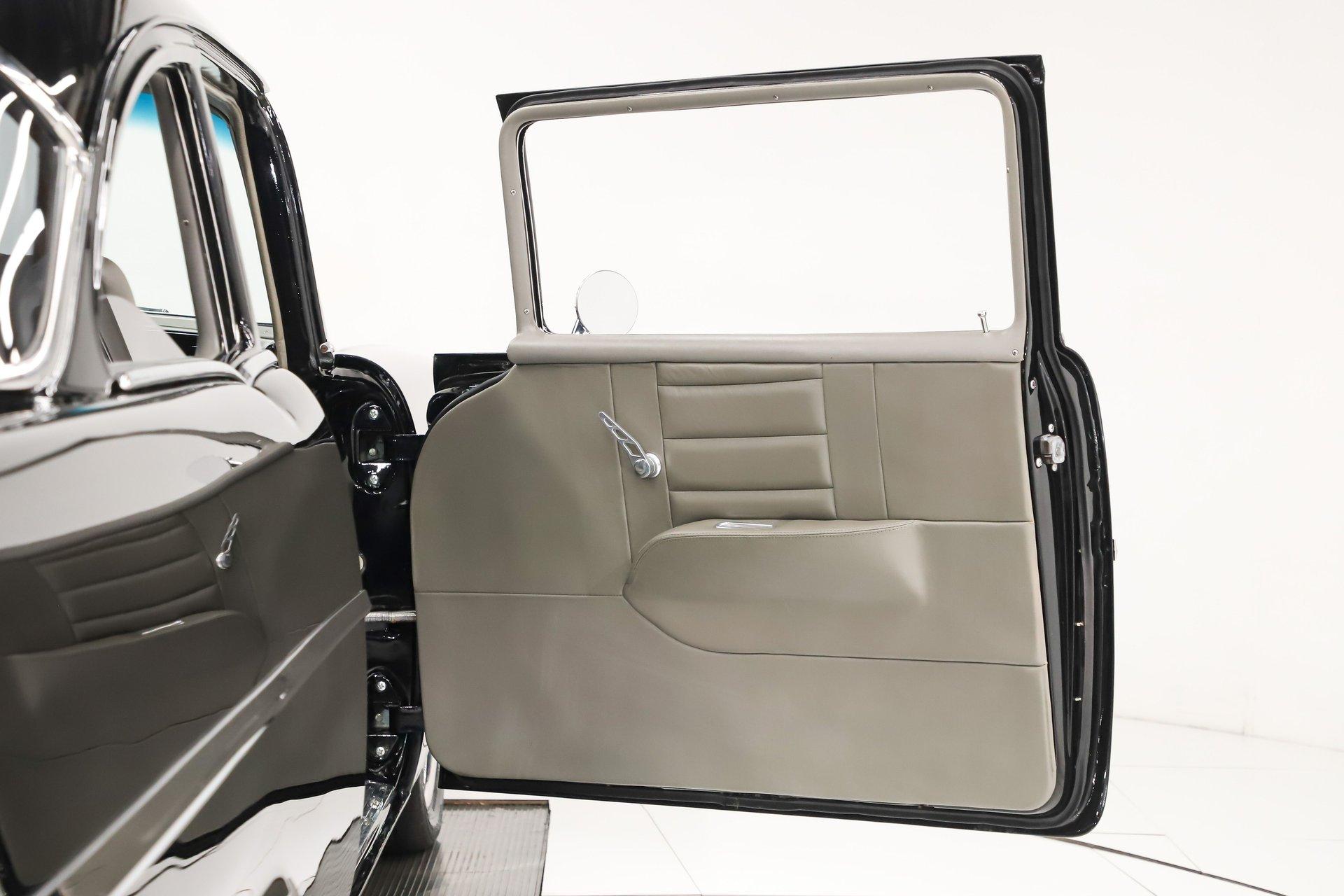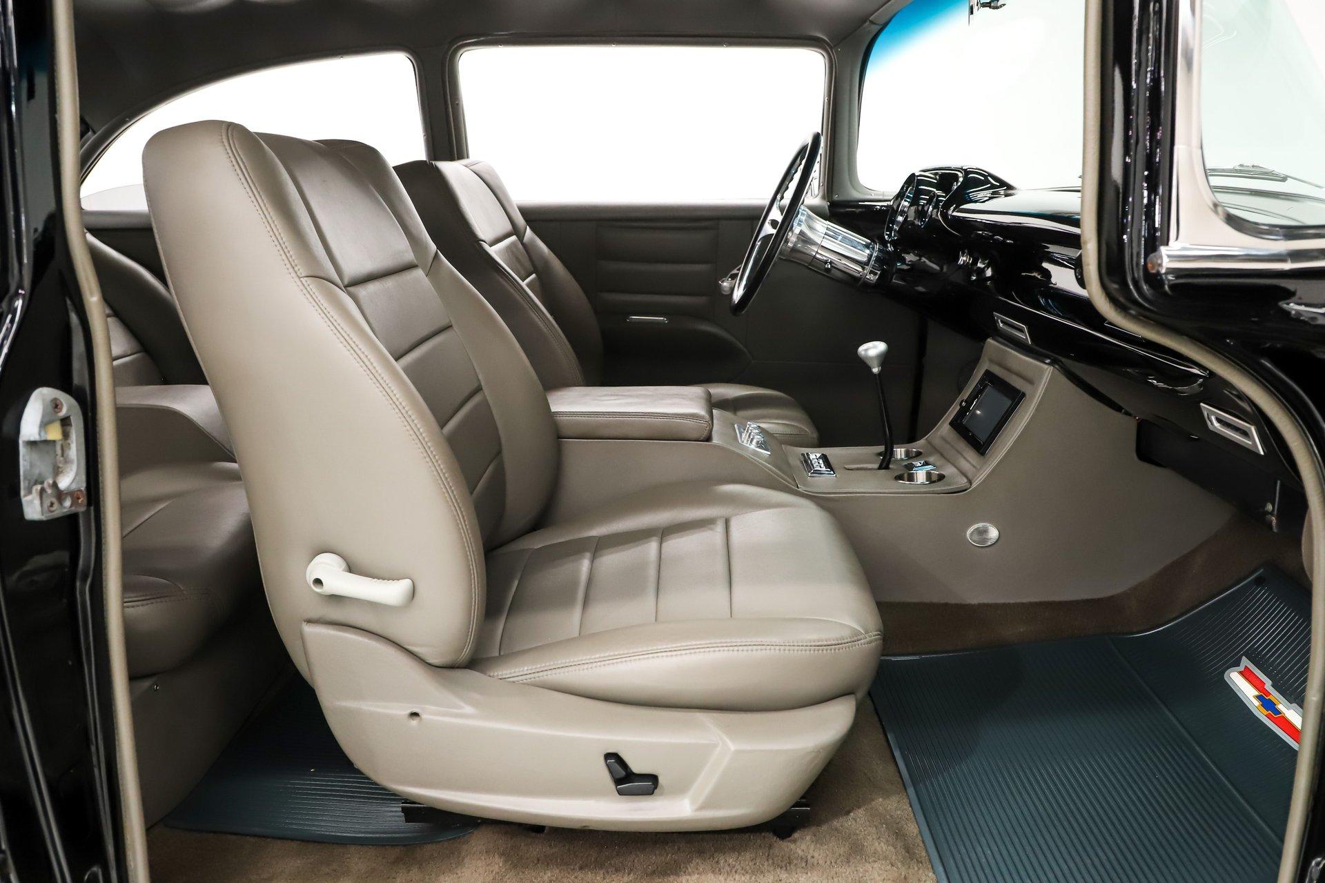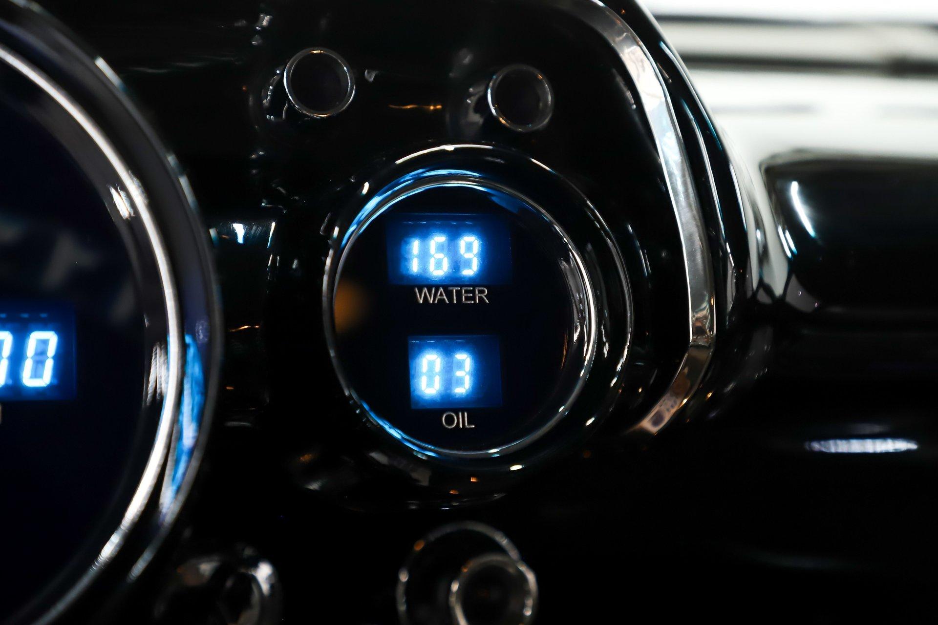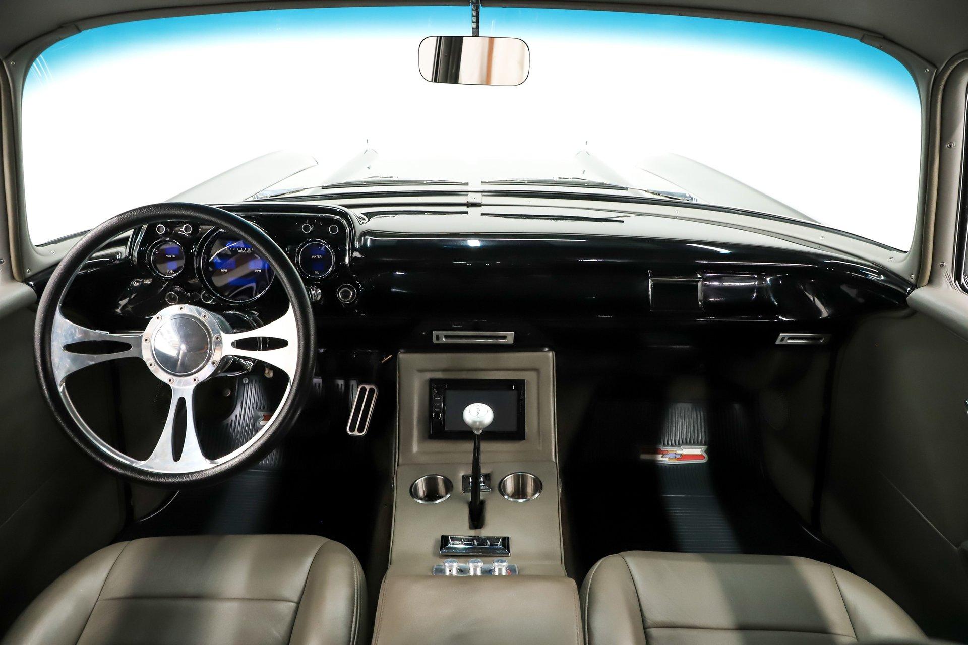 INTERIOR: It was gutted completely and was professionally redone. It was lined with Dynamat sound deadener. A custom console stretches front to back. There are four bucket seats all wrapped in leather. Custom side panels are covered in the matching leather. Headliner was replaced. Even the metal window frames were wrapped in leather. The metal dash was customized: the glove box, ashtray and holes were filled for a smooth look. It was painted slick black. It has digital gauges, and billet a/c vents. The console has a touch screen stereo system, there are speakers built in throughout the interior. It also has a Locar shifter, cup holders, power window and lock switches and the a/c controls. The front seats are power.