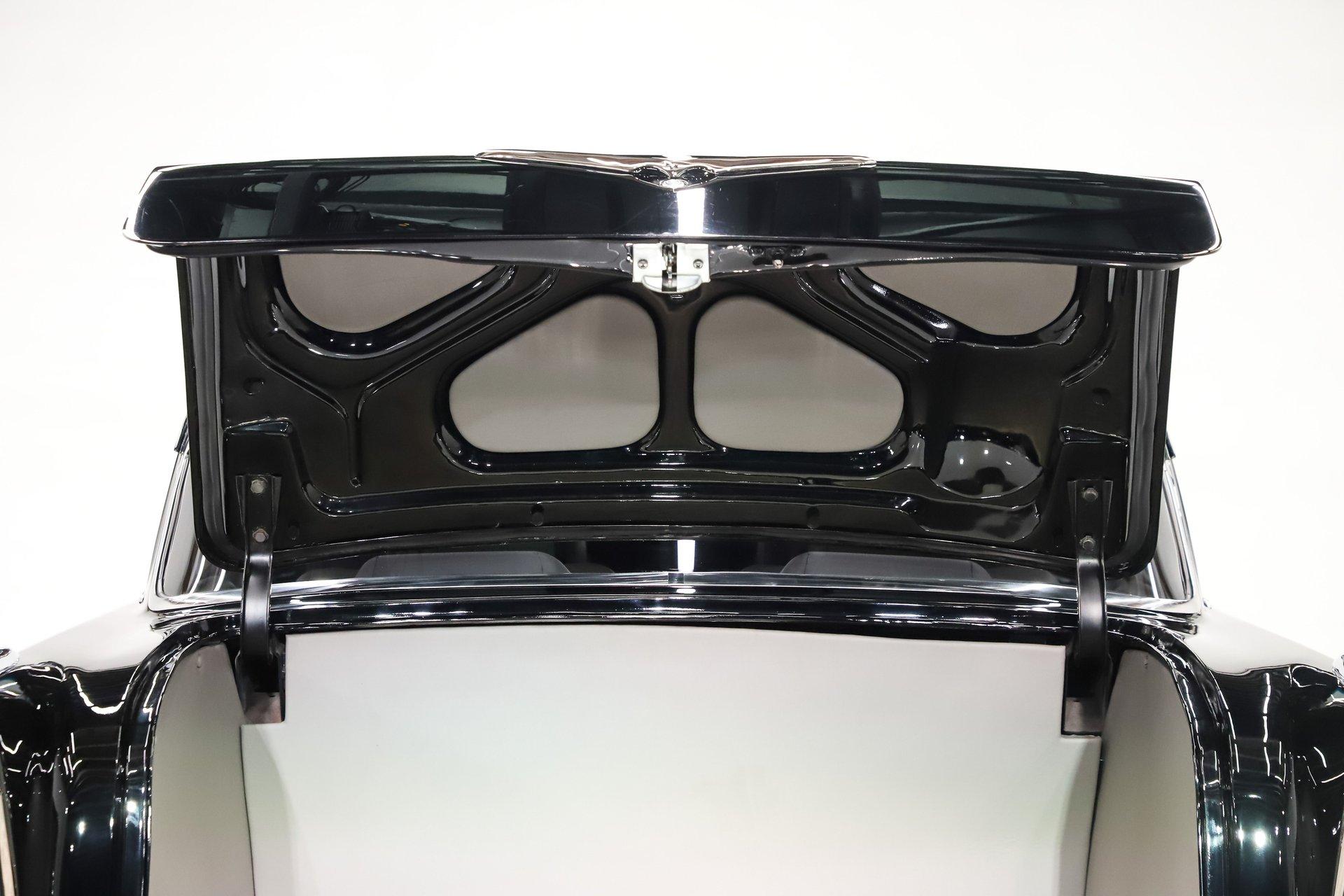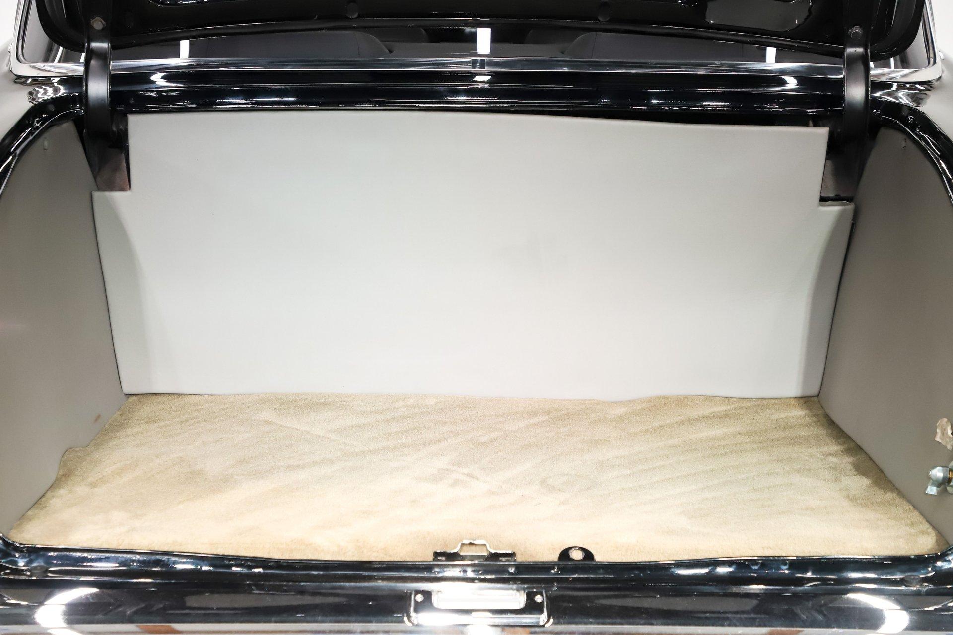 TRUNK COMPARTMENT: Under the trunk lid is painted and it has upholstered inserts. Inside is boxed, carpeted and upholstered. It as a master disconnect switch, the battery is behind the panel.