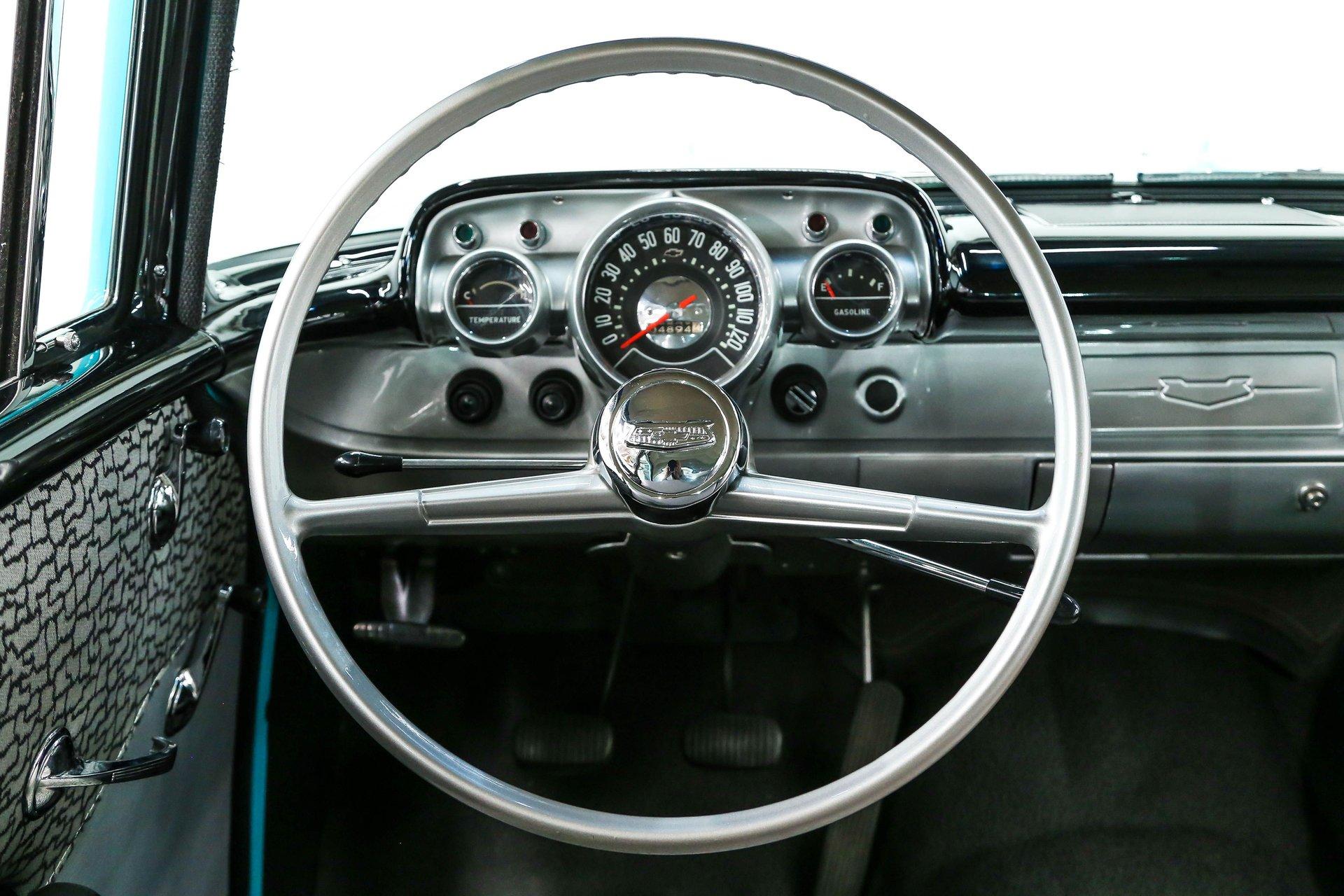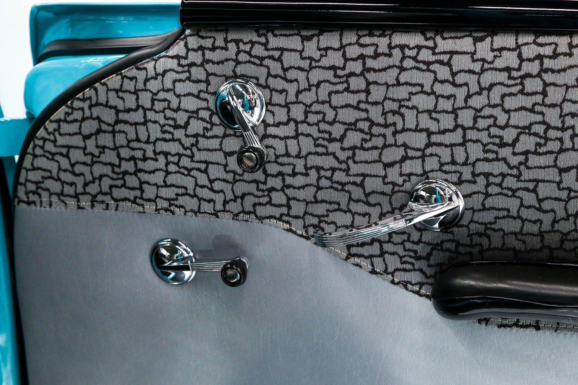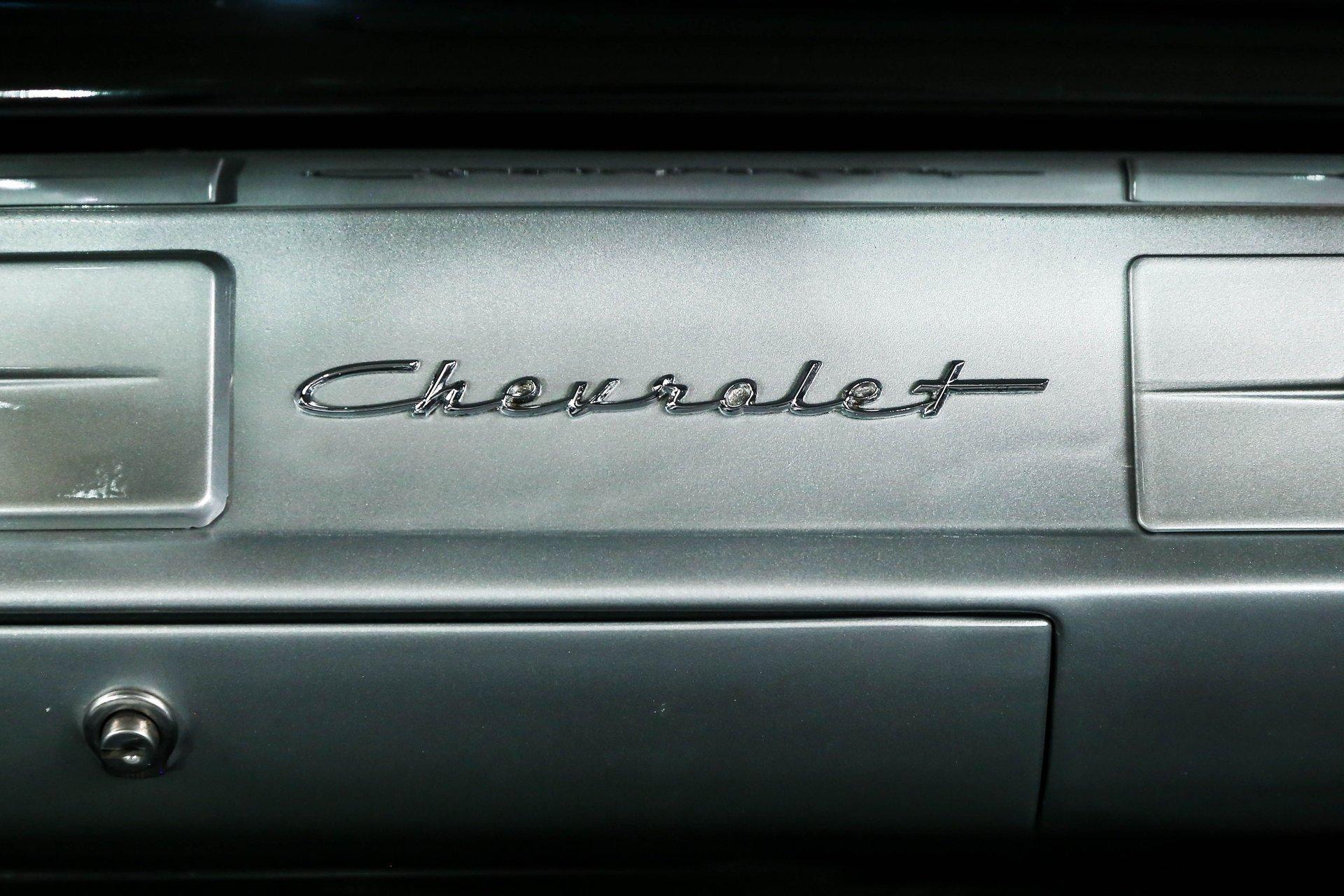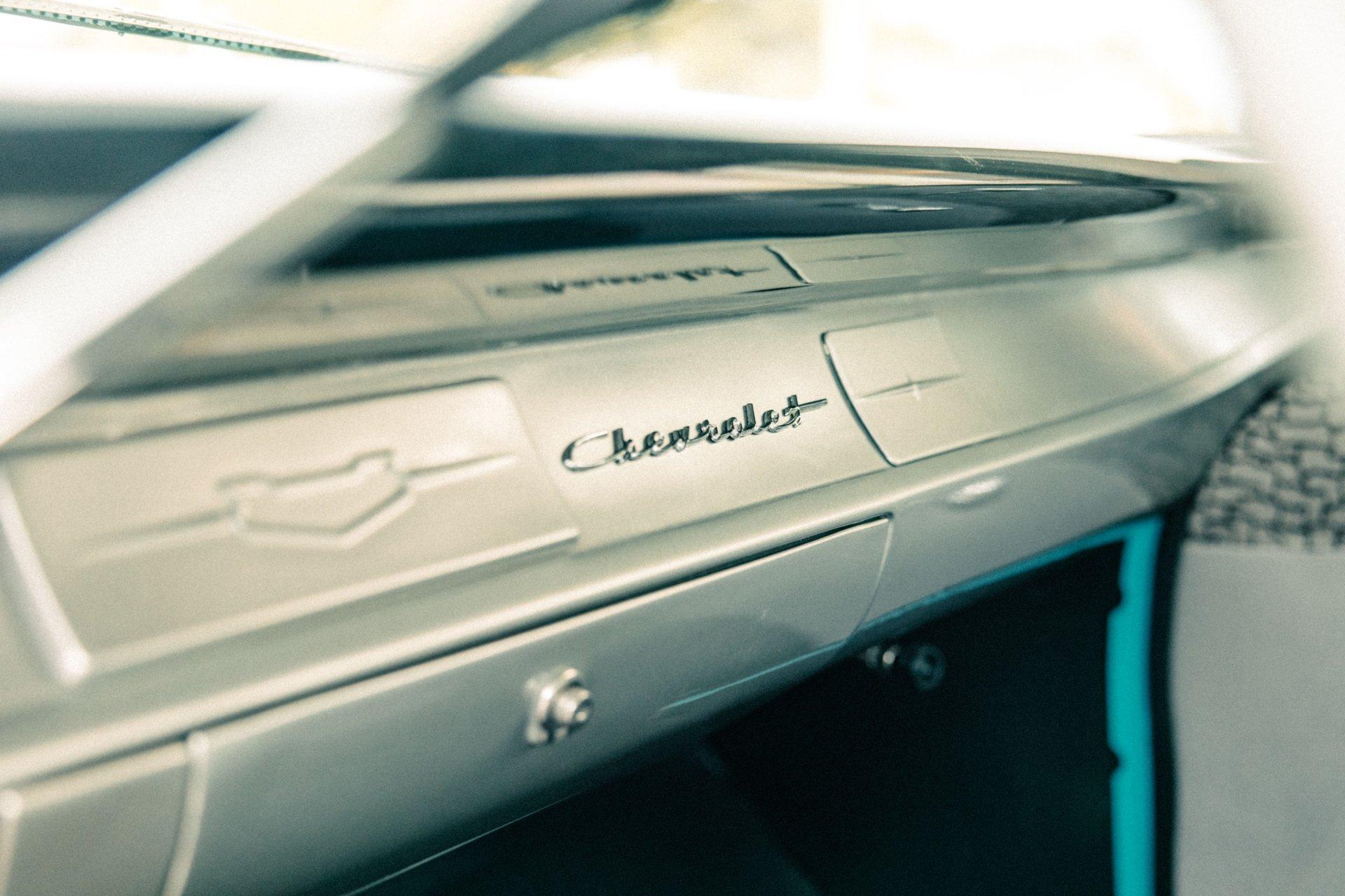 EXTERIOR: All the sheet metal is original to this car. It was stripped down to bare. The panels fit precisely. Repainted it's original Tropical Turquoise- India Ivory colors using PPG Deltron. It was sanded and buffed to a better than new finish. Painted 30 years ago and it still looks amazing, that's a real testament to it's quality. Original Fuel Injection emblems were on the 1/4 panels on the 150 only, all others were on the fenders. The holes look factory, not drilled. The chrome was redone by Royal Silver. It has original California 1 piece bumper. Buff it Bob restored the stainless trim. All new glass. The weatherstrips and seals were all replaced. Being the base model it has minimal trim, no rubber tips on the front bumpers, no reverse lights. It also has painted rims with poverty caps. They did splurge for a set of white walls.