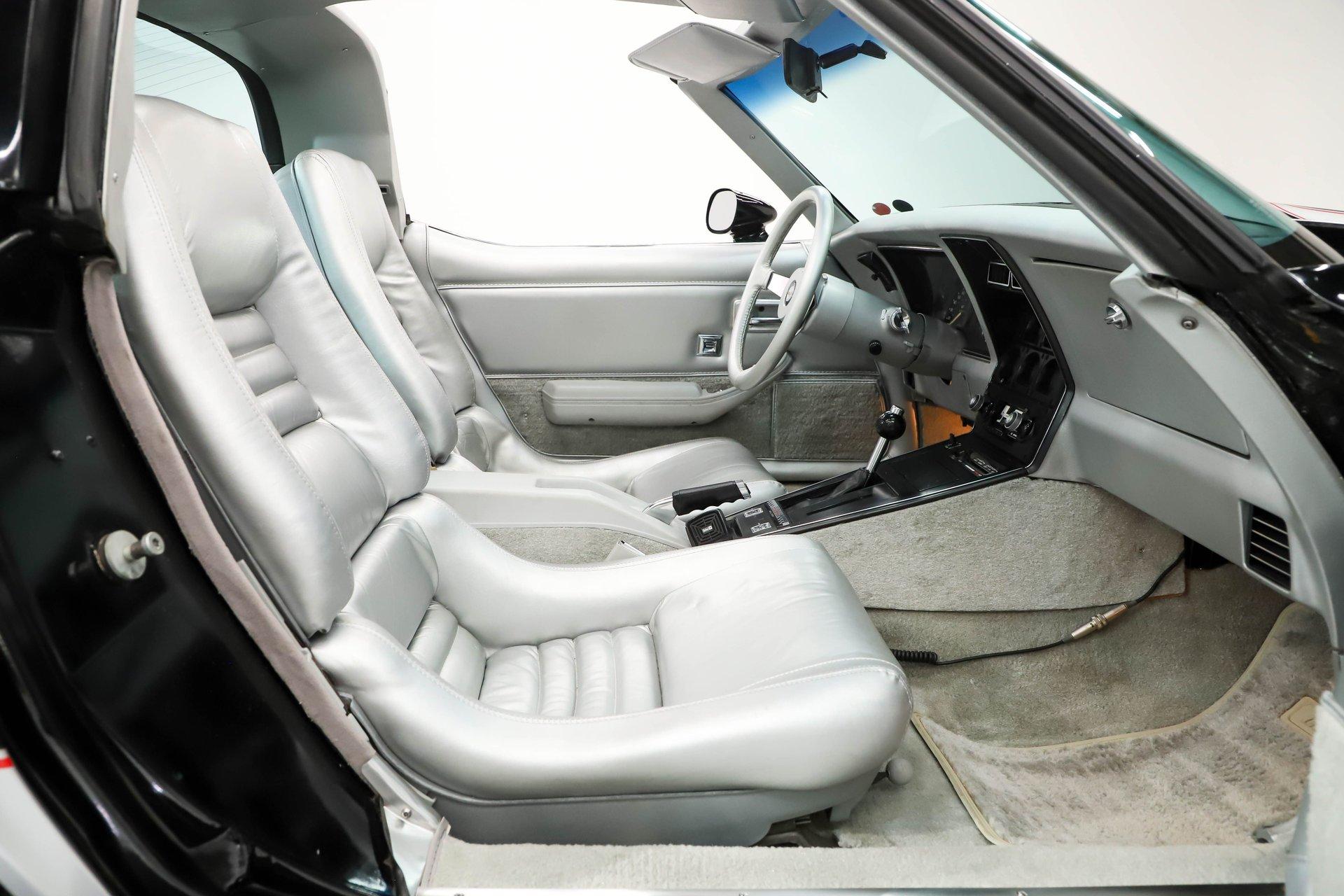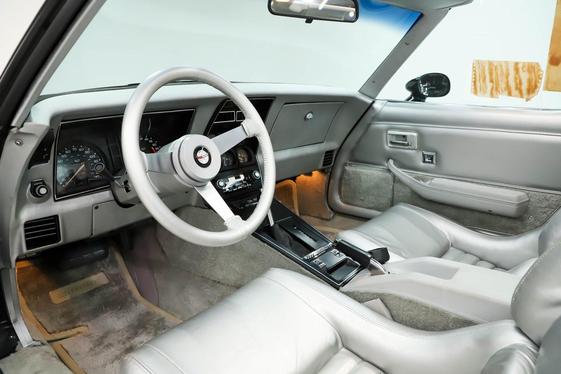 INTERIOR: I sat in one when I was 8 years old and thought I was in a spaceship because of the bright silver. It looks practically new. Soft leather seats and steering wheel. It has the optional stereo and CB, what's your handle? T-top bags are in the back. Features include power windows and locks, rear defrost, tilt-telescopic wheel.