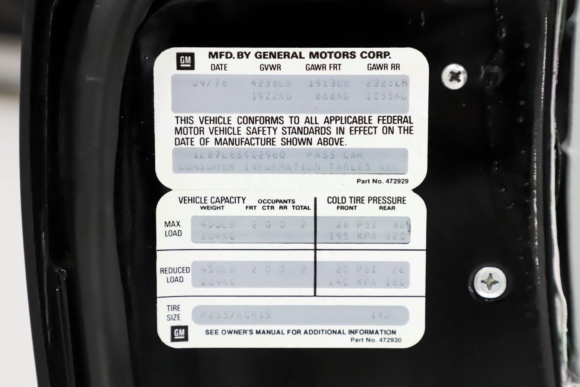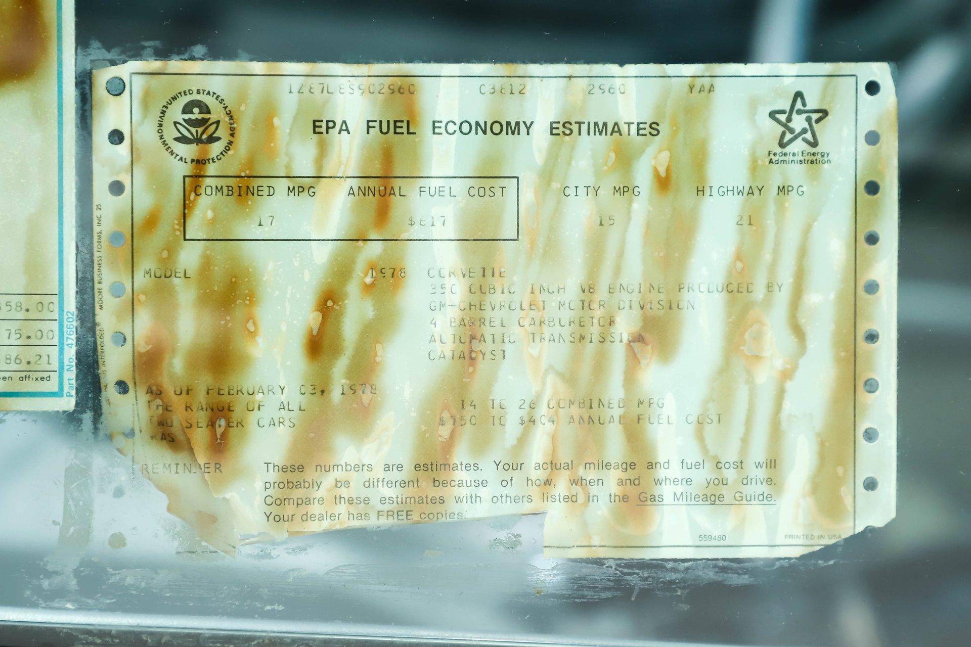 INTRODUCTION: 21 actual miles! One of the lowest mile 1978 Corvette Pace Cars in existence. I have searched the internet and auction results and could not find one with lower miles. Ask google for ''lowest mile 1978 Corvette'' and this car comes up! All original survivor- paint, tires, the window sticker is still in the window! Other documentation includes original build sheet, inspection, registration receipt, warranty booklet and glovebox pouch filled with manuals.