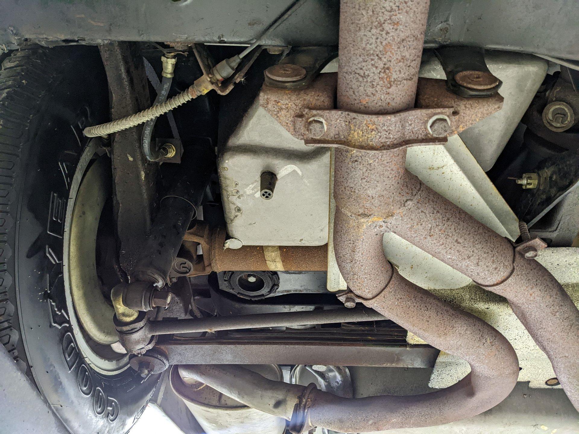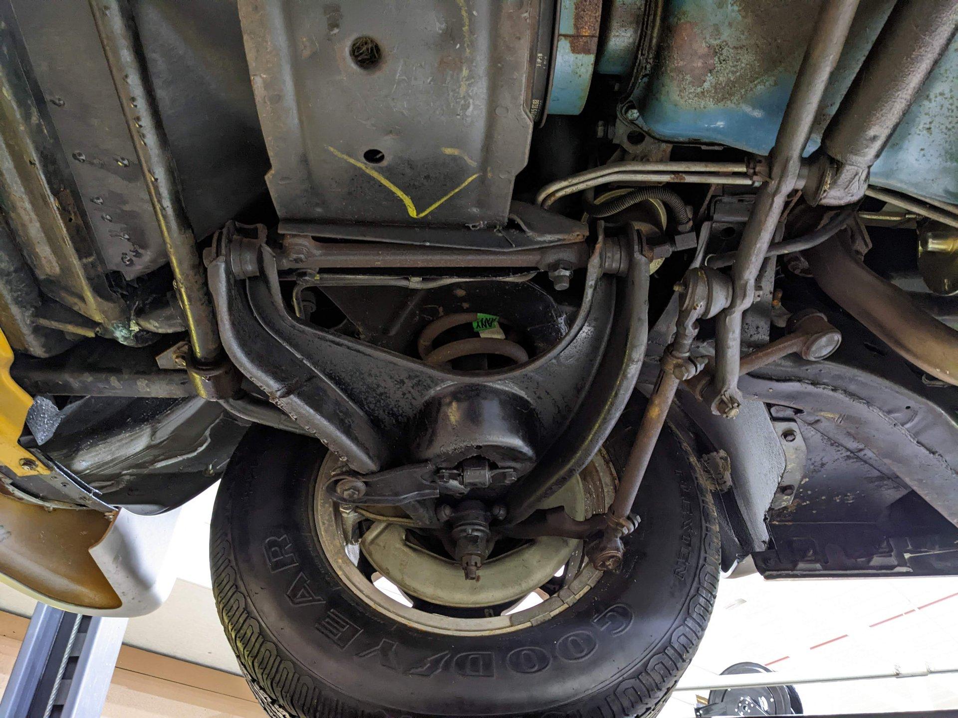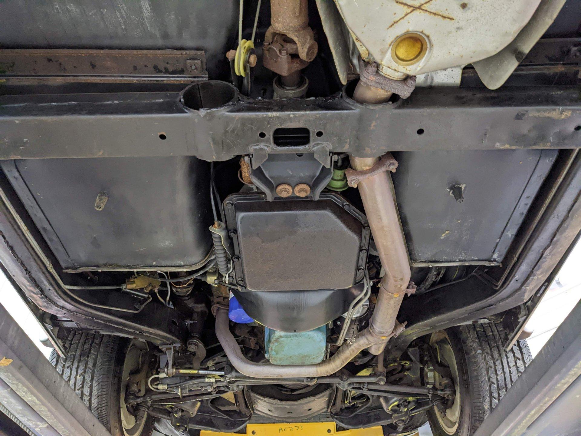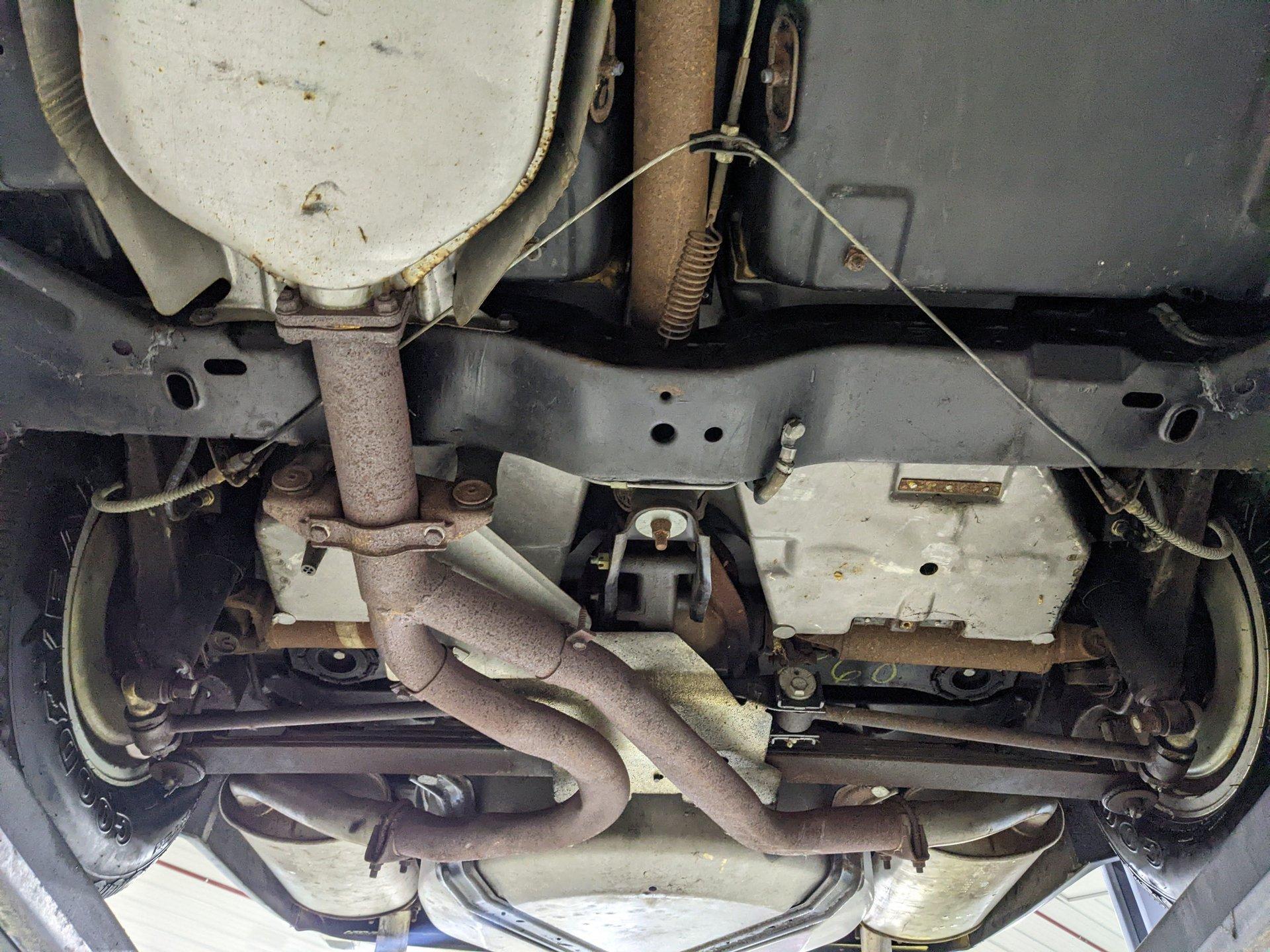 UNDERSIDE: Very well preserved all original condition. It still has assembly line markings. Never been spray canned over. Original shocks, exhaust, suspension etc. Spare tire carrier is complete.