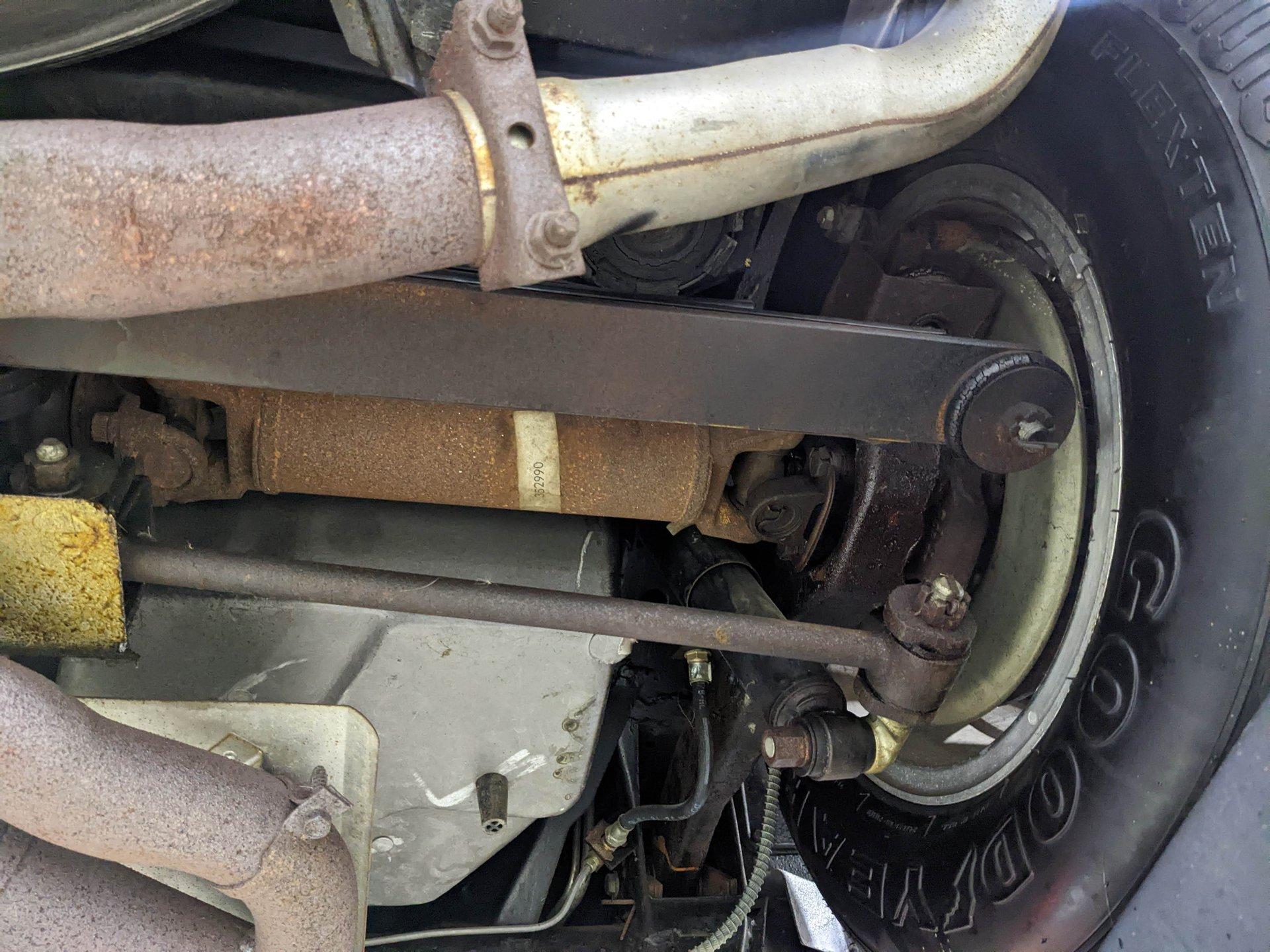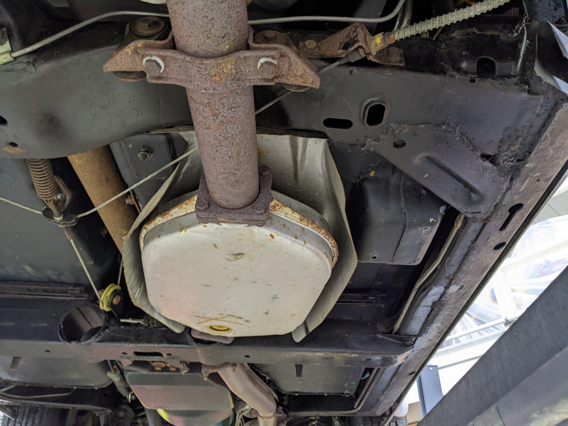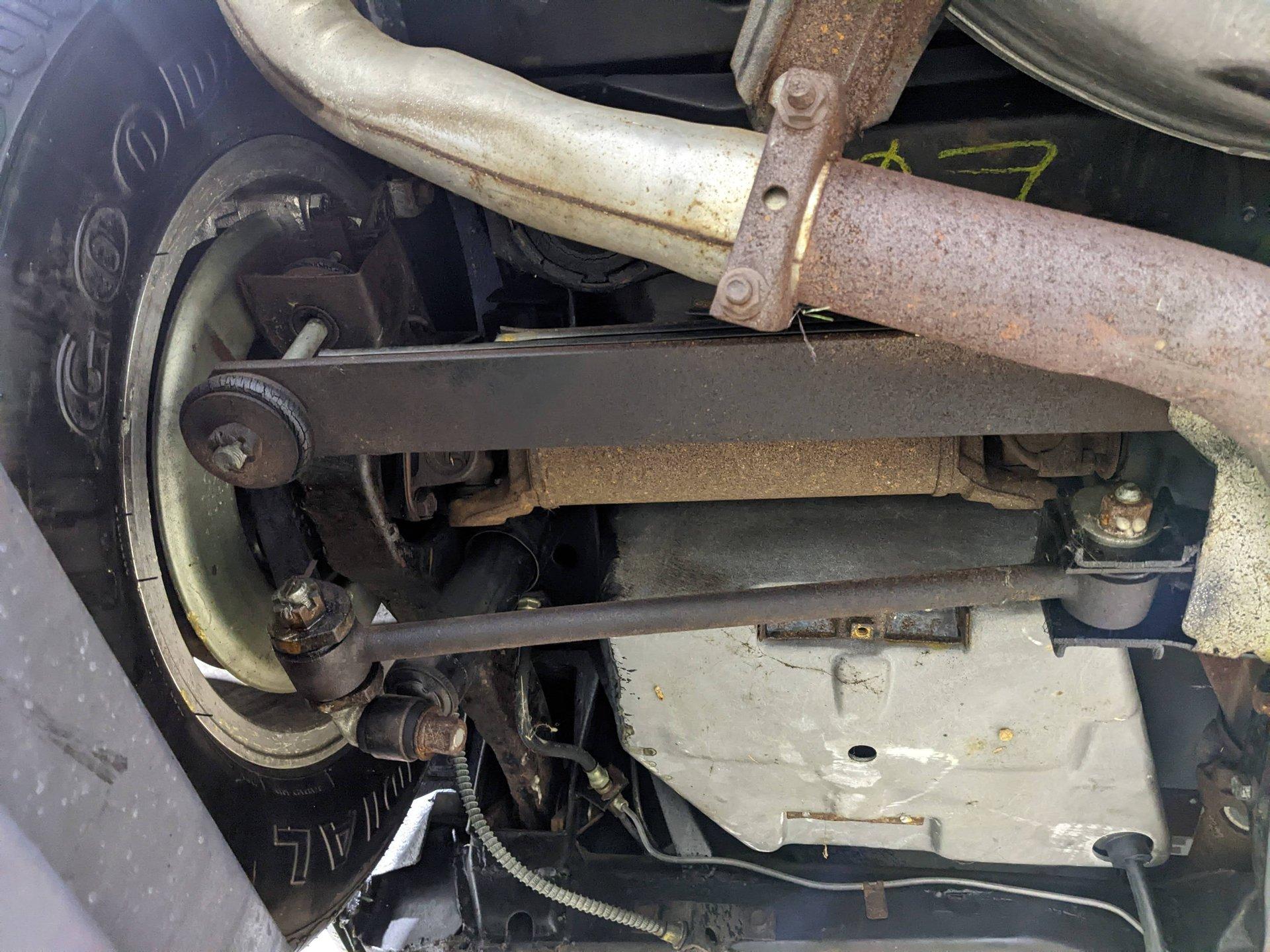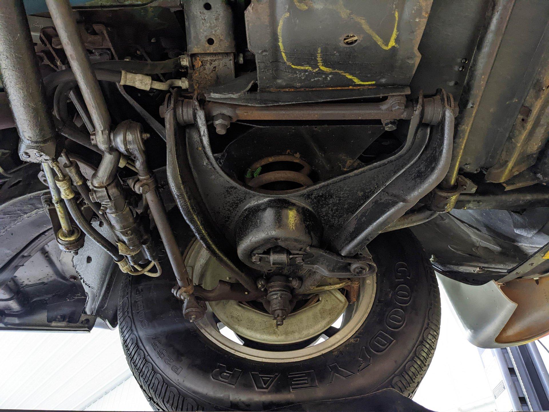 UNDERSIDE: Very well preserved all original condition. It still has assembly line markings. Never been spray canned over. Original shocks, exhaust, suspension etc. Spare tire carrier is complete.