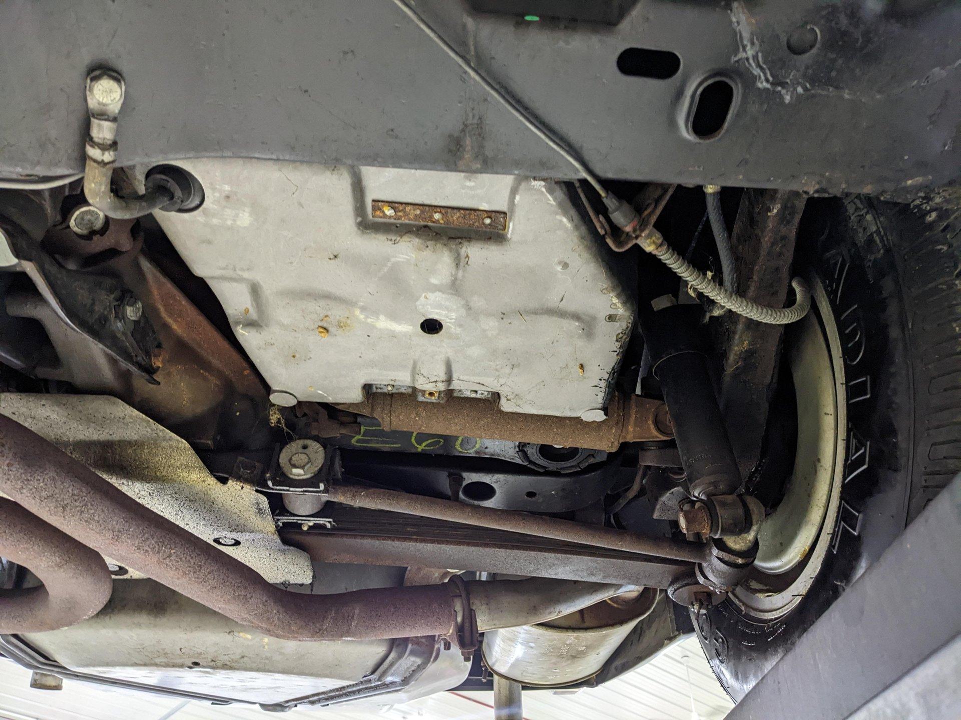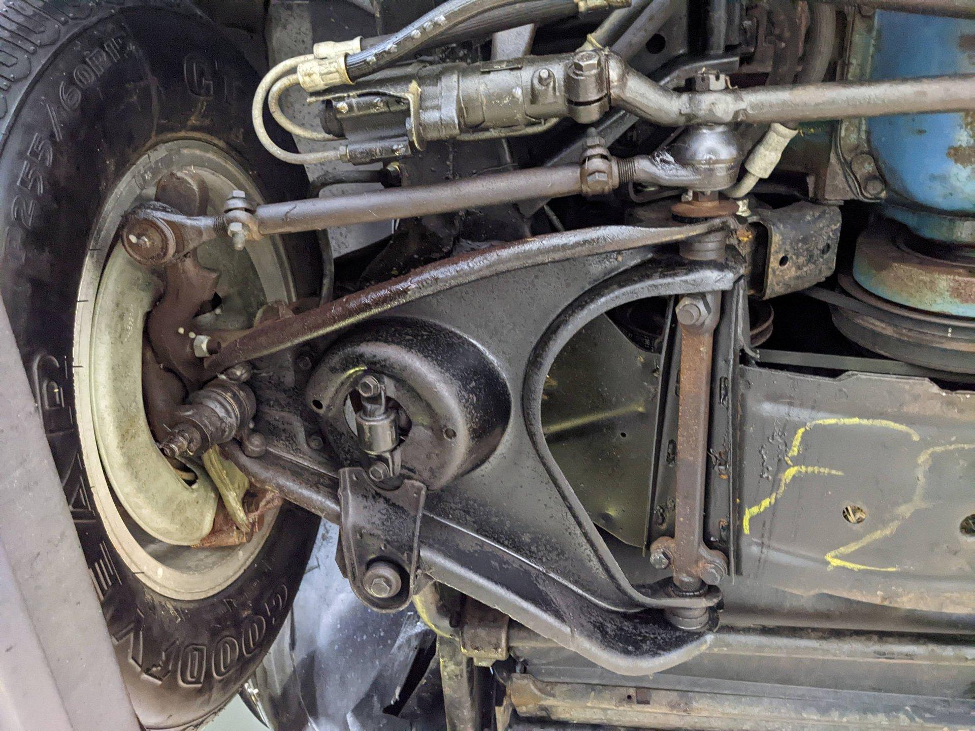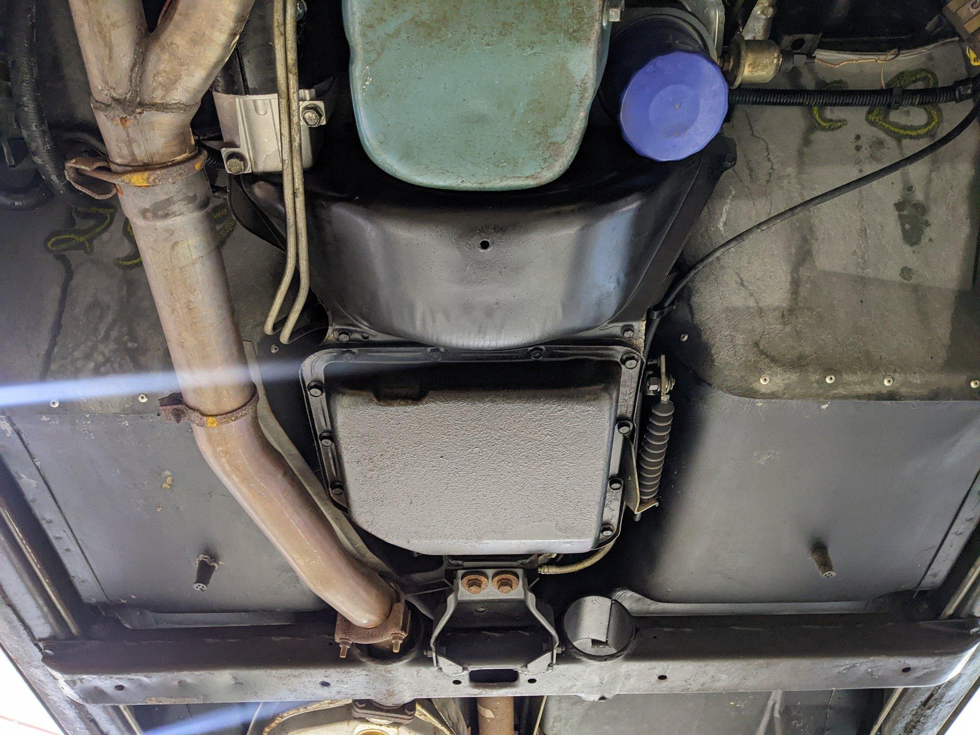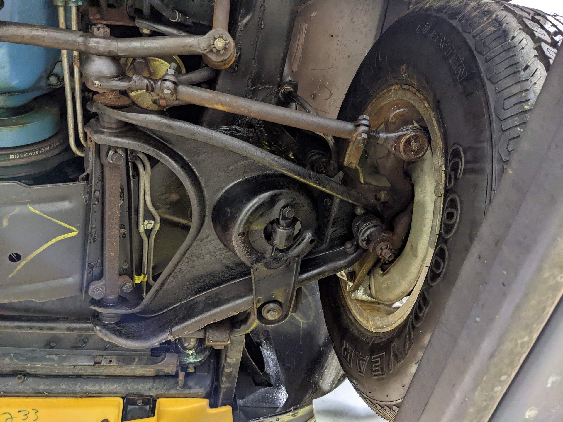 UNDERSIDE: Very well preserved all original condition. It still has assembly line markings. Never been spray canned over. Original shocks, exhaust, suspension etc. Spare tire carrier is complete.