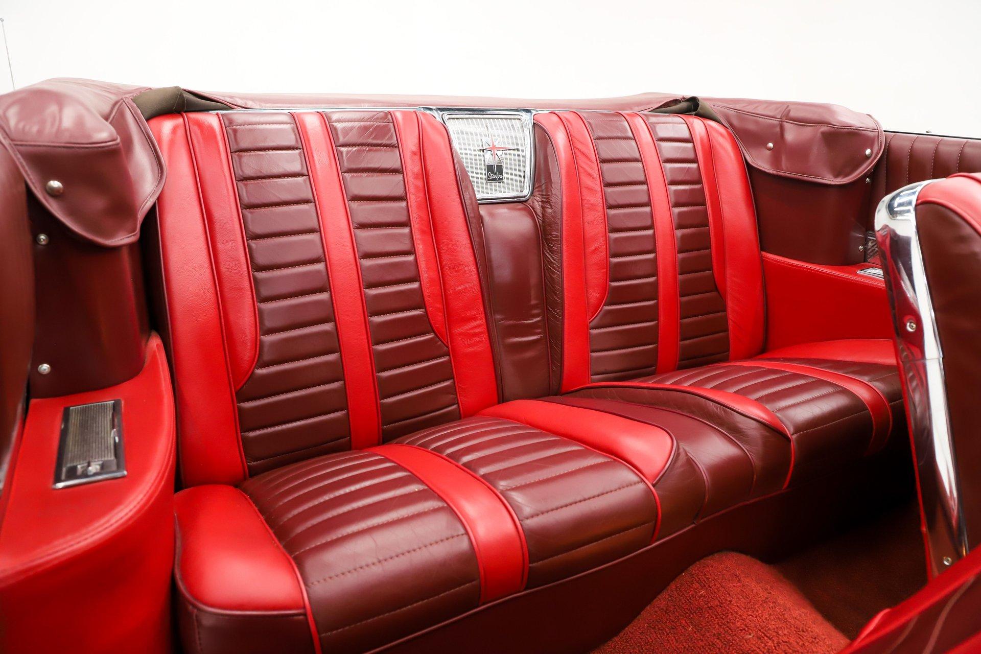 The interior is the best part of the car. Someone clearly spent good money on the genuine leather upholstery. The door panels are especially stylish, and the upper sections have been upholstered in fresh leather. The seating is very cool too, with bucket seats up front and a rear seat shaped to match. The leather extends to the seat sides as well, giving it a rich, upscale feel. The dash is full of character with plenty of trim and unique shapes, plus the clear plastic detail over the glove box and a really cool steering wheel. Even the pedals have flair. There is a modern stereo hidden in the glove box that powers the custom door panel speakers. Features include a console-mounted tachometer, power windows, power seat, Wonderbar radio, front seat belts, and a speed warning indicator.
