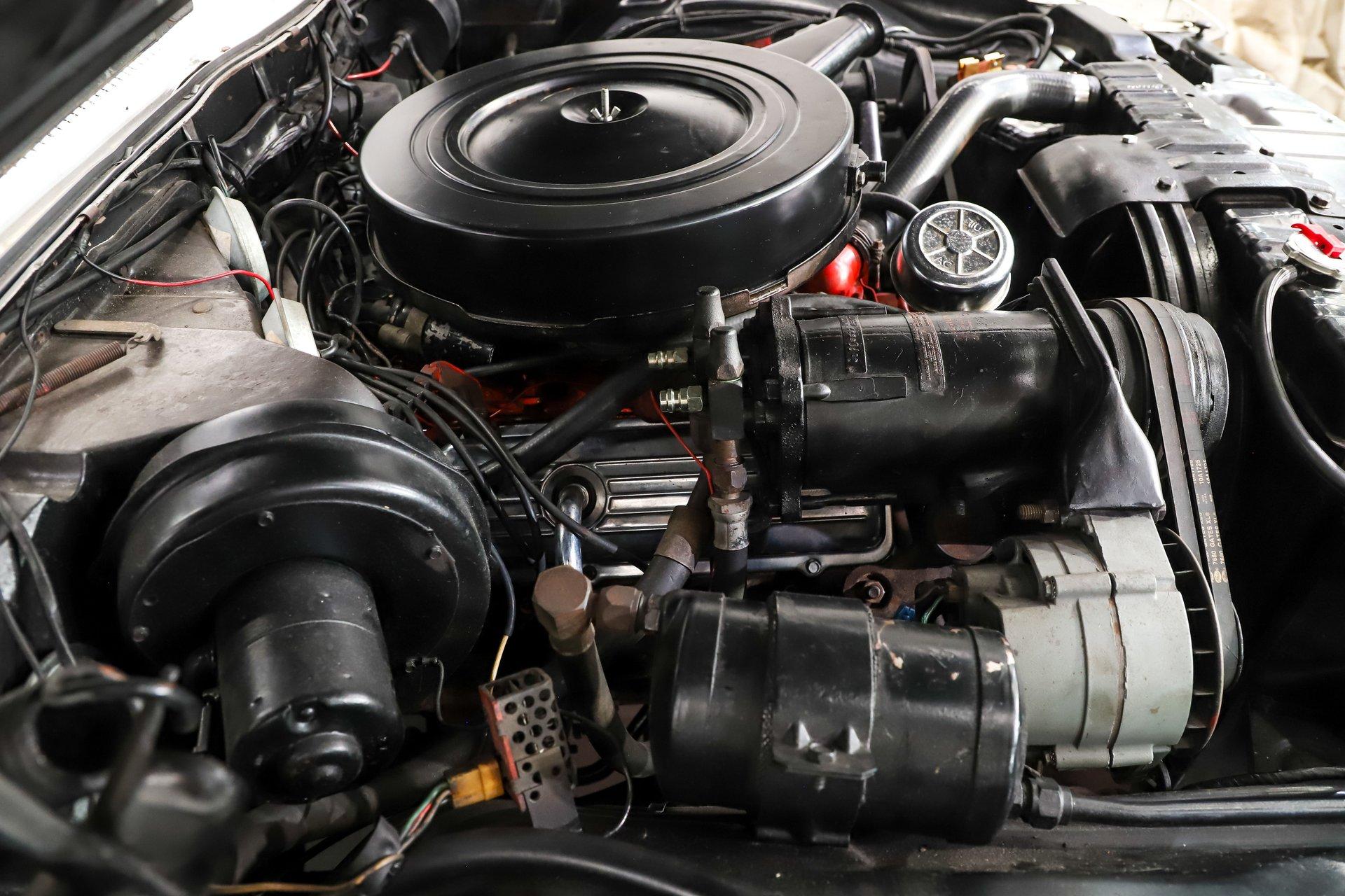 Power comes from Oldsmobile's 394 V8 making 345 horsepower. The engine compartment looks stock, complete, and proper. It is well equipped with factory air conditioning, power steering, and power brakes.
