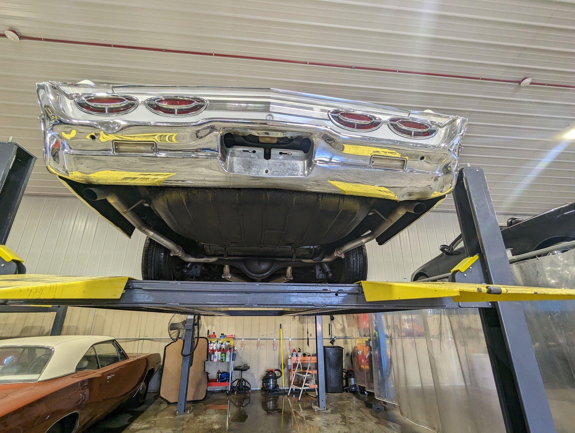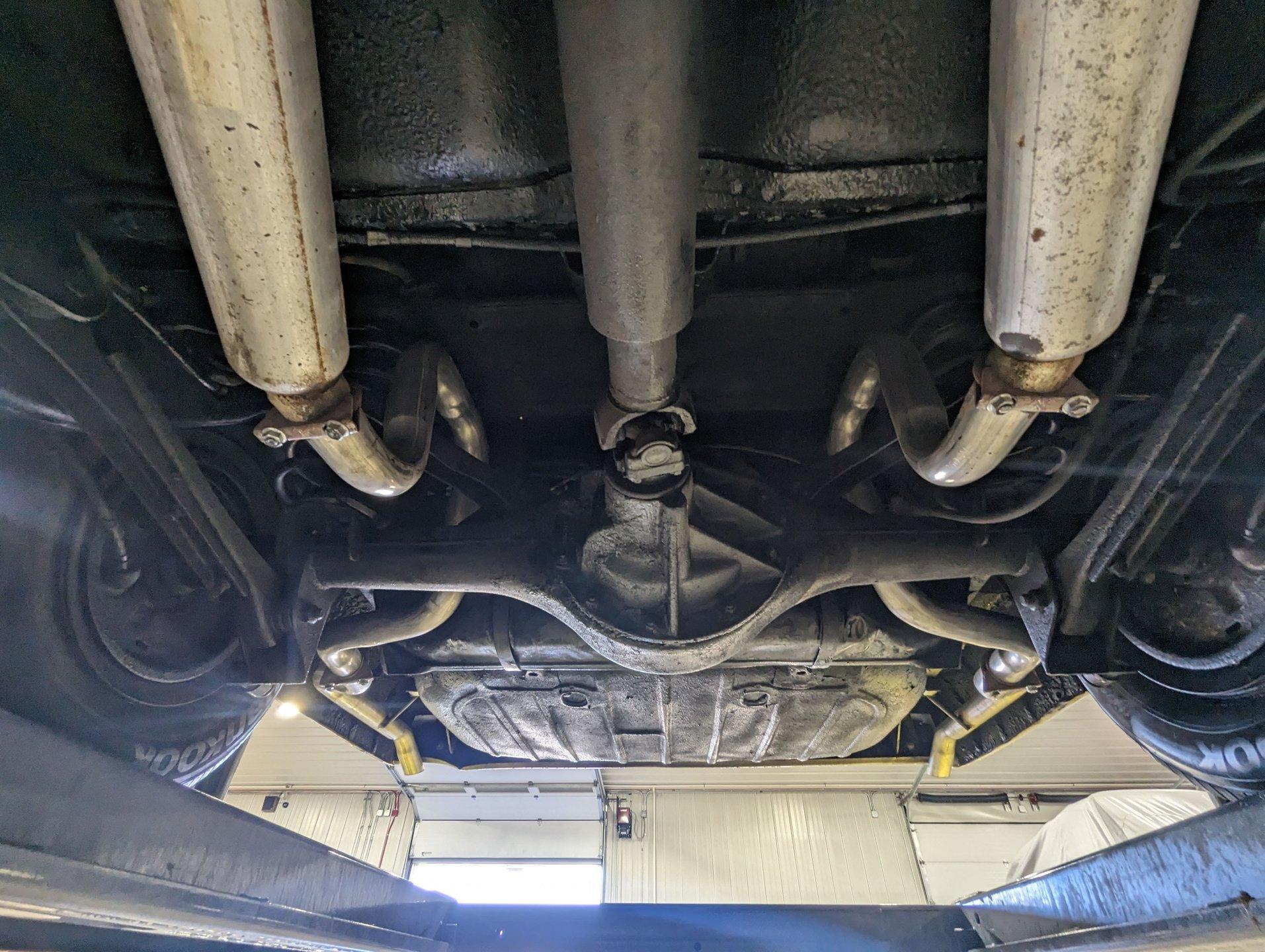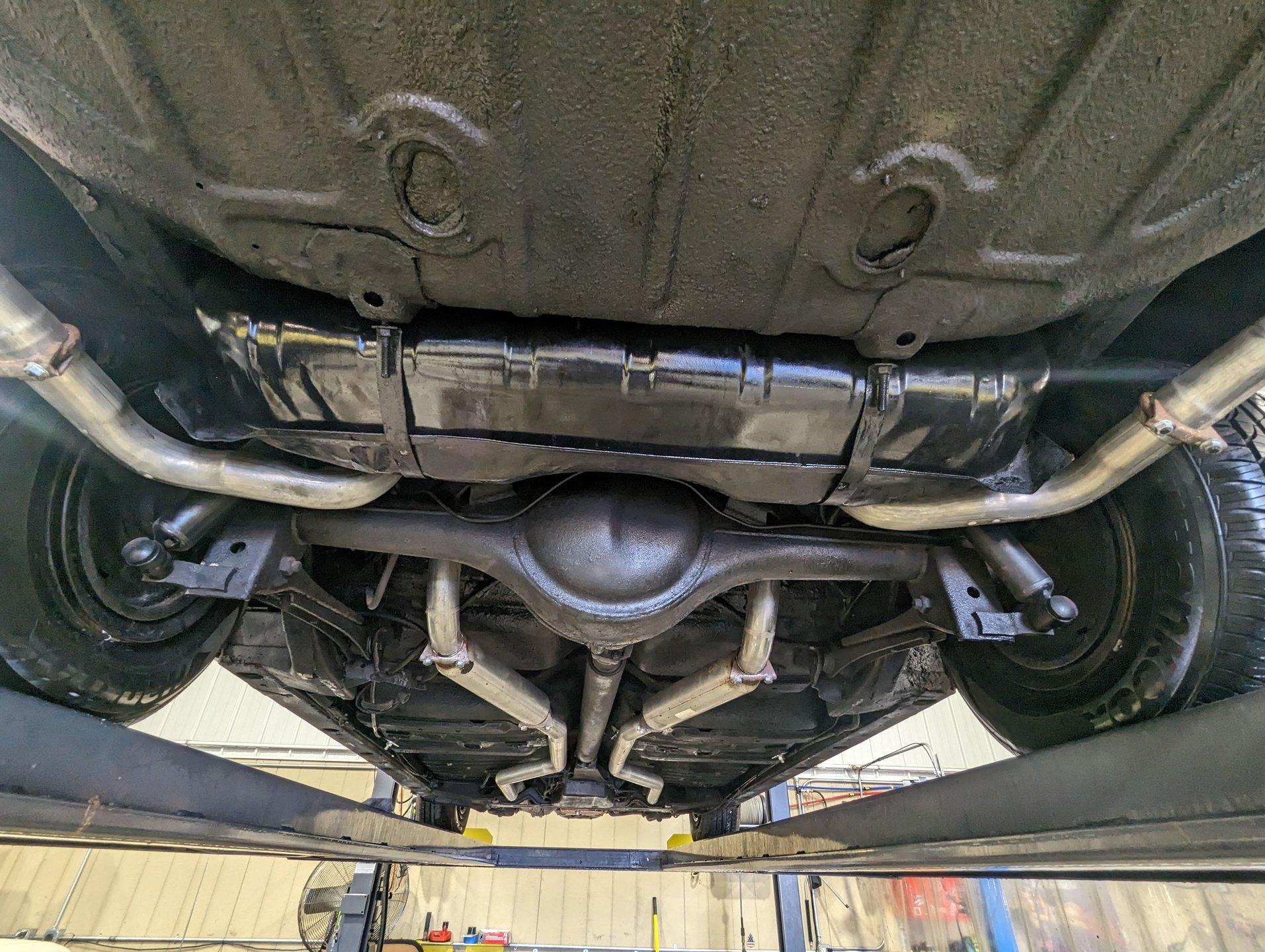 Underneath, the car appears solid and maintained as needed. The dual exhaust looks newer and is fitted with glasspack-style mufflers. The fuel tank has been replaced. The front end has been inspected and serviced. The shocks and springs appear to have been replaced as well. The starter was recently rebuilt. It still has its original Hydramatic transmission, and even the 1962 tag remains attached.