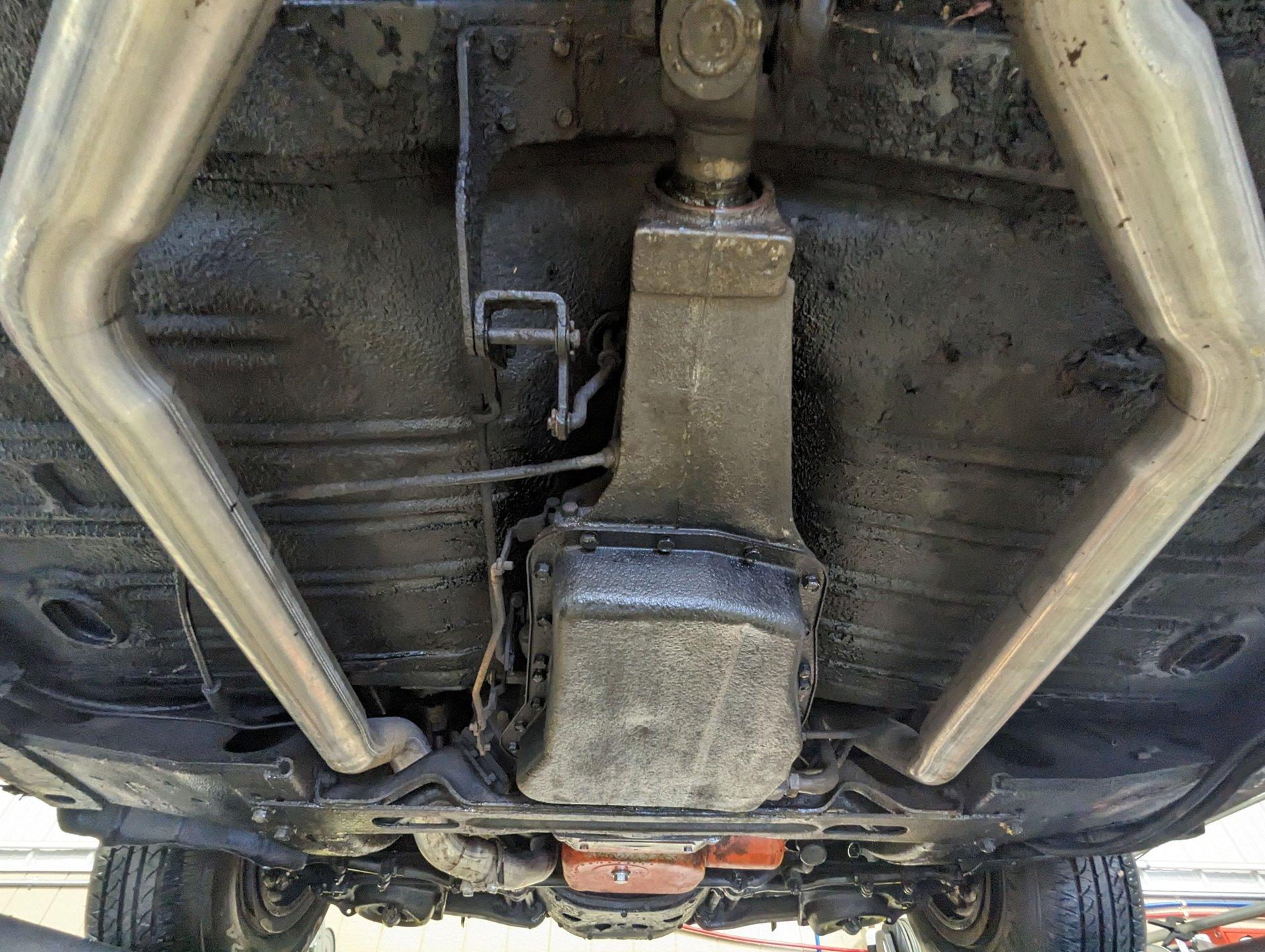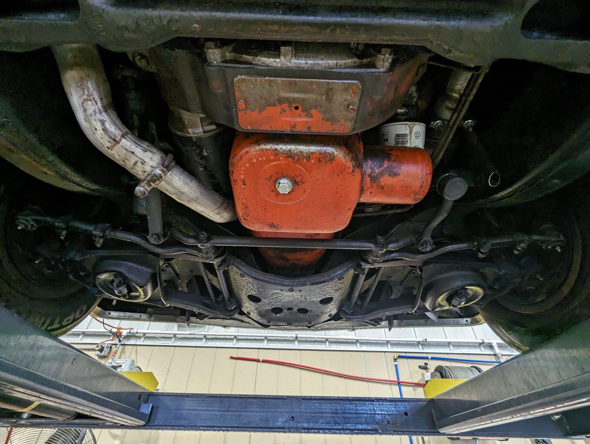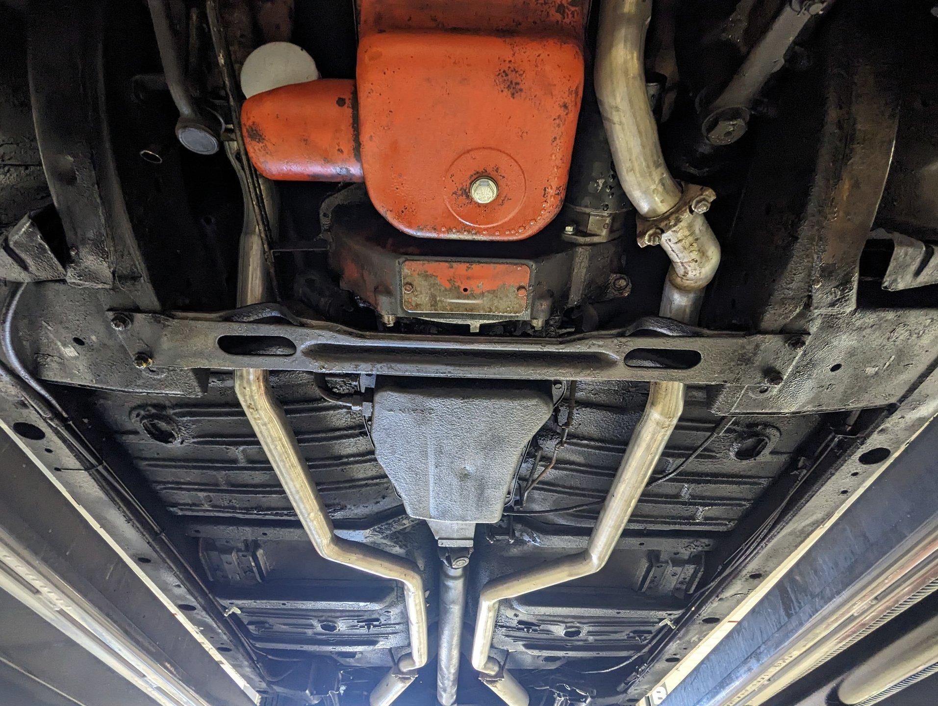 Underneath, the car appears solid and maintained as needed. The dual exhaust looks newer and is fitted with glasspack-style mufflers. The fuel tank has been replaced. The front end has been inspected and serviced. The shocks and springs appear to have been replaced as well. The starter was recently rebuilt. It still has its original Hydramatic transmission, and even the 1962 tag remains attached.