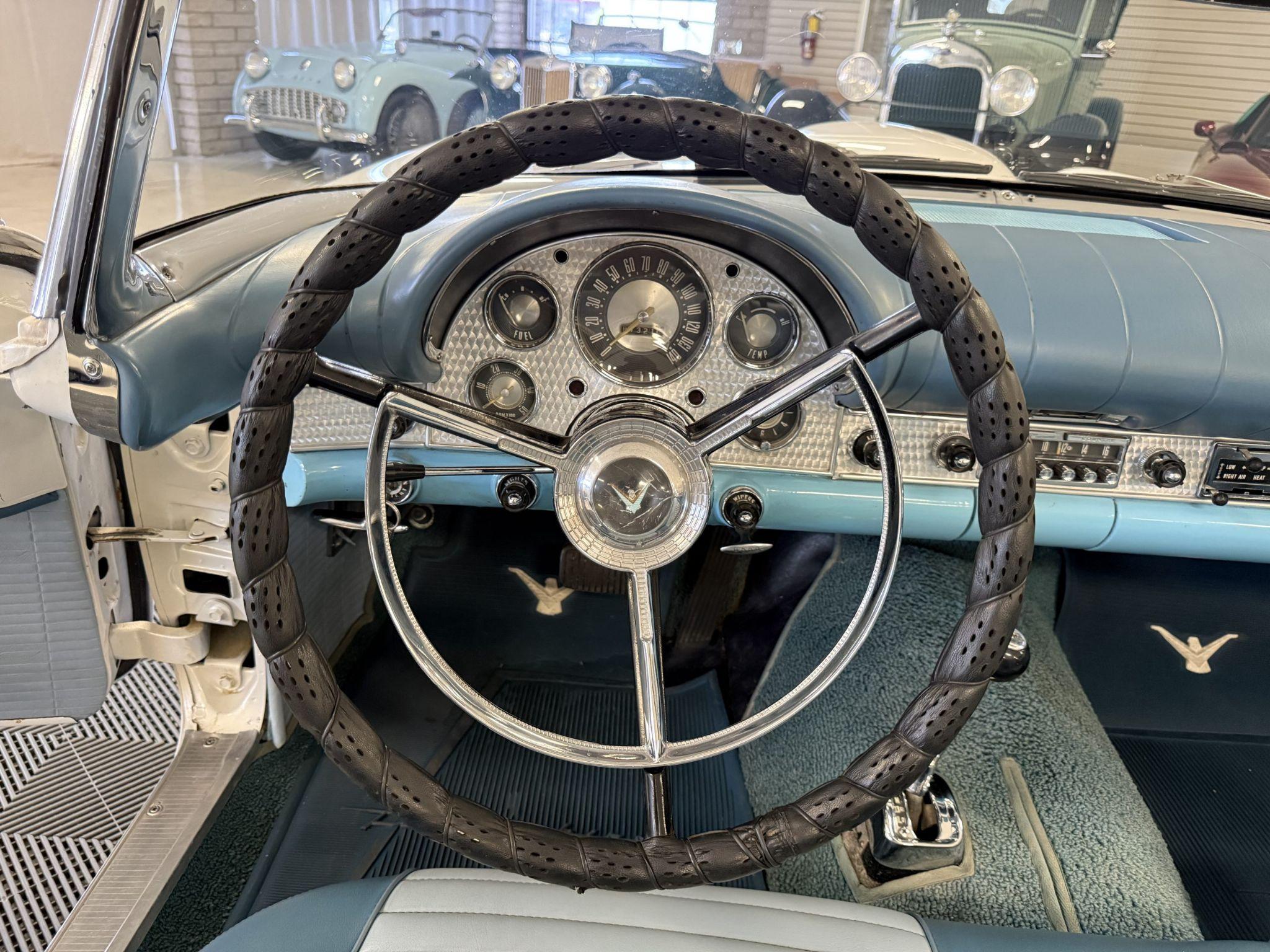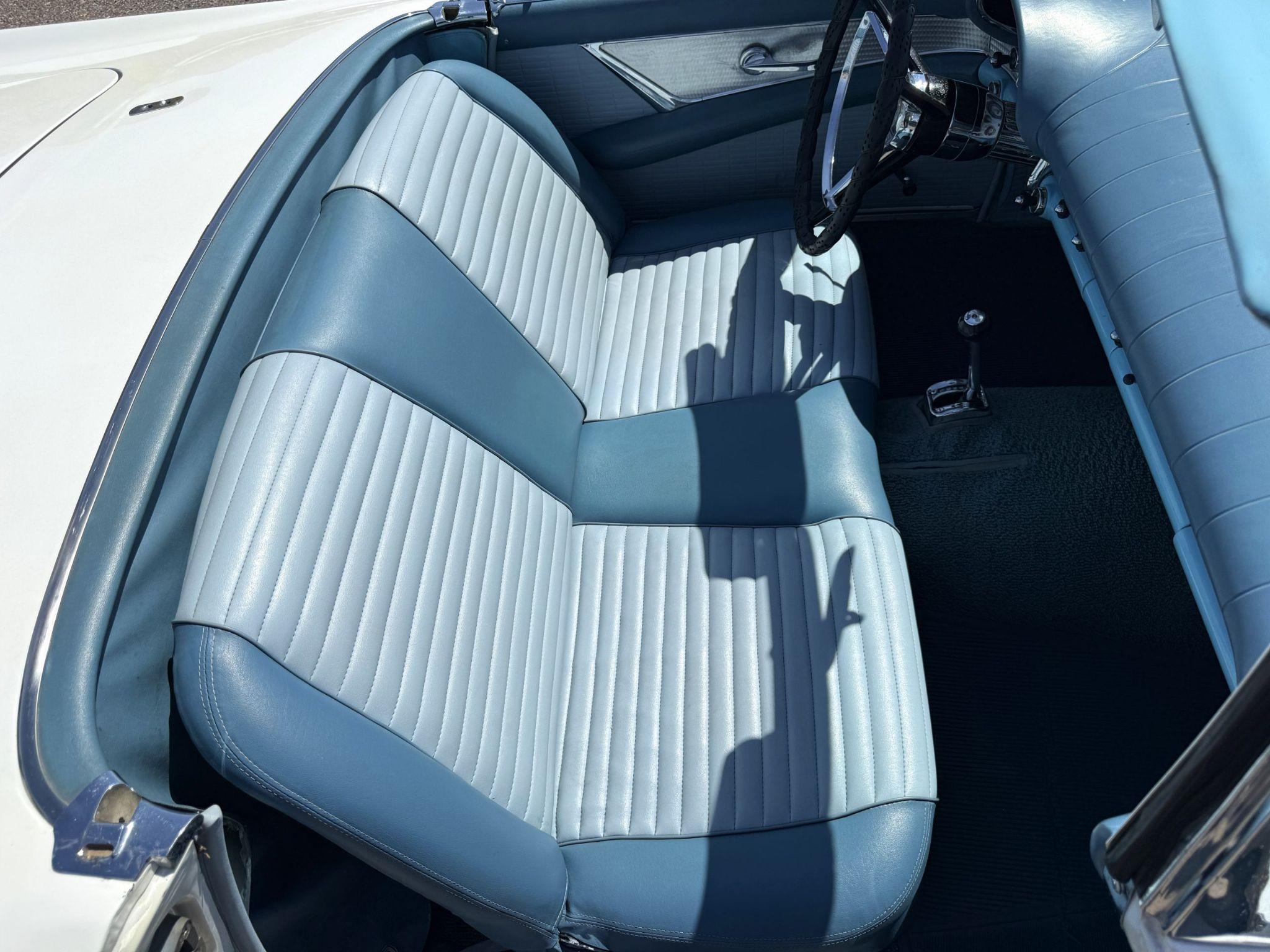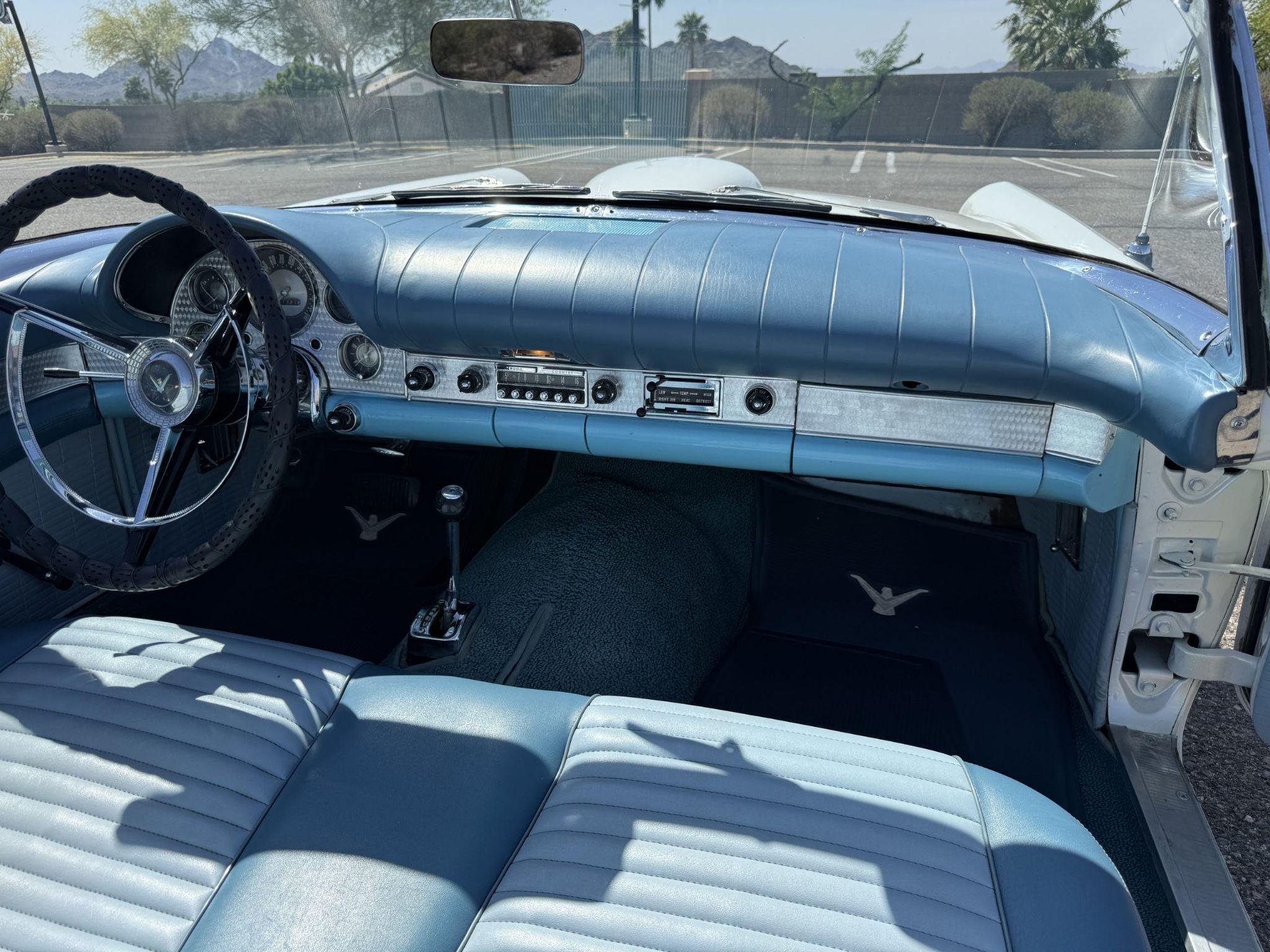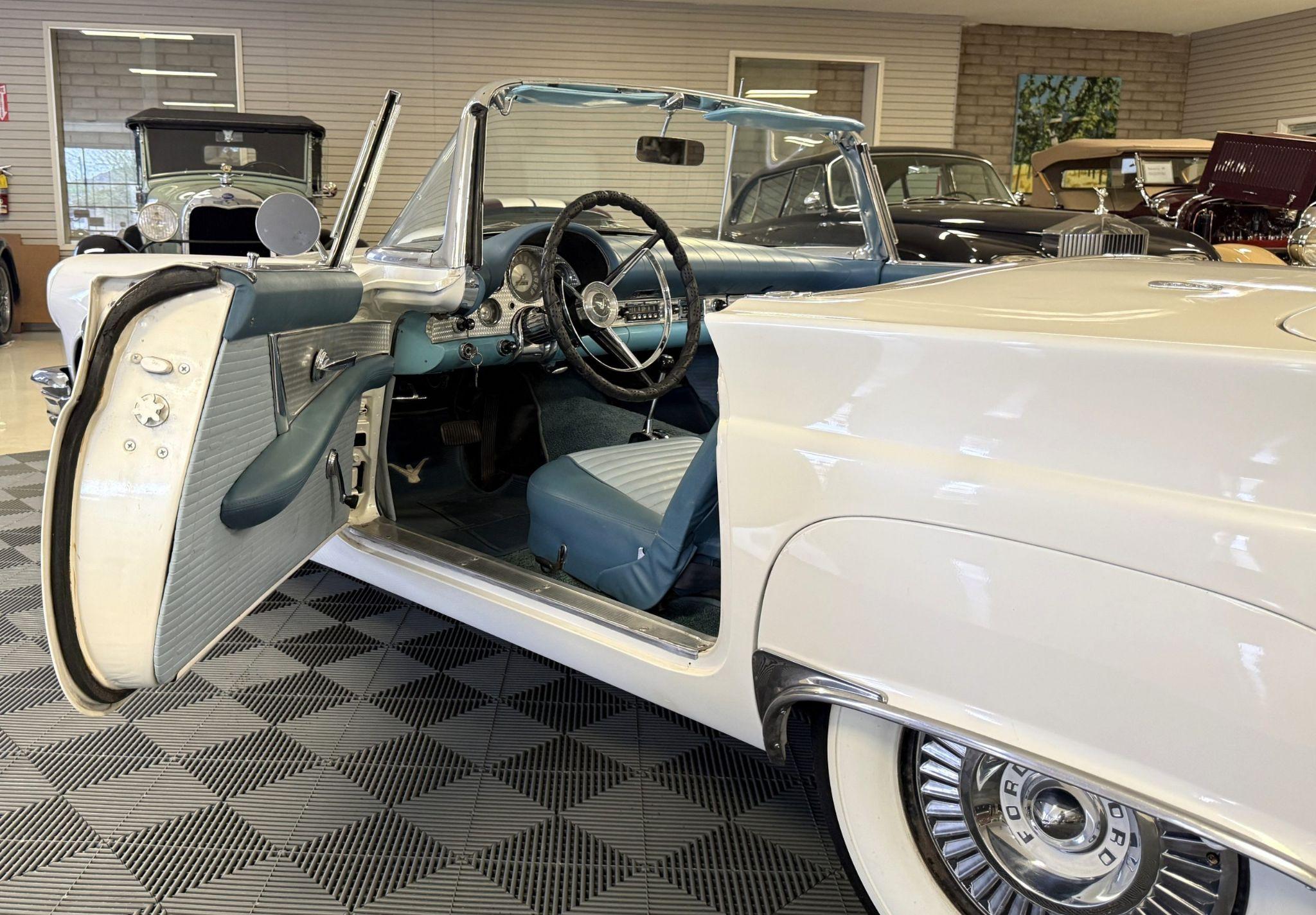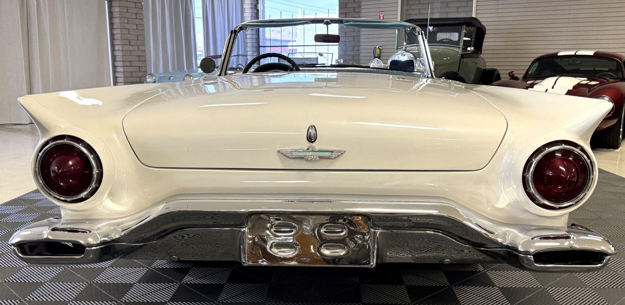 This 1957 Ford Thunderbird istheoriginalD code 312 V8 withtheoriginalthree-speedautomatictransmissionandis in overallgreat condition!The Thunderbird shows87,000 miles, has been an Arizona classic car for over 20yearsand the older restoration presents beautifully. The white exterior is overall excellentcondition,and the bluetwo-tonedinterior is in great overall condition. This Thunderbirdis a great driver and will be a blast to frequent car shows and enjoy weekend cruises. Built in Dearborn, Michigan, the 1957 Ford Thunderbird marked the end of the pure two-seat era before the model evolved into a four-place grand tourer.The Thunderbird waspurchasedin 2006 with84,000 milesand has beenstored in climate control while beingused for weekend enjoyment. Chesters Automative in Phoenixmaintainedthe Thunderbird during thattime period. This Thunderbird is striking in its presentation with white paint, beautiful chrome accents and white wall tires. Finished in Colonial White, the paint is in excellent condition overall with the only cosmetic imperfections showing some light yellowing behind the tailfins.The chrome bumpers, trim, rock guards and fender skirts are in great condition. The passenger fenderskirt has one area that looks to have chipped when the fender skirt was reinstalled and has since been touched up. Wide whitewall tires on 14inch Ford-logo steel wheels present beautifully but will need to be replaced for long driving durations. The Thunderbird has its matching white hard top that is in great condition! This Thunderbird is a bright, beautiful white example that is perfect for enjoying local shows, regional tours or just to enjoy taking out to dinner. The blue toned interior of this Thunderbird complements the white exterior and is in overallgreat condition! The interior features Dresden vinyl andStarmistvinyl upholstery, which presents in overallgreat conditionwith no major wear areas noted. The dashboard vinyl is in excellent condition, and the brushed metal interior trim is in good condition with some visible aging consistent with use. The original steering wheel has been wrapped, and the blue carpet is in overallgreat condition.Instrumentation includes a 140-mph speedometer,tachometer, clock, and auxiliary gauges.Dual cowl vents,a functional heater, and AM radio.The lens for the dashboard map light will be replaced once it arrives from being backordered. The interior is well sorted and ingreat conditionto be enjoyed! Under the hood, the Ford Thunderbird is powered by theD code312 CID V8 with a four-barrel carburetor, producing approximately 245 horsepower and delivering smoothyet powerfulperformance. Power is sent through a three-speed Ford-O-Matic automatic transmission. This Thunderbird hasits original rear differential,power steering, independent suspension, and four-wheel hydraulic drum brakes.The Thunderbird has been serviced in 2026, power steering hoses replaced and brake fully rebuilt. Included withthe Thunderbird is itsmatching hardtop, red vinyl tonneau cover, and spare tire. For more information and details, please call or text Kendi Brown at 1.623.404.9042 or email us at sales@classicpromenade.com . This 1957 Ford Thunderbird is available for inspection at our showroom in Phoenix. We are pleased to offer FaceTime or WhatsApp live video inspections, and we help coordinate shipping worldwide. We also have financing partners if you are interested in financing.
