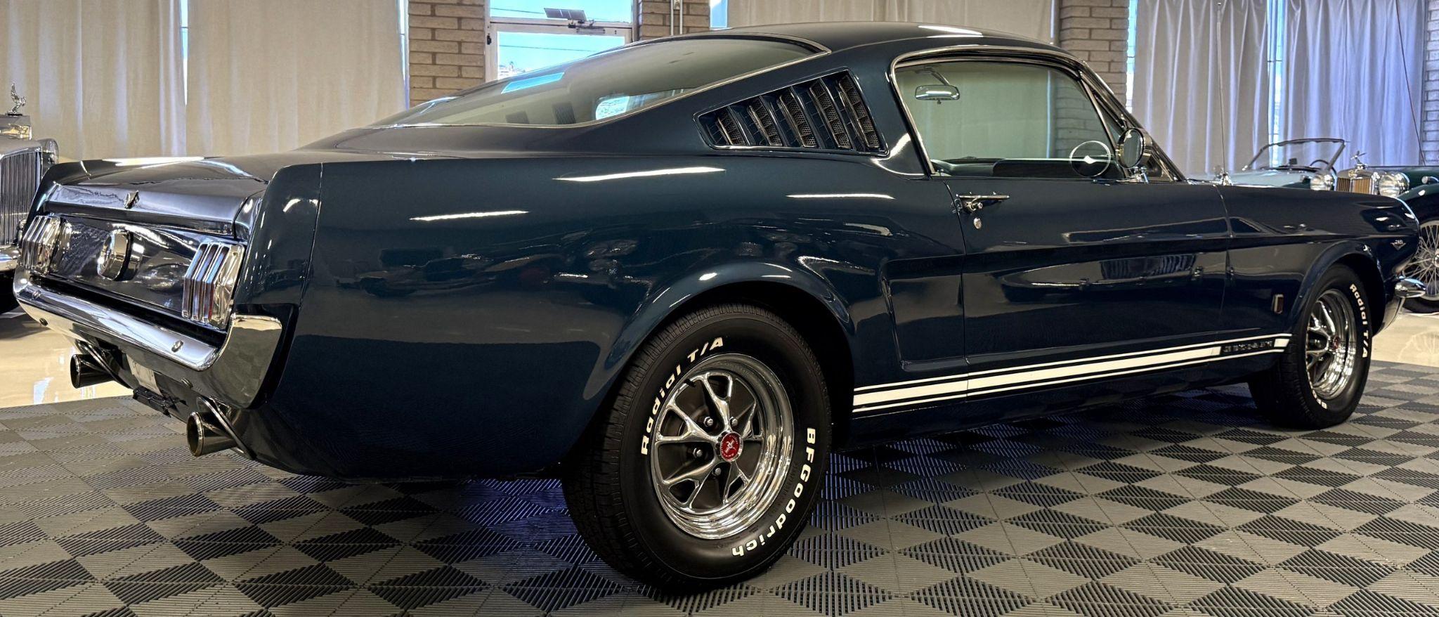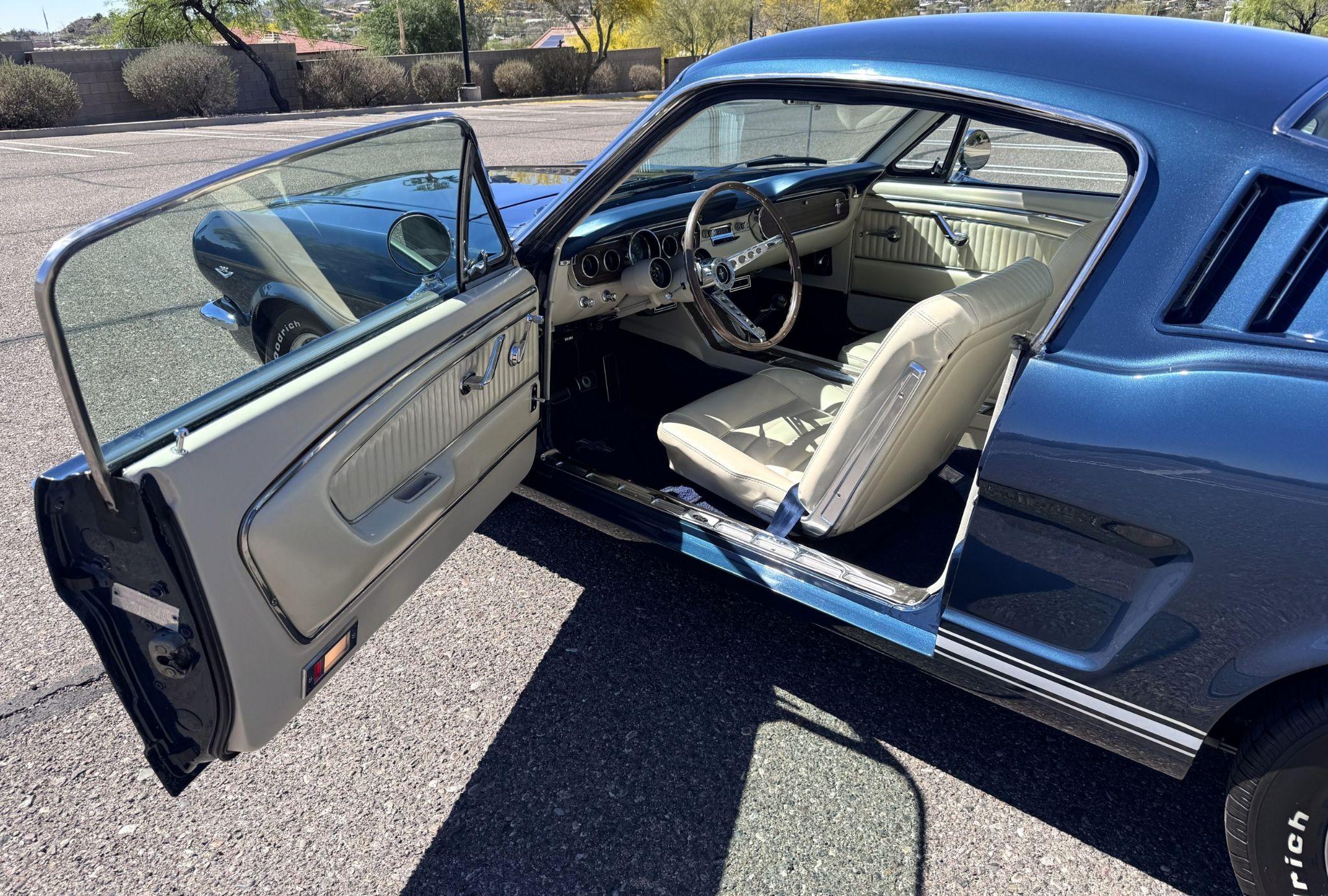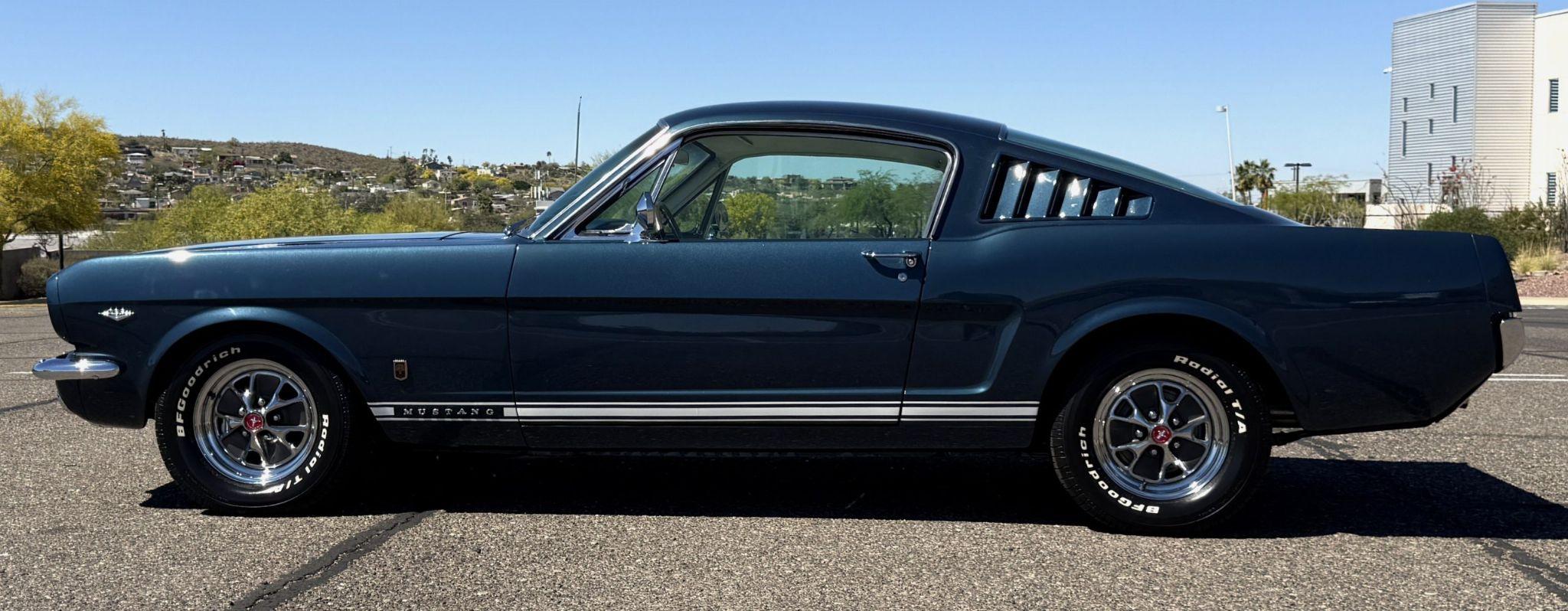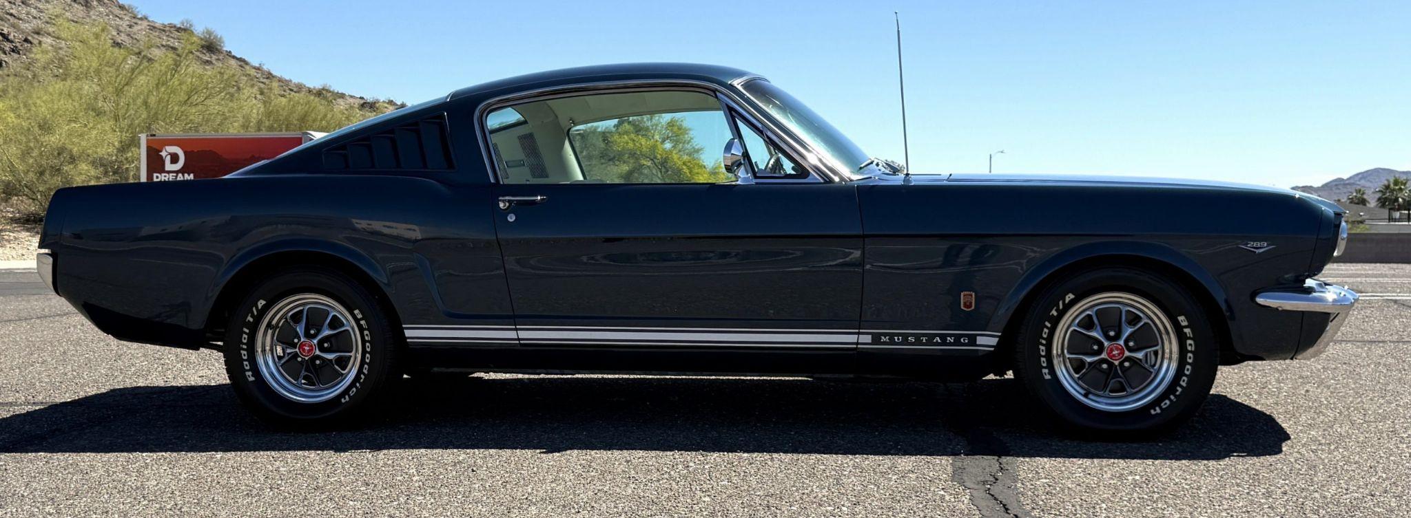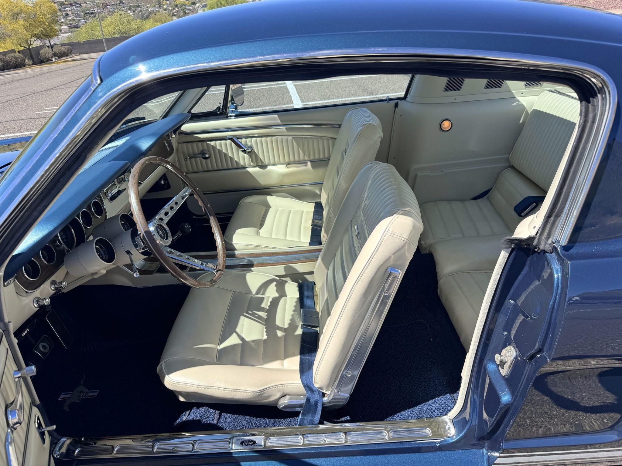 The 1965 Ford Mustang Fastback GT is an A-code 289 V8 with four-speed manual transmission that is in excellent overall condition! This Fastback GT is finished in Caspian Blue exterior with White Pony interior, 2 2 configuration and has A/C. The Fastback shows 29,200 miles according to the title and is in excellent mechanical condition. This Fastback is a low mileage example, overall excellent condition and is ready to be enjoyed! This Mustang in Dearborn in late 1965 and configured as a 2 2 Fastback with GT equipment including stiffer suspension, dual exhaust, and rocker panel stripes. The current owner acquired the Mustang in 2022 and added less than 100 miles during ownership. Historical title records show the odometer measuring 25,000 in 2010 which averages to 250 miles added per year. The exterior of this Fastback is in overall excellent condition, and the Caspian Blue paint is in excellent condition with only a two notable chips from normal use. This Mustang has GT badging including the white GT rocker panel stripes that are in excellent condition. The GT fog light package, badging, and brightwork are in great condition. The Mustang rides on 14-inch GT steel wheels with BF Goodrich Radial T/A tires that were replaced in 2021. This Fastback presents beautifully and is a very desirable color combination for a Fastback The interior of this Mustang is in overall excellent condition with White Pony interior seats (Trim F2) that are in excellent condition. This Mustang has the 2 2 fold-down rear seat, a wood grain GT steering wheel and wood grain dash that are in great condition. The factory gauges, AM radio and Vintage A/C are operational. The dark blue carpeting and Mustang floor mats are in great condition. This Fastback has been well taken care of over the years and the interior shows beautifully! The Mustang is powered by the A-code 289CI V8 paired with a four-speed manual transmission. The Mustang is equipped with a four-barrel carburetor, power steering, upgraded aluminum radiator, dual exhaust with proper hangers and four-wheel disc brakes. This Fastback has a great drive, provides plenty of power and is a joy to take out on the road. The Fastback has a clean inspection report and was serviced in April 2026. For more information and details, please call or text Kendi Brown at 1.623.404.9042 or email us at sales@classicpromenade.com. This 1965 Ford Mustang Fastback is available for inspection at our showroom in Phoenix. We are pleased to offer FaceTime or WhatsApp live video inspections, and we help coordinate shipping worldwide. We also have financing partners if you are interested in financing.