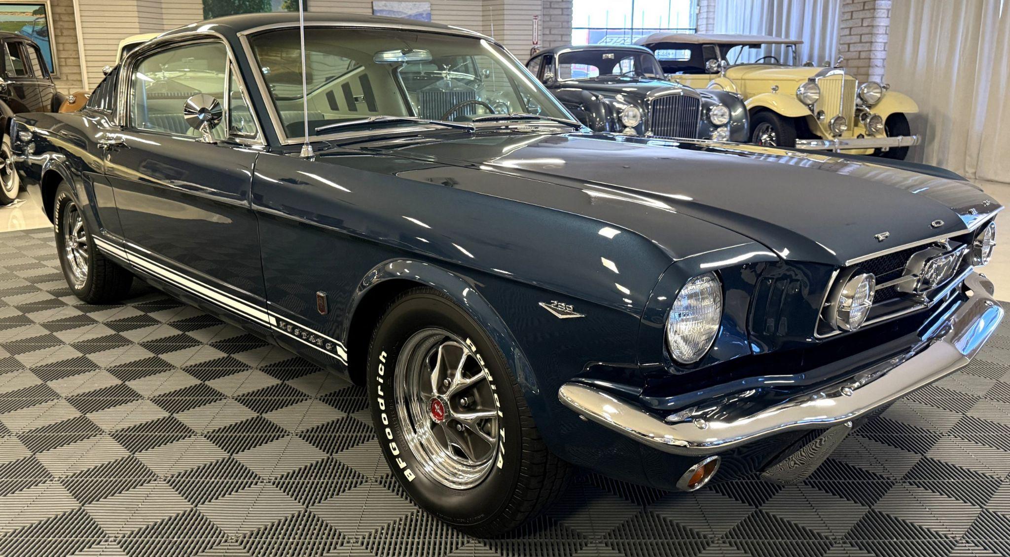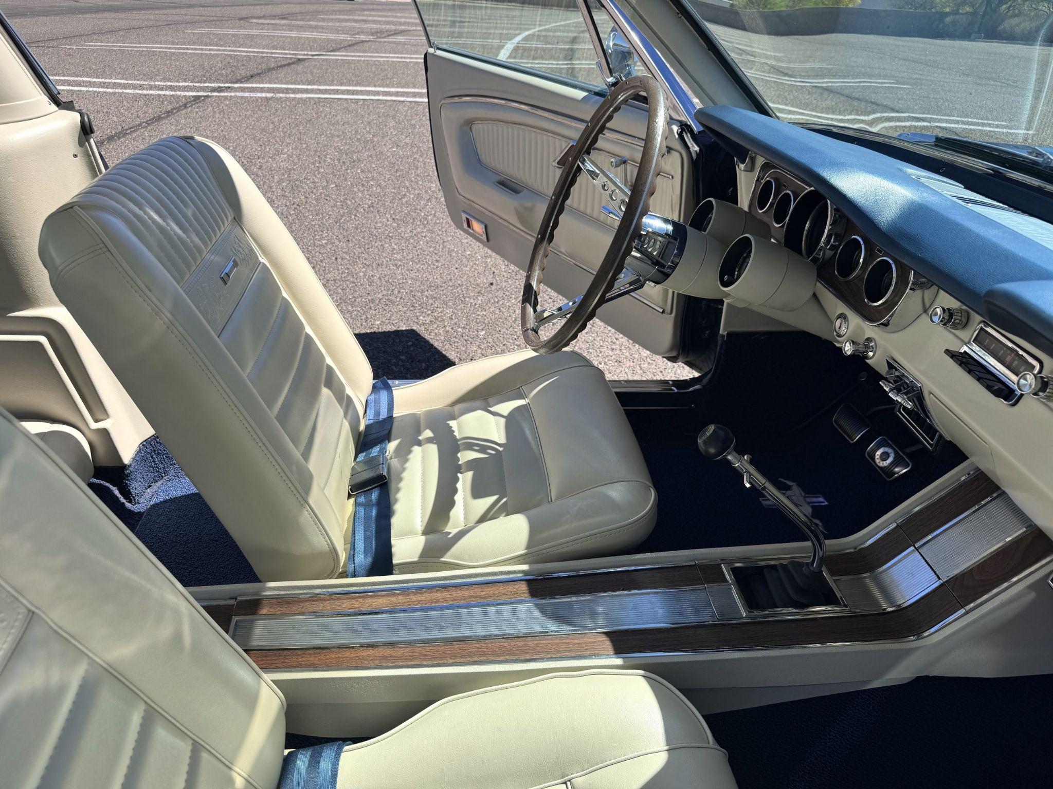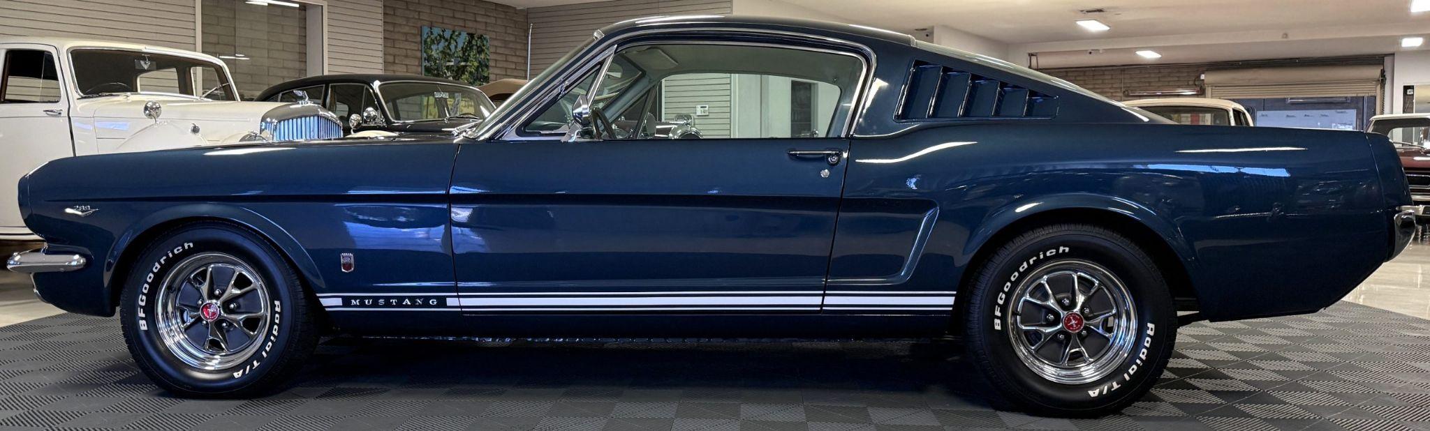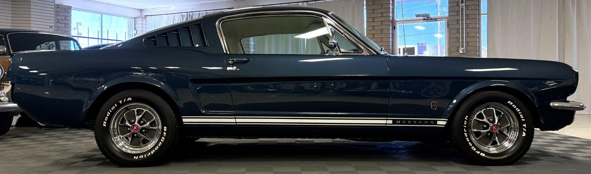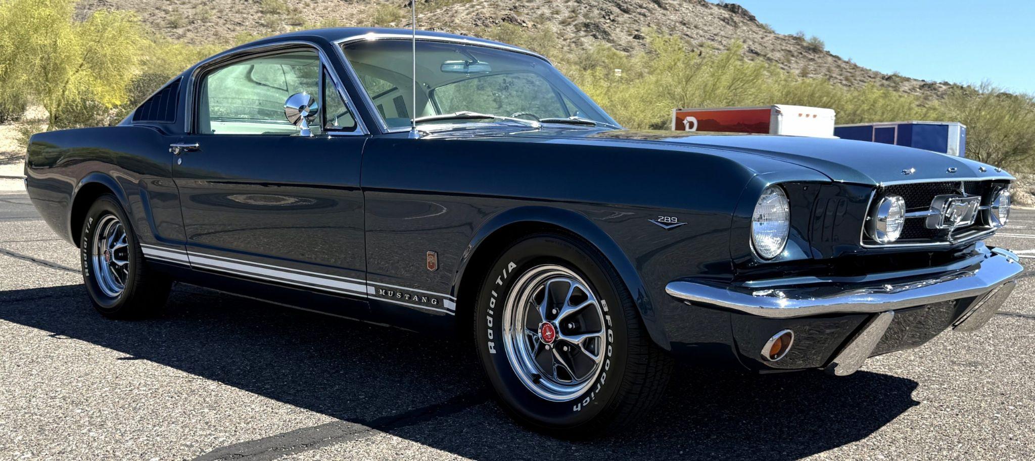 The 1965 Ford Mustang Fastback GT is an A-code 289 V8 with four-speed manual transmission that is in excellent overall condition! This Fastback GT is finished in Caspian Blue exterior with White Pony interior, 2 2 configuration and has A/C. The Fastback shows 29,200 miles according to the title and is in excellent mechanical condition. This Fastback is a low mileage example, overall excellent condition and is ready to be enjoyed! This Mustang in Dearborn in late 1965 and configured as a 2 2 Fastback with GT equipment including stiffer suspension, dual exhaust, and rocker panel stripes. The current owner acquired the Mustang in 2022 and added less than 100 miles during ownership. Historical title records show the odometer measuring 25,000 in 2010 which averages to 250 miles added per year. The exterior of this Fastback is in overall excellent condition, and the Caspian Blue paint is in excellent condition with only a two notable chips from normal use. This Mustang has GT badging including the white GT rocker panel stripes that are in excellent condition. The GT fog light package, badging, and brightwork are in great condition. The Mustang rides on 14-inch GT steel wheels with BF Goodrich Radial T/A tires that were replaced in 2021. This Fastback presents beautifully and is a very desirable color combination for a Fastback The interior of this Mustang is in overall excellent condition with White Pony interior seats (Trim F2) that are in excellent condition. This Mustang has the 2 2 fold-down rear seat, a wood grain GT steering wheel and wood grain dash that are in great condition. The factory gauges, AM radio and Vintage A/C are operational. The dark blue carpeting and Mustang floor mats are in great condition. This Fastback has been well taken care of over the years and the interior shows beautifully! The Mustang is powered by the A-code 289CI V8 paired with a four-speed manual transmission. The Mustang is equipped with a four-barrel carburetor, power steering, upgraded aluminum radiator, dual exhaust with proper hangers and four-wheel disc brakes. This Fastback has a great drive, provides plenty of power and is a joy to take out on the road. The Fastback has a clean inspection report and was serviced in April 2026. For more information and details, please call or text Kendi Brown at 1.623.404.9042 or email us at sales@classicpromenade.com. This 1965 Ford Mustang Fastback is available for inspection at our showroom in Phoenix. We are pleased to offer FaceTime or WhatsApp live video inspections, and we help coordinate shipping worldwide. We also have financing partners if you are interested in financing.