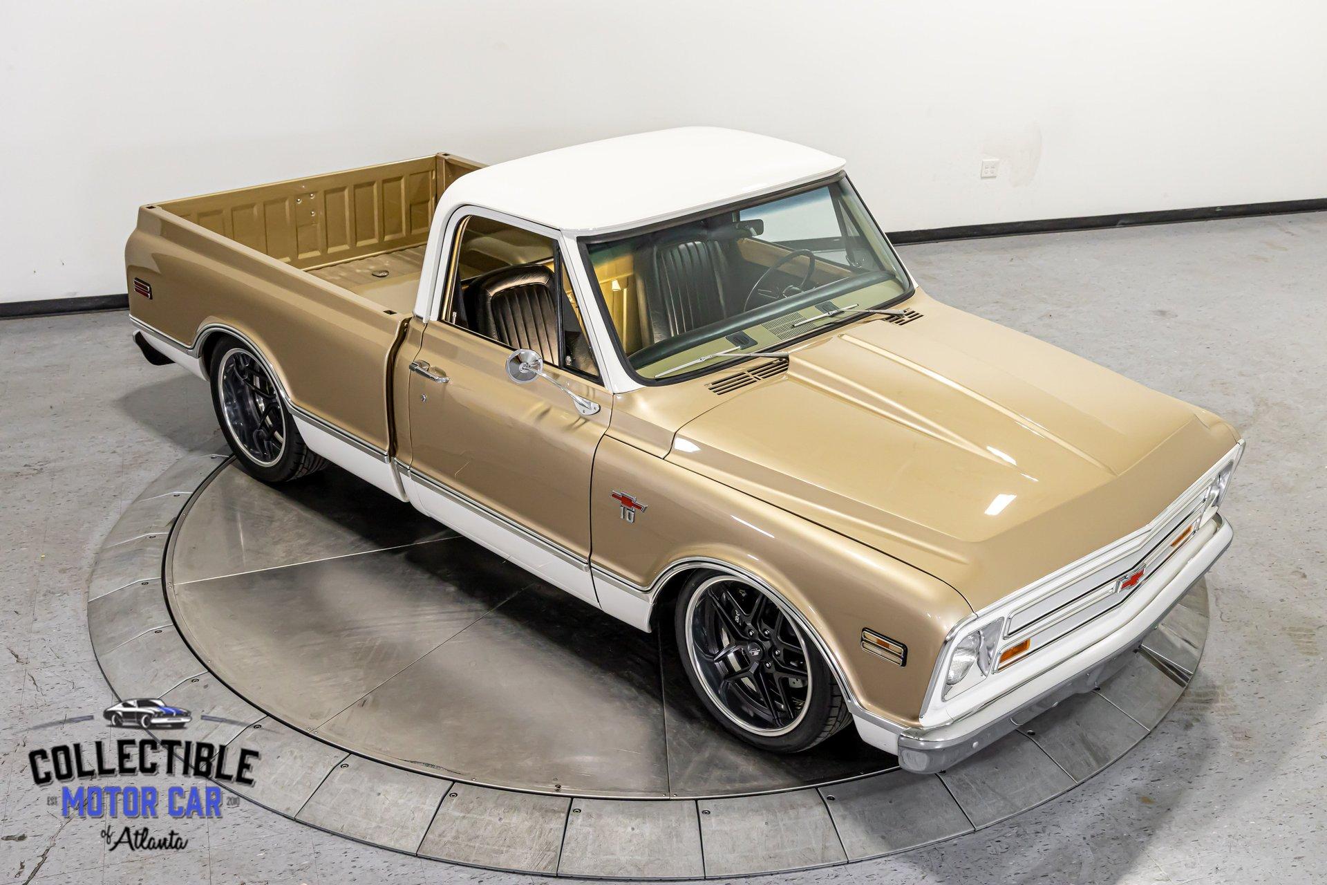 Fresh 2024 build. Big-block power. Killer stance. This 1969 Chevrolet C10 is the kind of truck that checks all the boxes-slick body and paint, zero rust, strong drivability, cold A/C, and the right mix of classic style and upgraded performance. Finished in a sharp gold and white two-tone, this truck has an unmistakable presence whether it is laid out at a show or cruising down the highway.