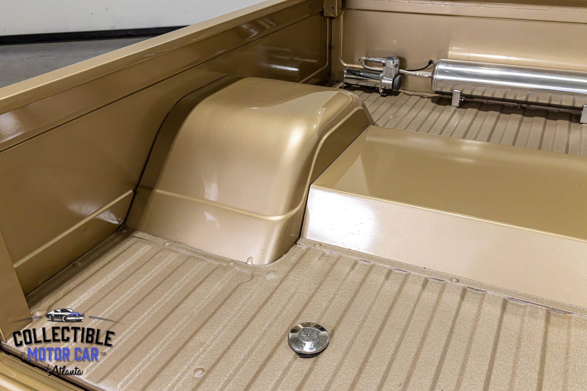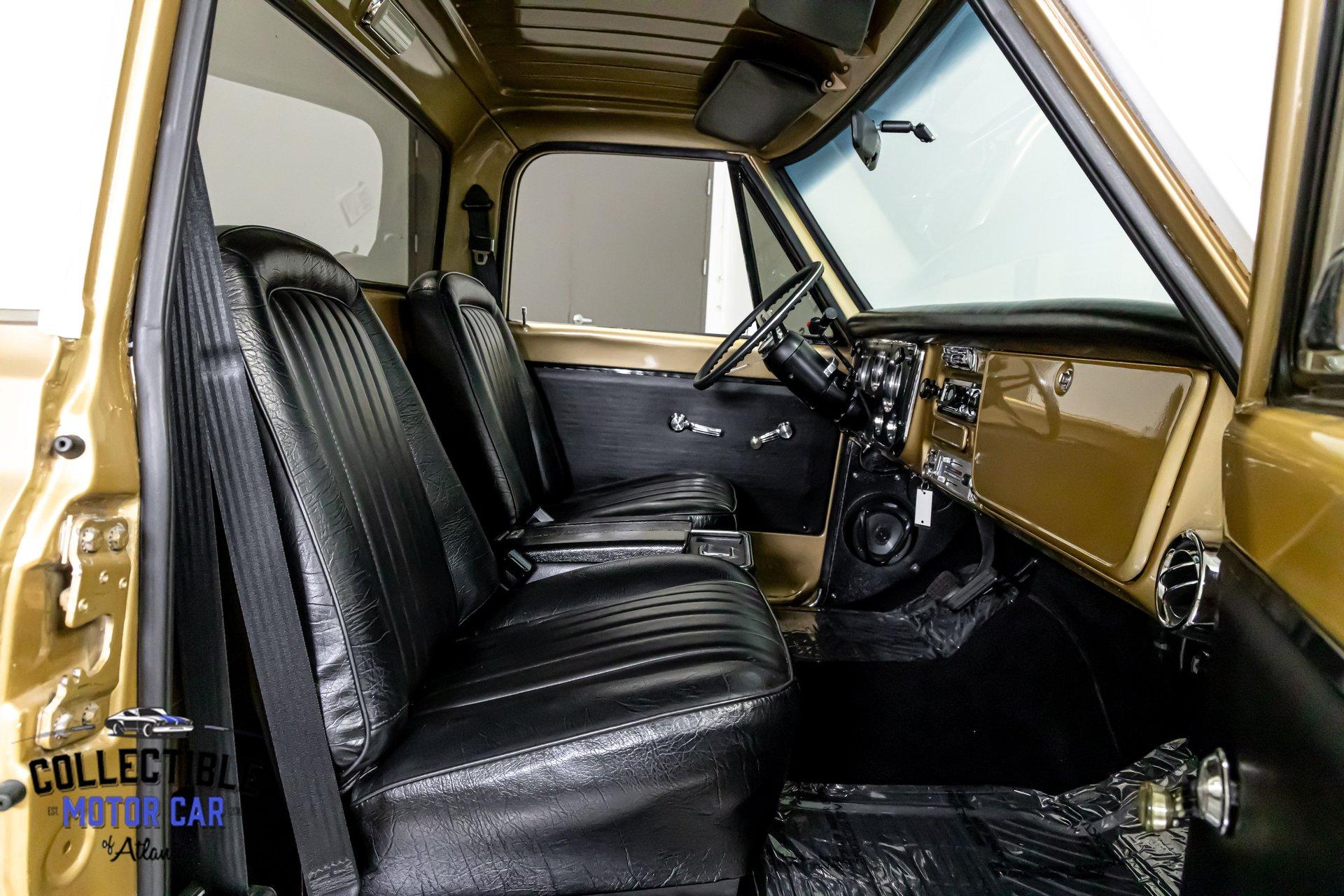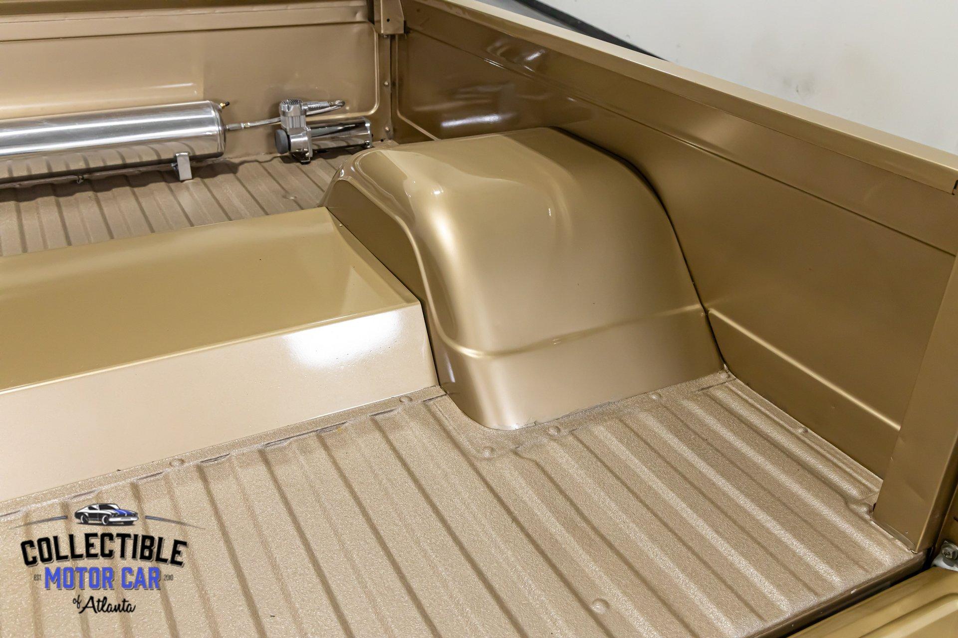 Inside, the truck keeps the right classic feel with tasteful upgrades. The OE-style bucket seats and center console give it a clean, finished look without overdoing it. The carpet kit appears fresh, the cab presents well, and the overall interior has the same clean, sorted feel as the rest of the build. It is a comfortable place to spend time, and this truck has been driven enough to prove it.