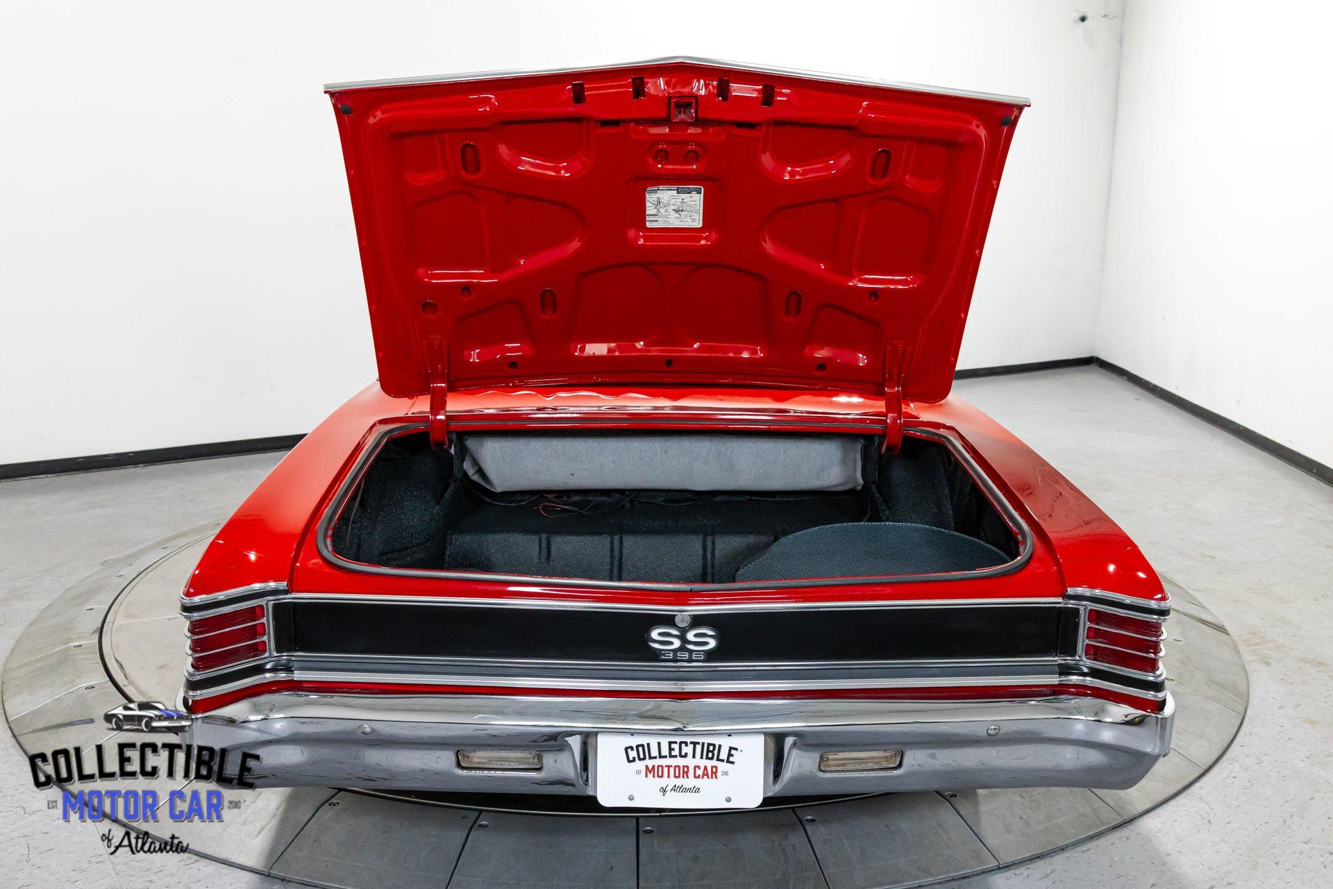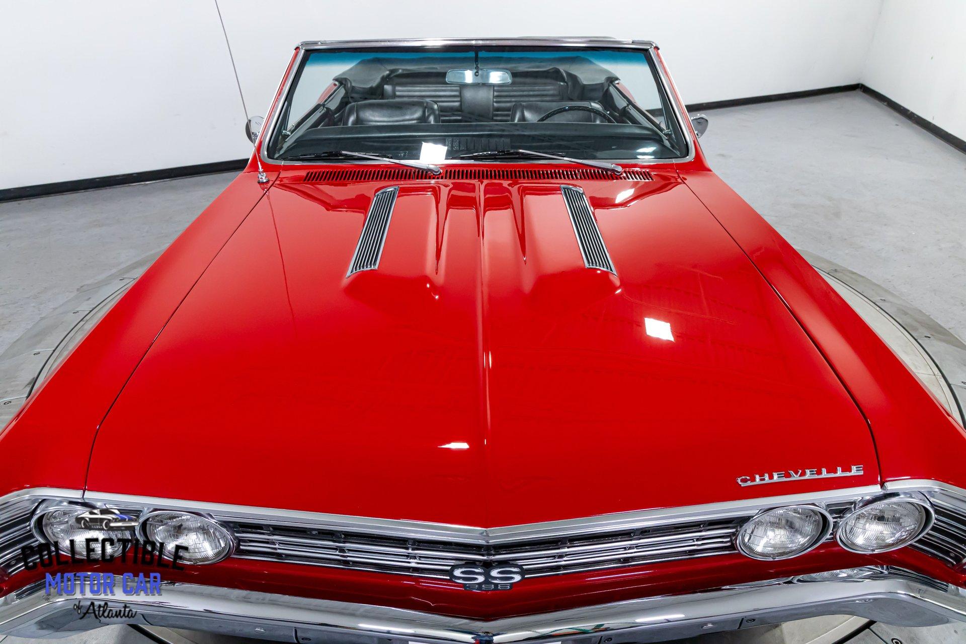 Finished in bright red, this Chevelle has exactly the kind of presence a '67 SS convertible should. The body is described as extremely straight, and the paint is said to be a strong 9, which fits what the photos suggest - smooth reflections, strong color, and a very clean overall presentation. The stance is right, the lines are crisp, and the car has that unmistakable muscle-era look that makes 1967 Chevelles so desirable.