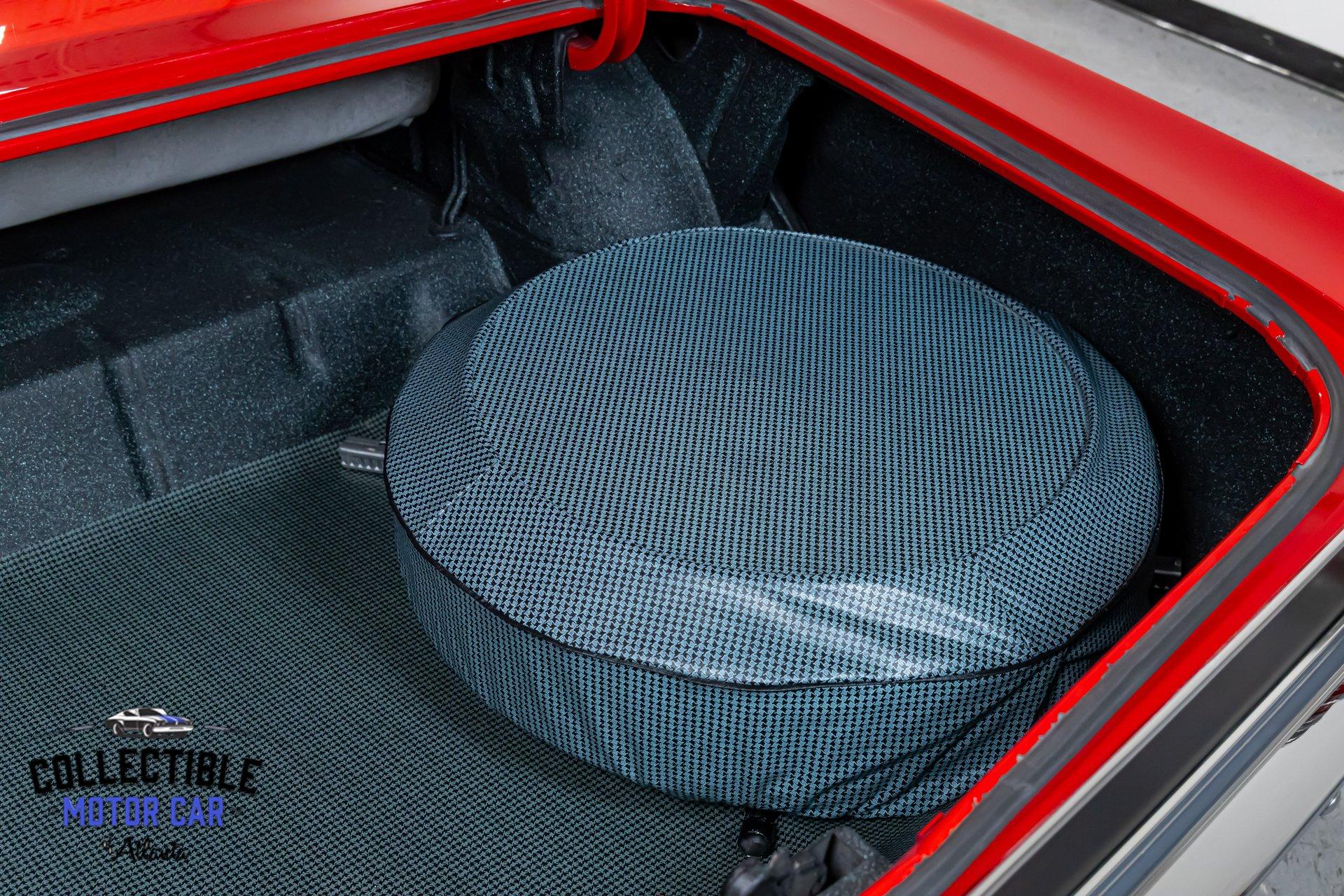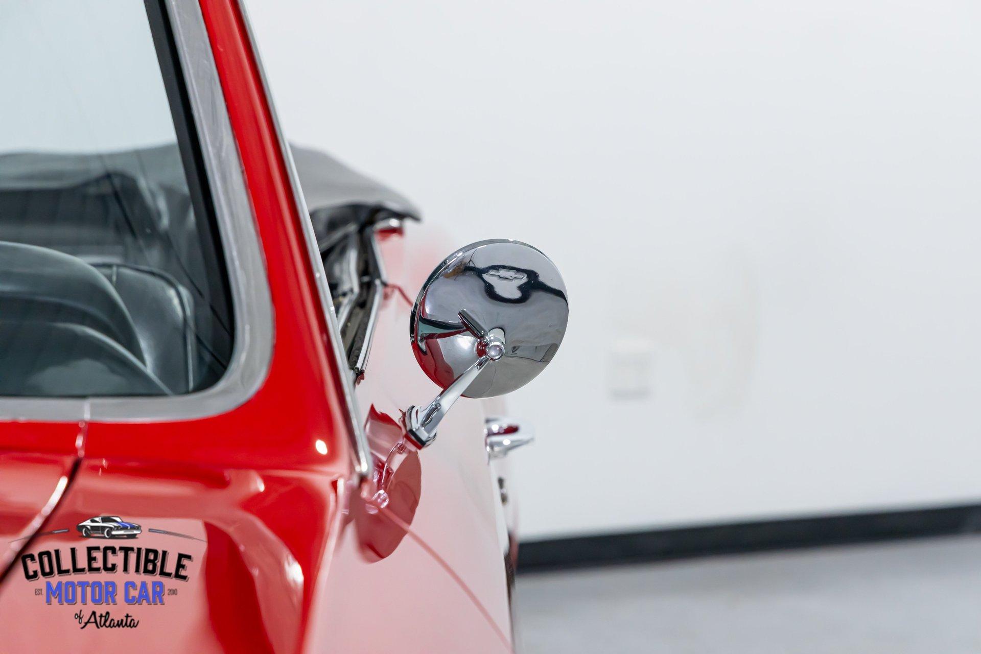 The brightwork and trim appear to be a major strength here as well. You noted that the chrome is excellent, and the photos support that with strong front bumper, grille, trim, and mirror presentation. The black convertible top contrasts beautifully with the red body, and the top itself is described as being in excellent shape.