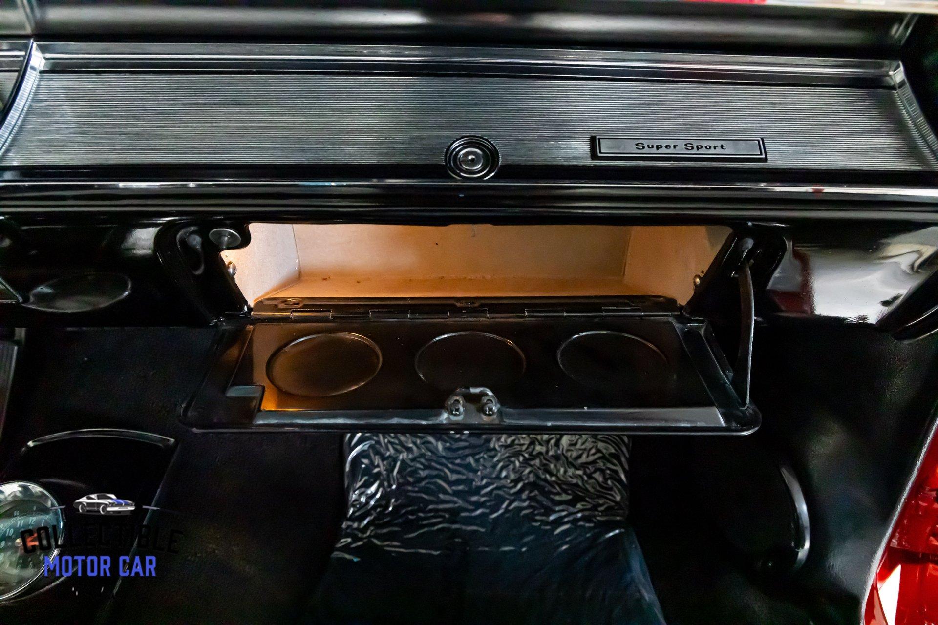 Inside, the car features a Black interior that fits the red exterior exactly the way a big-block Chevelle convertible should. The bucket seats, center console, door panels, and carpet all appear clean and well presented in the photos. The interior has the right feel - sporty, straightforward, and driver-focused.