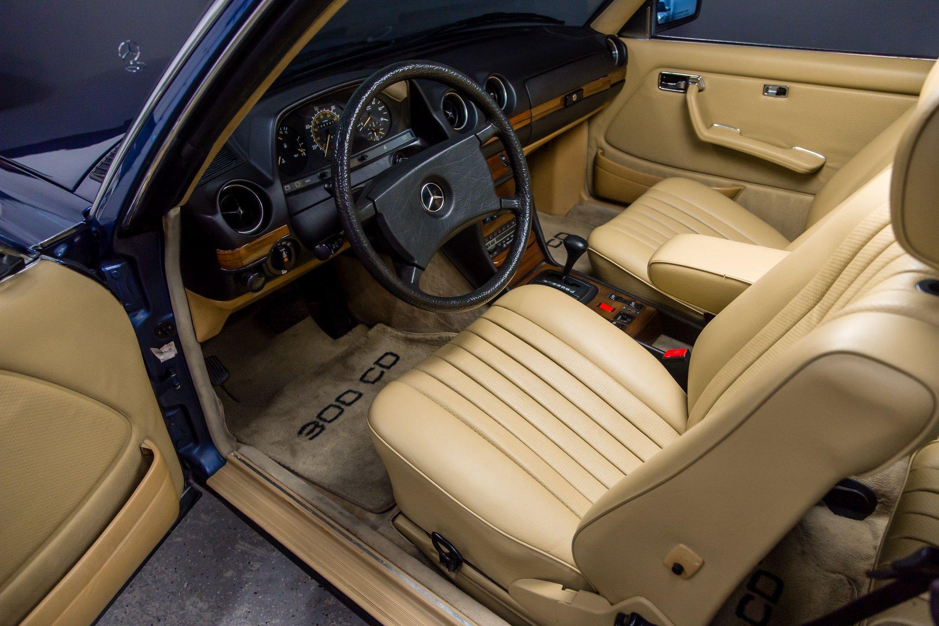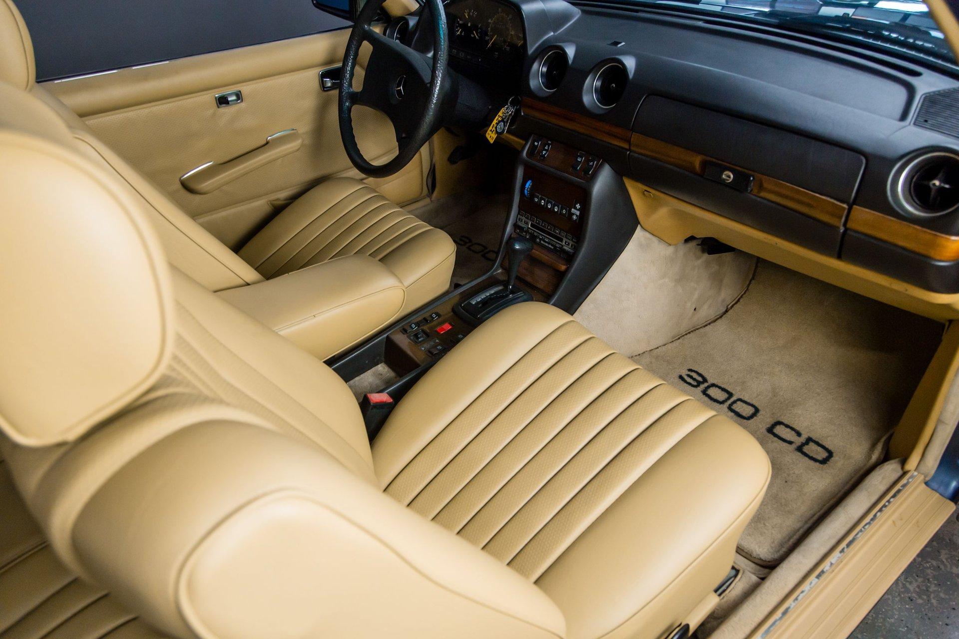 This lovely,, rare 300CD Turbo Diesel car is as nice in person as these 99 pictures reflect. The paint is outstanding with straight body panels and no indication of accident history rust history. The interior is as nice and crisp as shown with a crack free dash, crisp ,clean gauges that work as designed. The seats have nice original covering with full pleats .Headliner is good, all windows work properly. The Hvac system is in good order with cold A/C and warm heat. Tires are deep in tread.