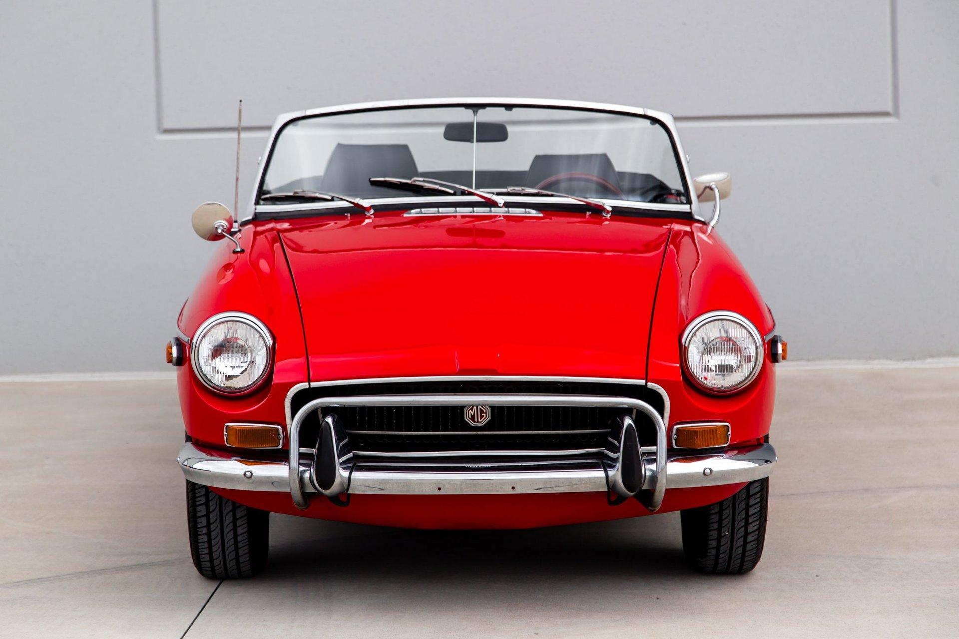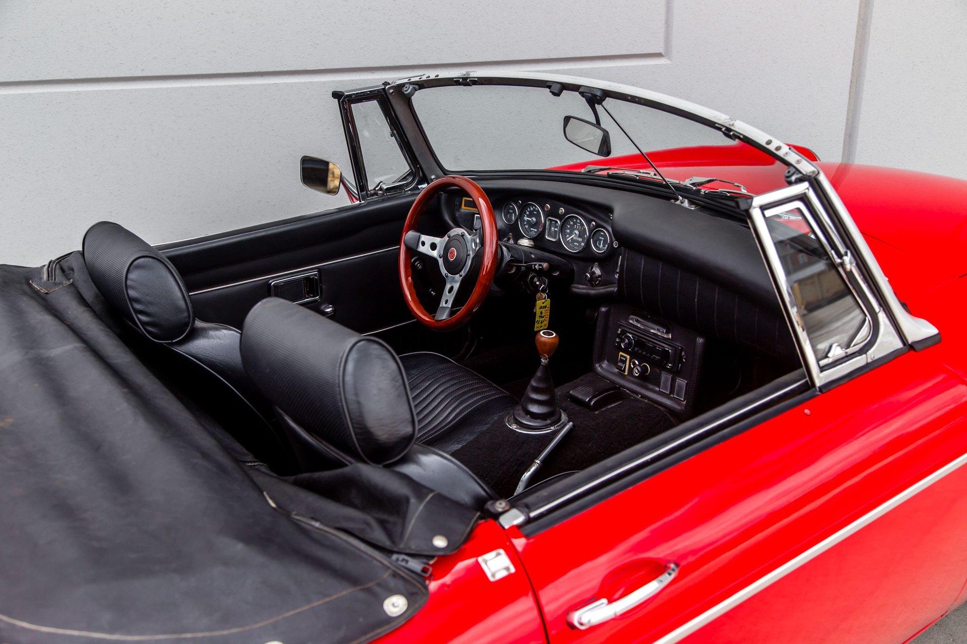 This rock solid MGB Roadster has enjoyed the same southern Florida owner for 26 years. The car is void of rust .Review the pictures posted and note the straight body panels and perfect body panel gaps. The paint on the car is as nice as reflected in the photos. The chrome on the car is good. Tires are deep in tread mounted to the original Rostyle wheels. The soft top is in good order as is the interior components ,carpets are good, seats are good, door cards are straight. Gauges are clean, crisp and work as designed.