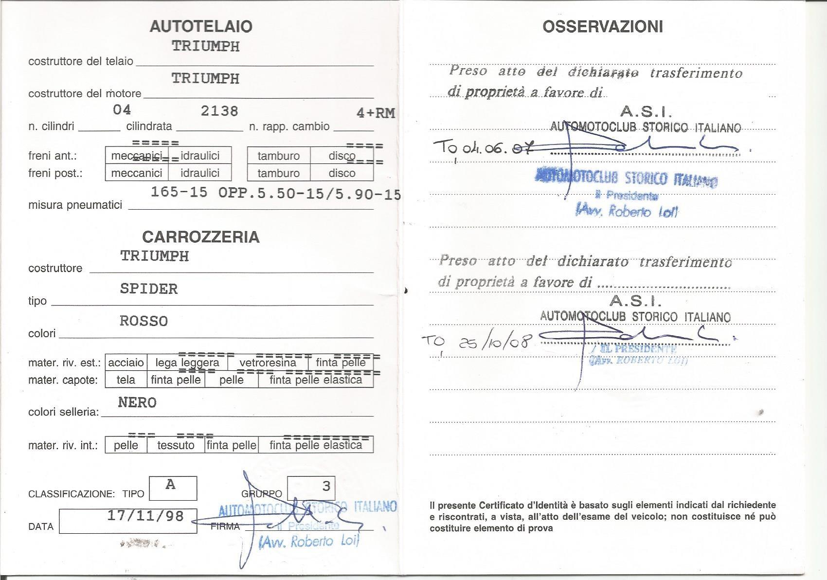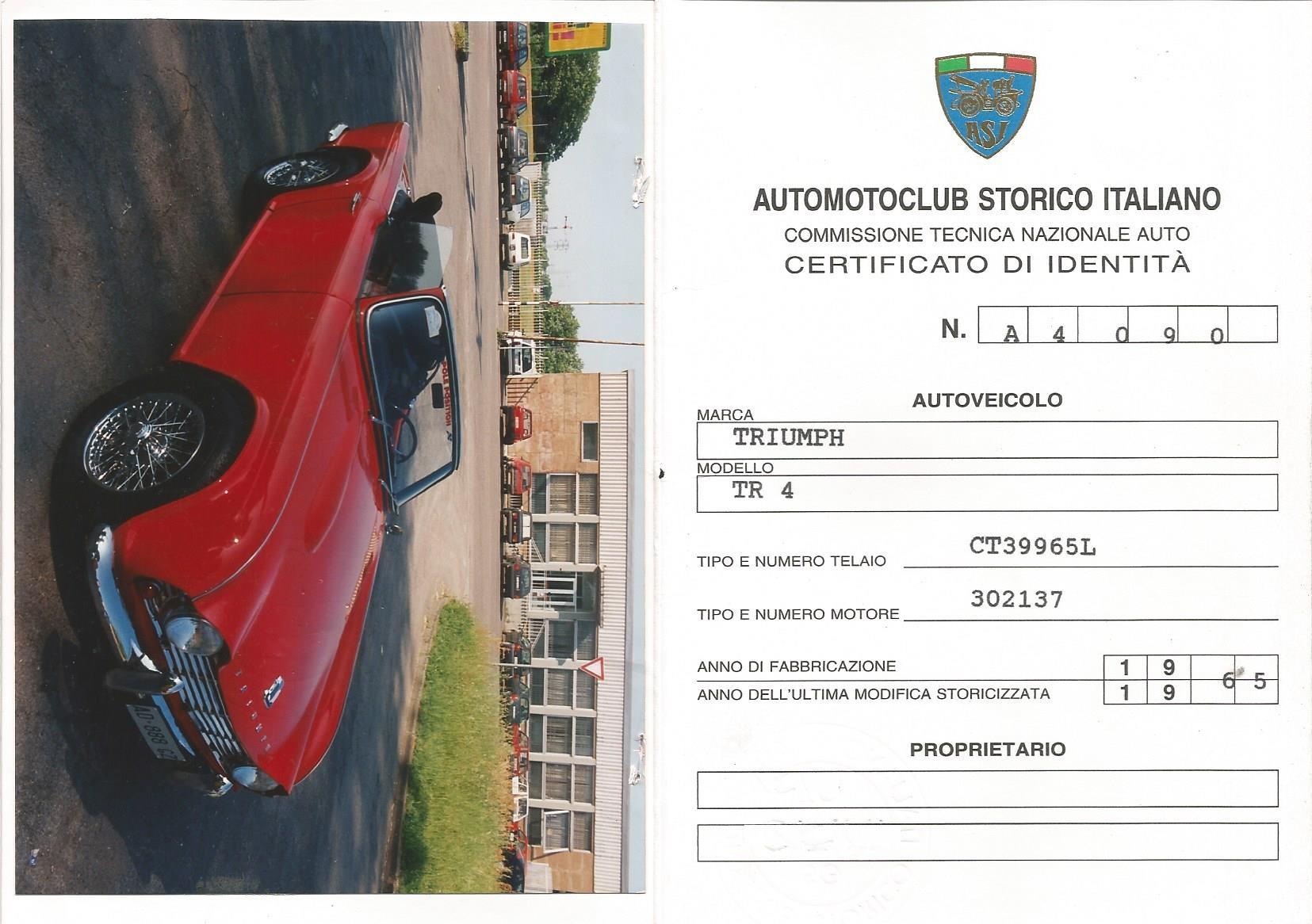 CERTIFICATION: ASI (Italian Historic Vehicle Register)