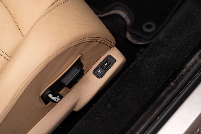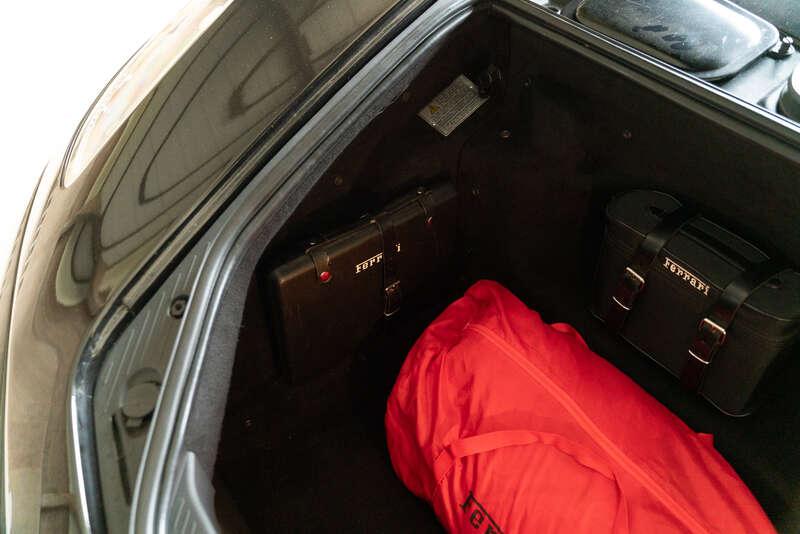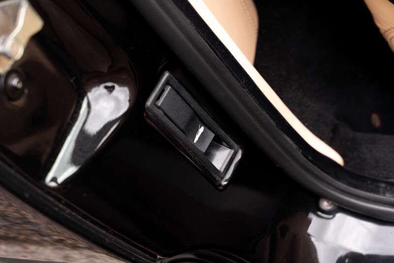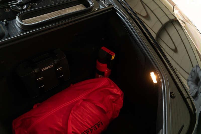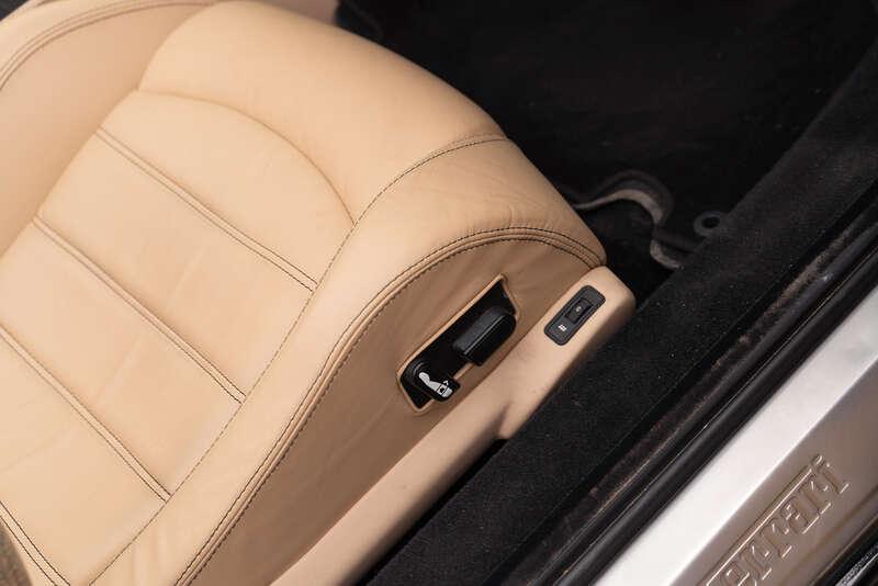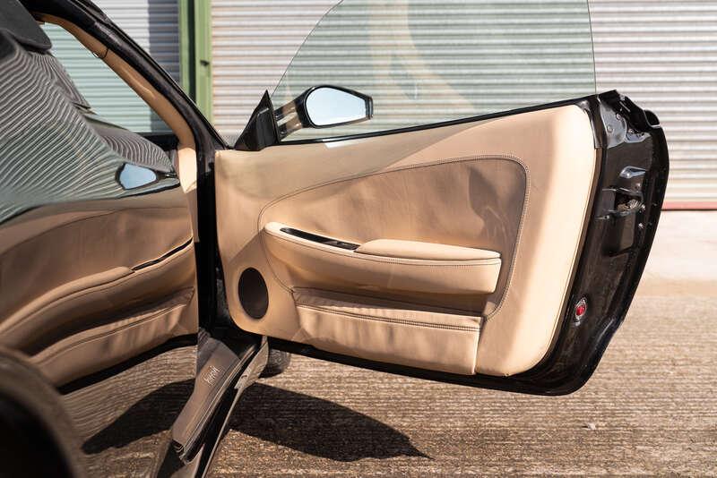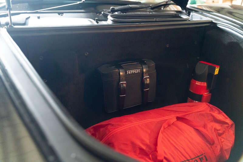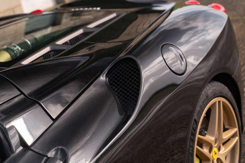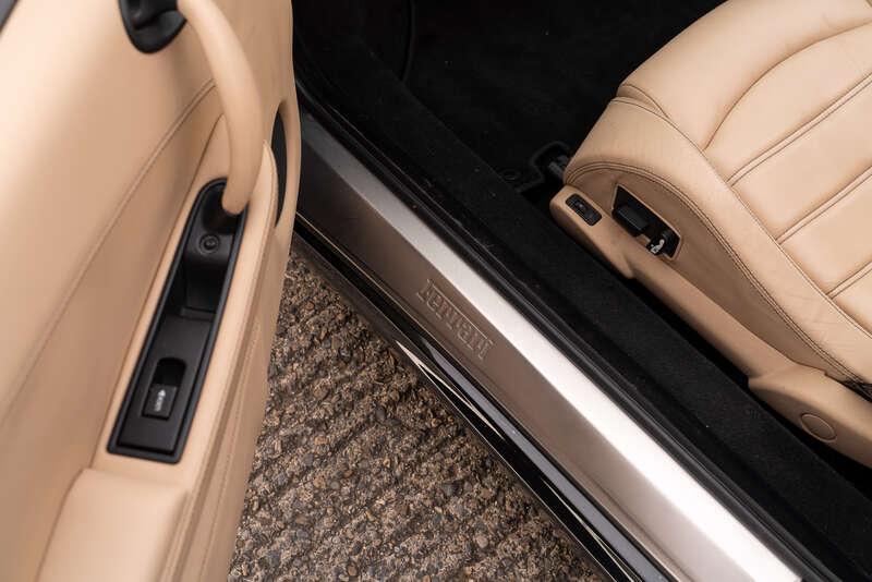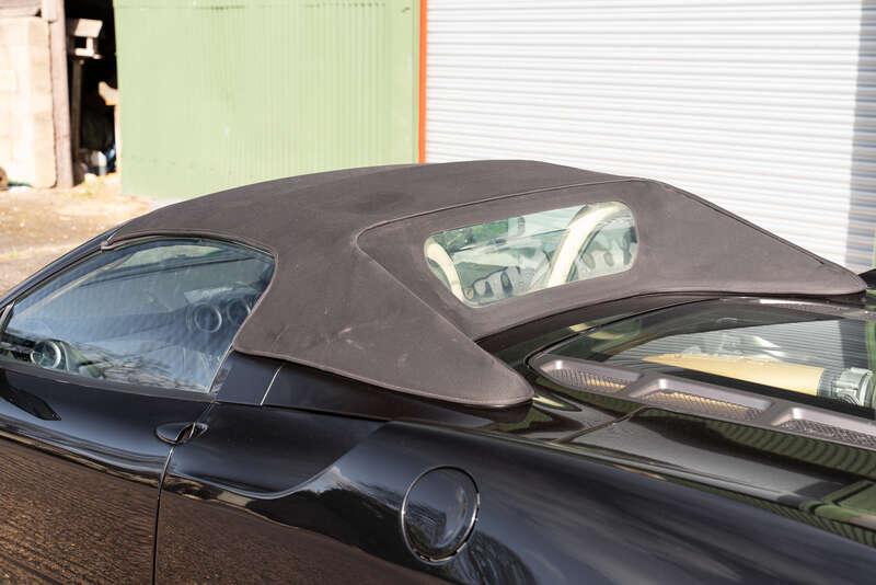 Beautifully presented in Nero Daytona, the specification is extensive, including Scuderia wing shields, black soft-top, matching black carpets and contrasting Sabia (sand) heated leather seats. As a late production example, it benefits from a particularly high level of options, notably carbon ceramic brakes (circa £20,000 option), front and rear parking sensors, NavTrak tracker and extended carbon fibre including the steering wheel and dashboard, complemented by Sabia leather-trimmed roll-over hoops. At the time of cataloguing the Ferrari showed 37,979 miles and presented exceptionally well, with the Nero Daytona paintwork protected by paint protection film and enhanced by a professionally-applied ceramic coating, giving excellent depth of finish while offering some additional protection.