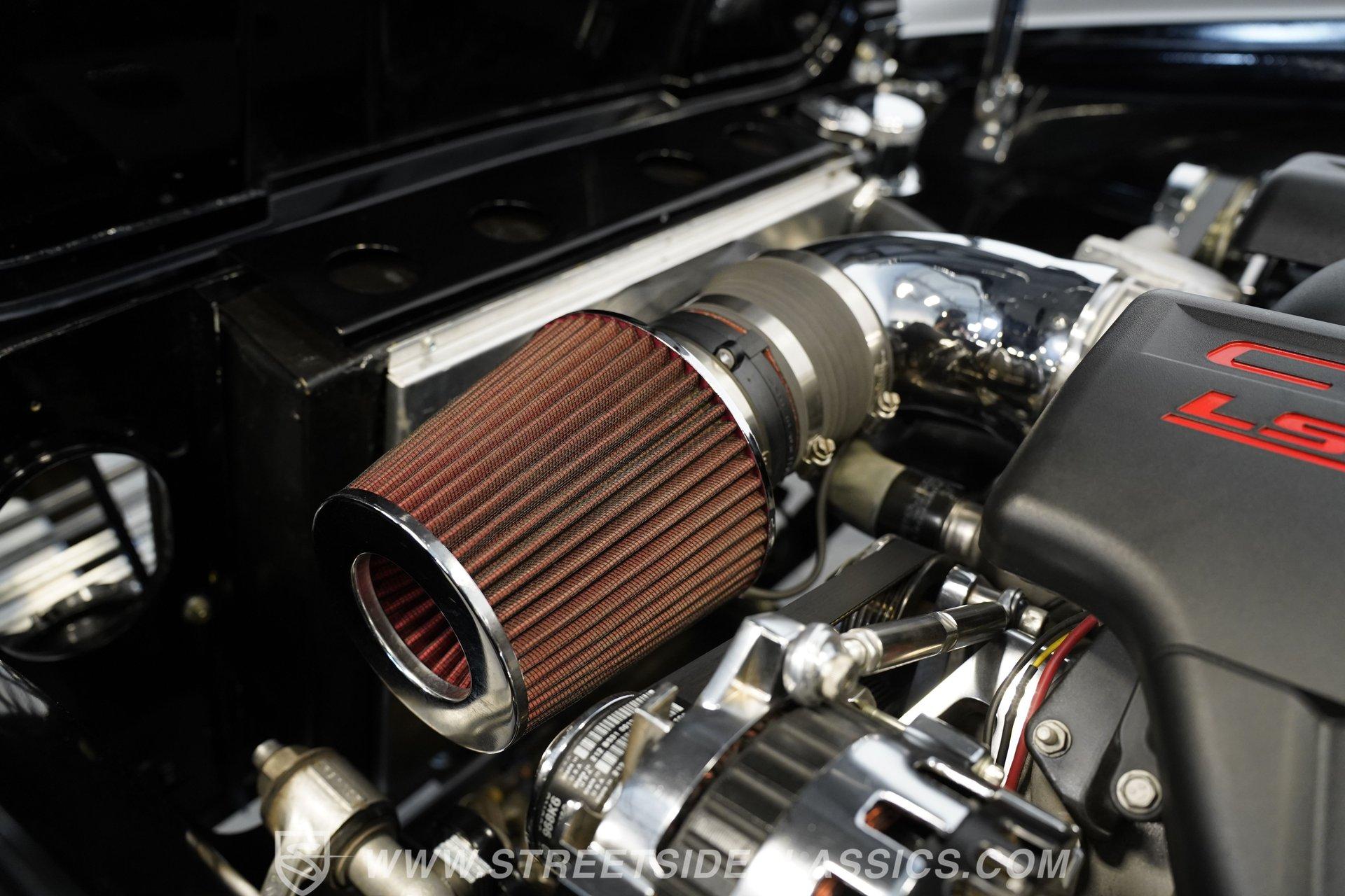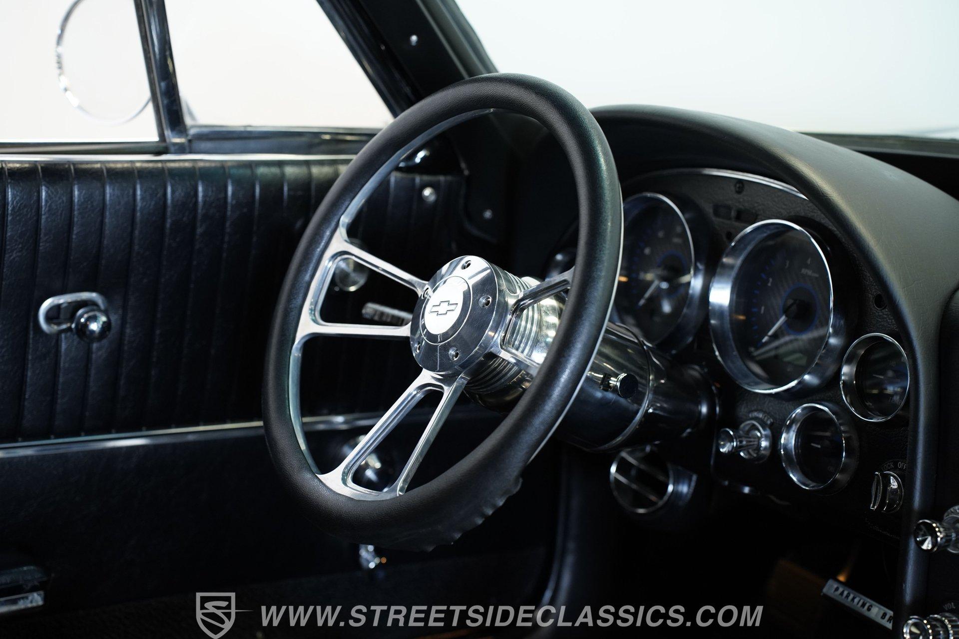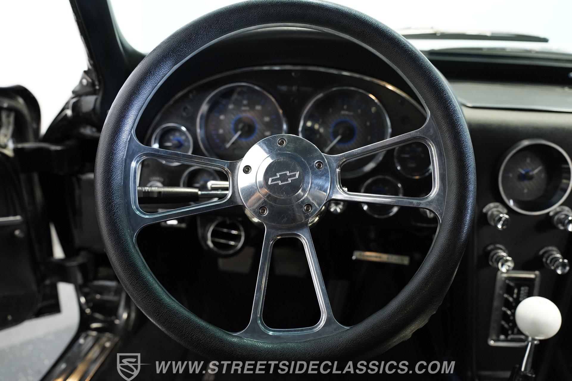 Underneath the hood, the heart of this restomod beats with a potent LS3 V8 paired with fuel injection for crisp throttle response and reliability. The Tremec 5-speed manual transmission ensures an engaging, hands-on driving experience, while polished headers and side exhaust pipes deliver a commanding exhaust note that thrills the senses. This Corvette rides on a custom tubular chassis by Jamison with C4 suspension and Corvette independent rear end, combining vintage looks with modern handling prowess. Power disc brakes on all four corners provide confident stopping power, making every twist and turn a true joy.