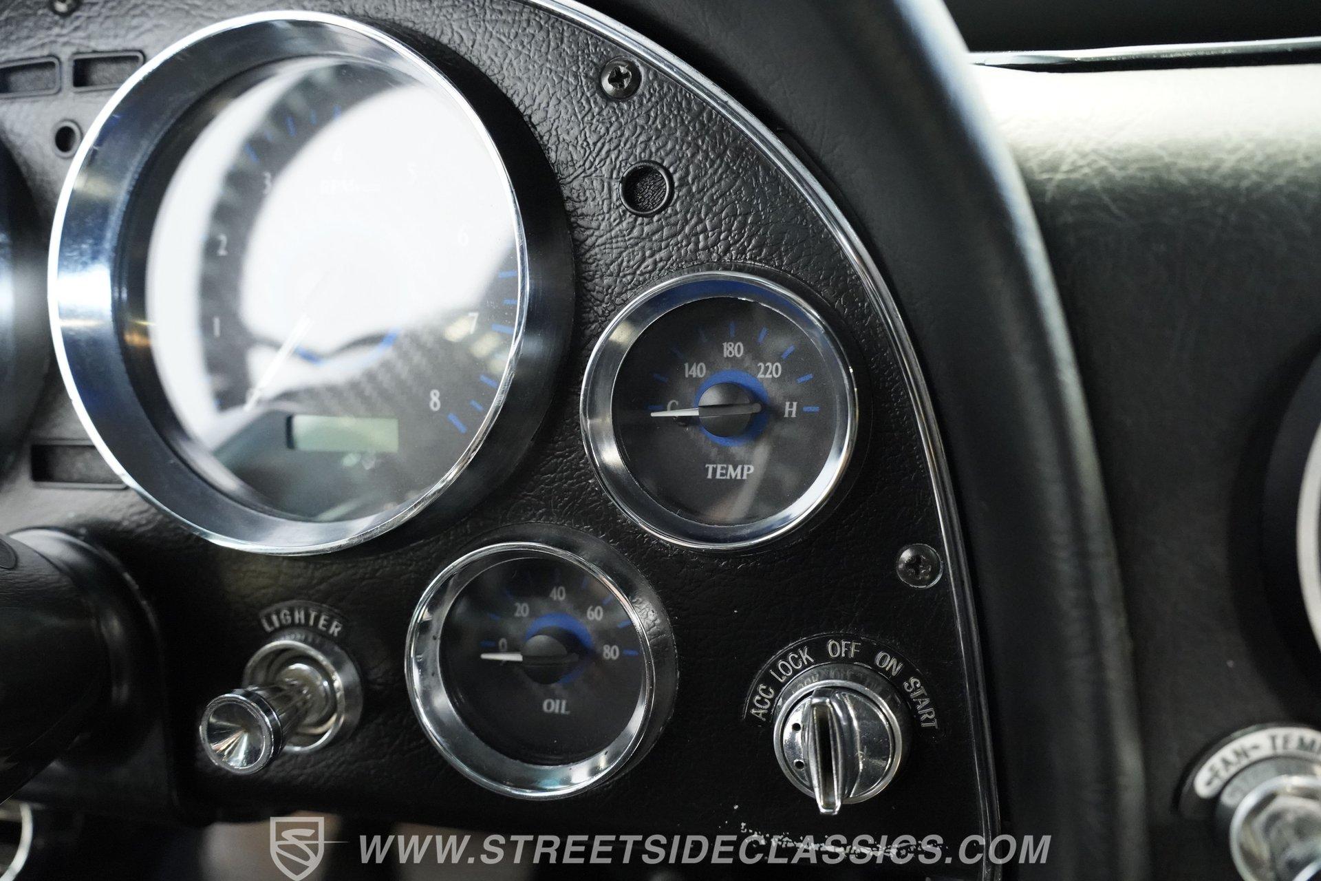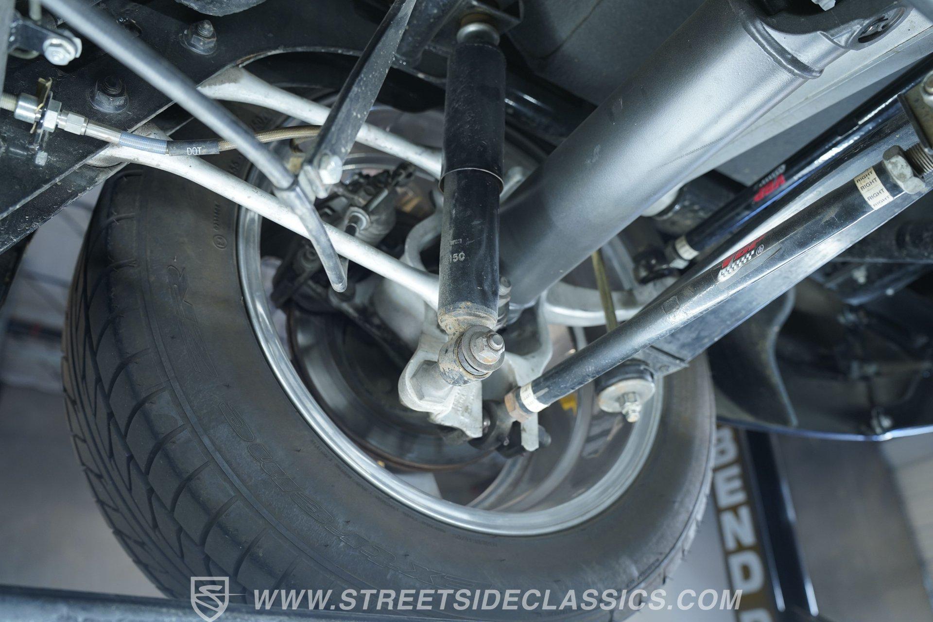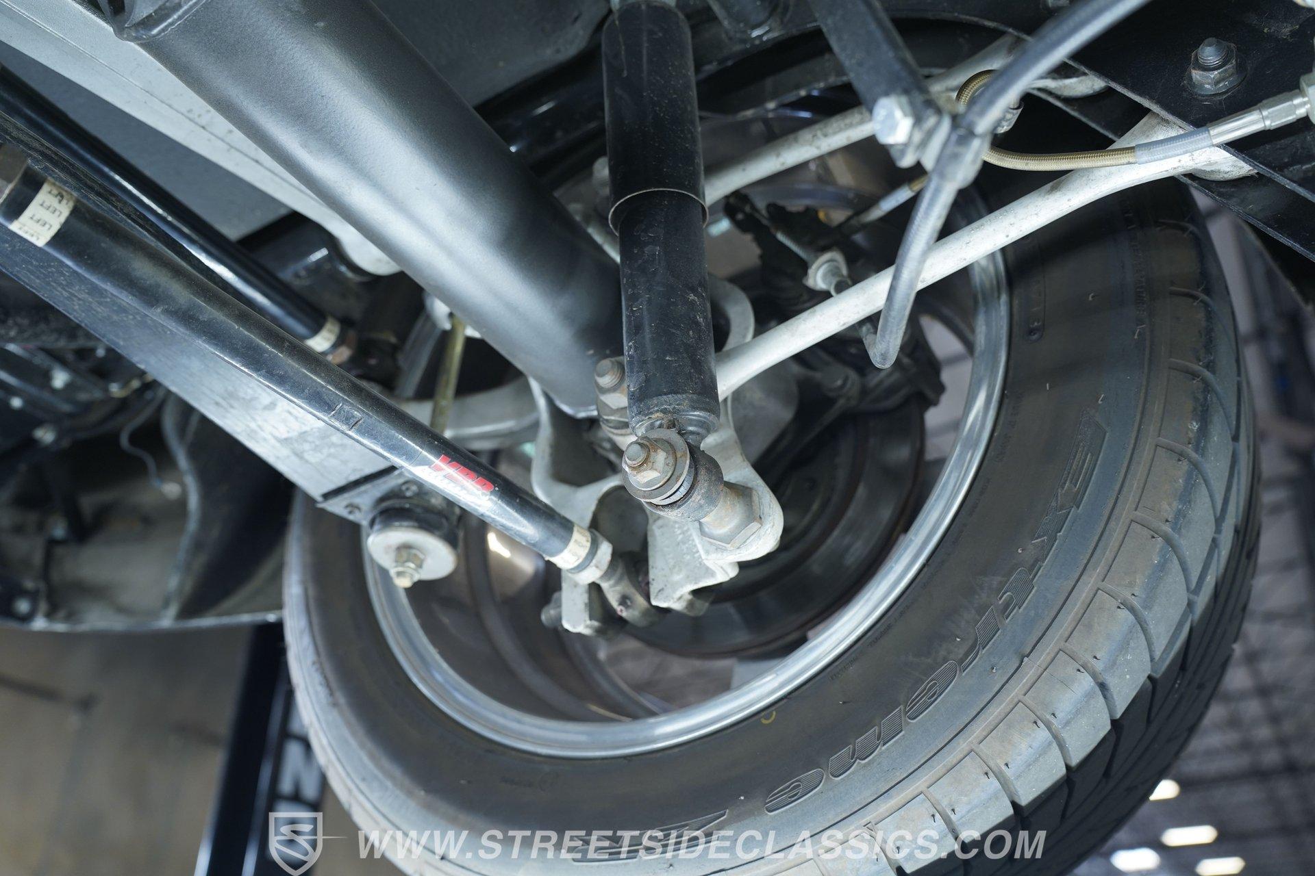 Inside the cockpit, you are embraced by a refined interior featuring luxurious leather bucket seats sourced from a 1993 Corvette, providing both comfort and support on every drive. The dash is outfitted with digital gauges and a matching digital clock, while an aftermarket polished steering wheel with tilt column enhances your grip and control. Additional touches like the Al Knoch interior, cruise control, and an AM/FM cassette stereo complete this driver-focused sanctuary with style and functionality.