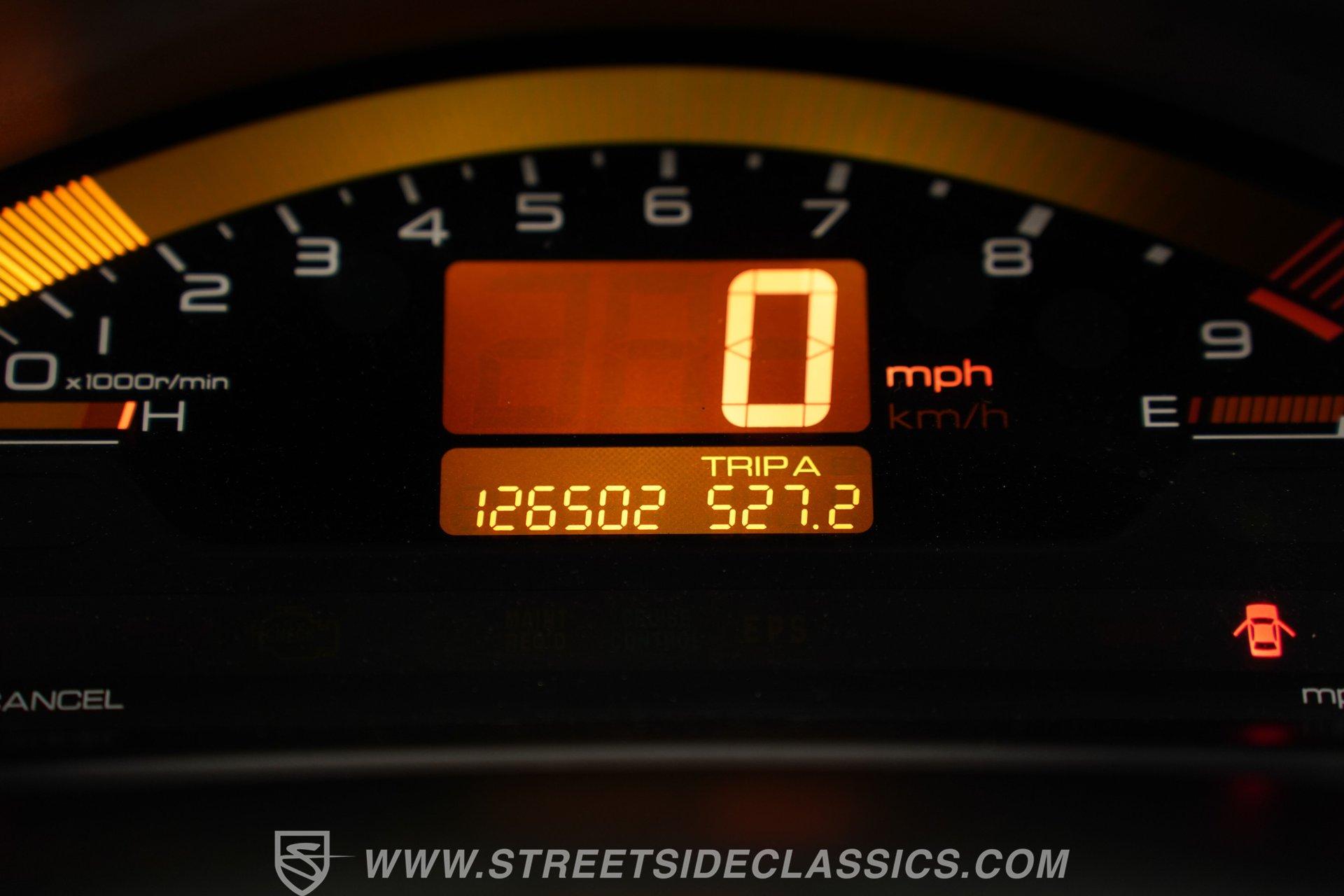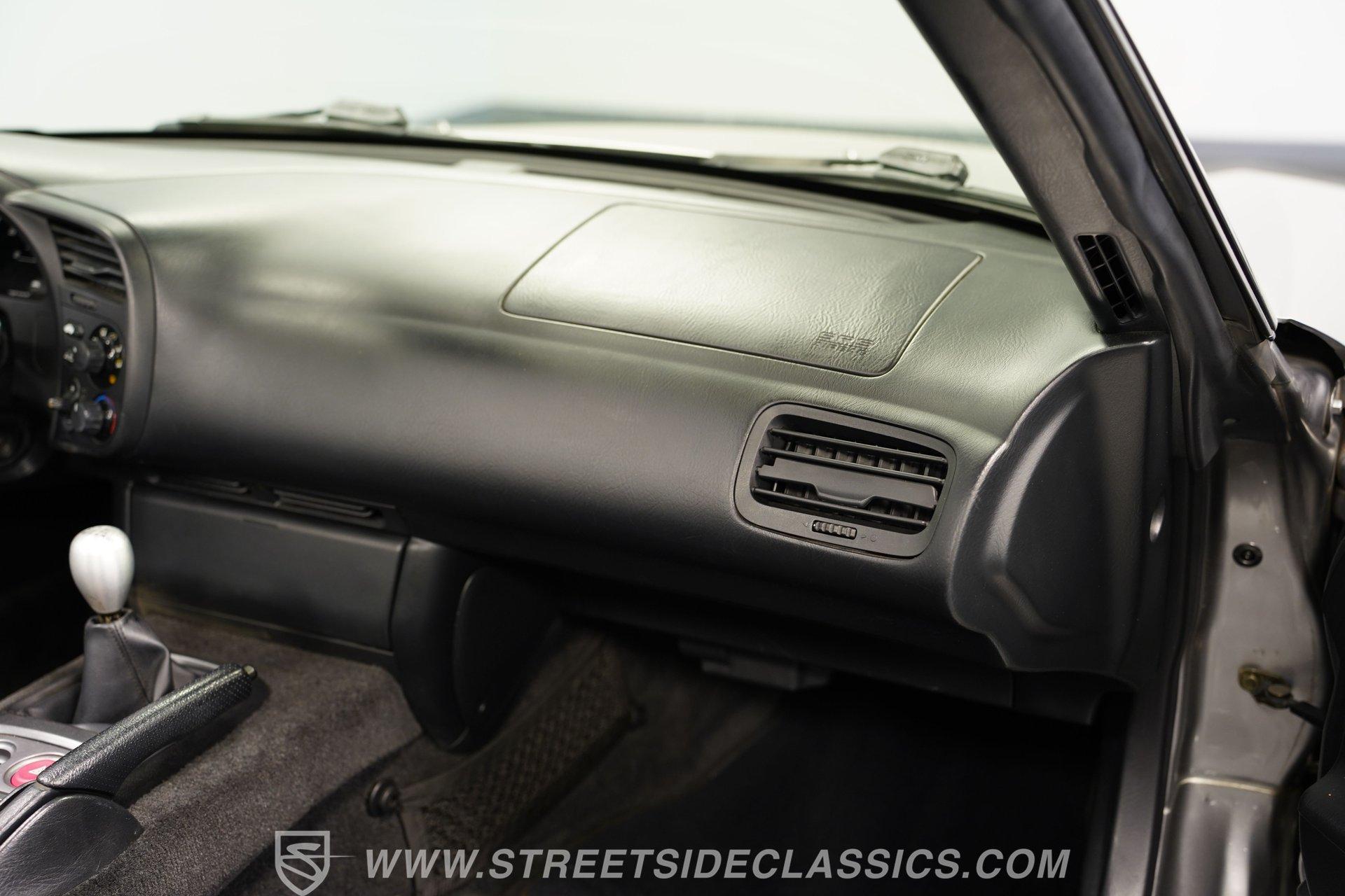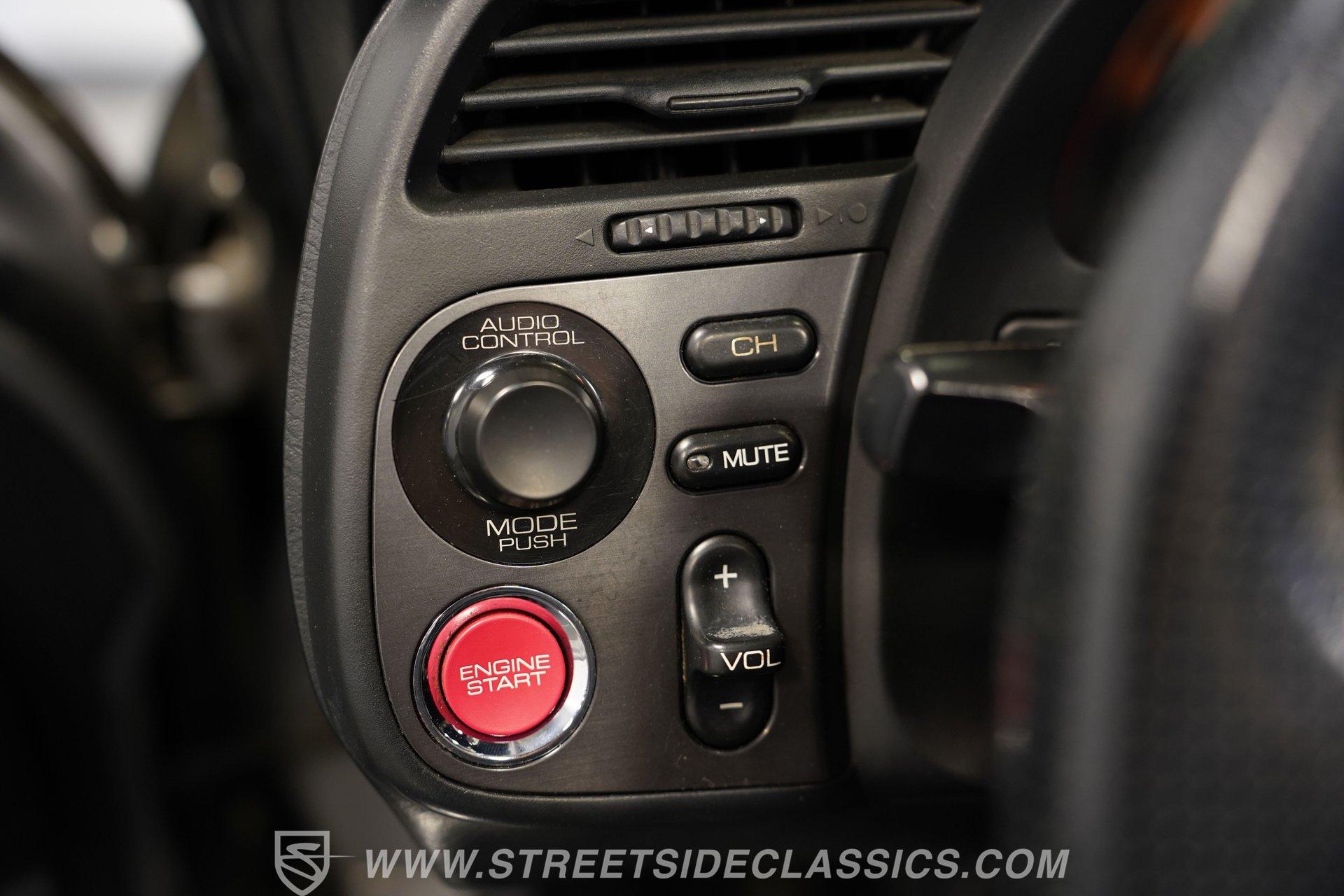 Under the hood, the 2.0L DOHC inline-4 with VTEC technology delivers a thrilling symphony of power and precision. This 6-speed manual transmission pairs perfectly with the engine's smooth shifts and the VTEC kick at 5,000 RPMs, providing a spirited and engaging drive. The dual exhaust rumbles with authority, while power steering and four-wheel disc brakes ensure this S2000 handles with confidence and responsiveness on every road.