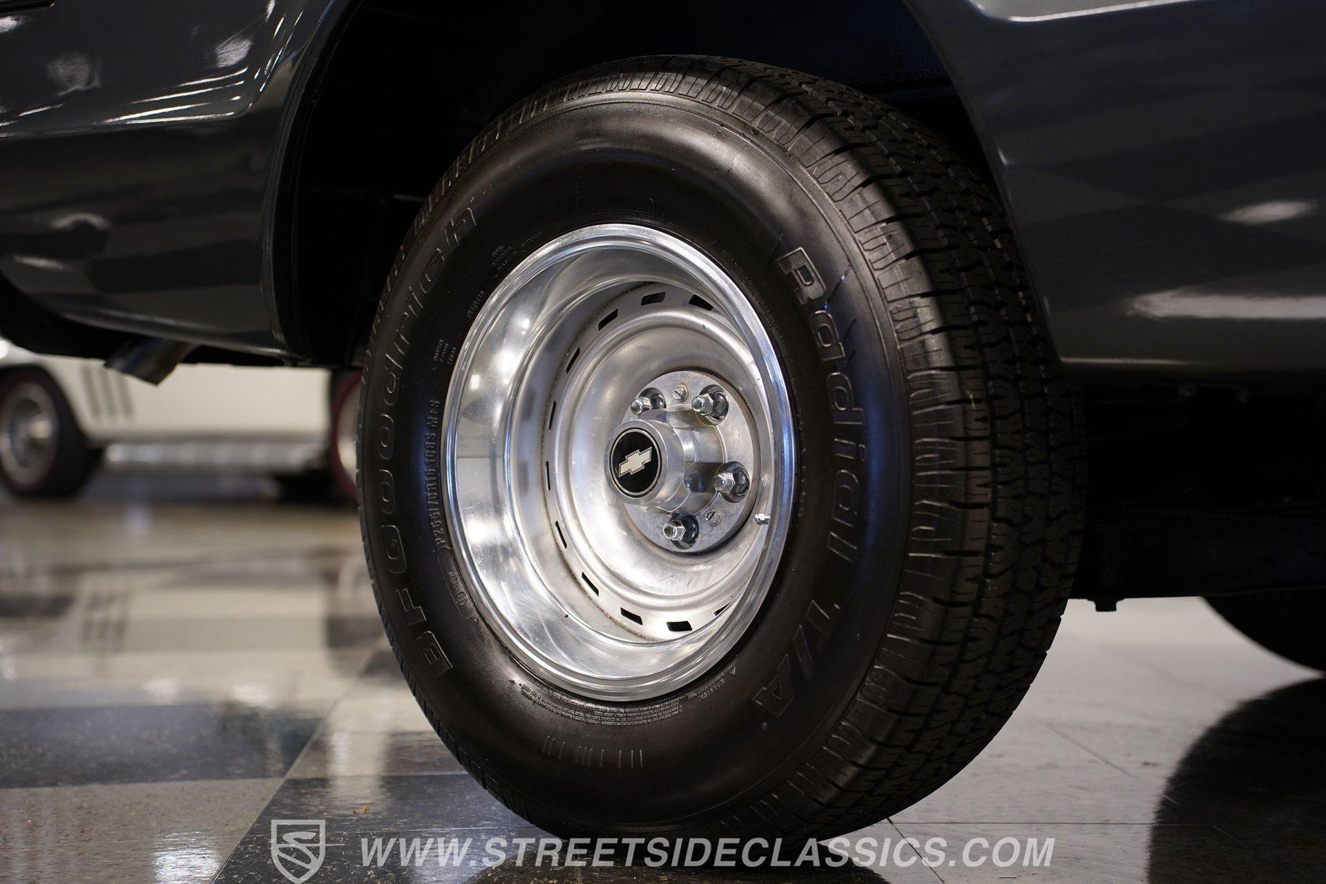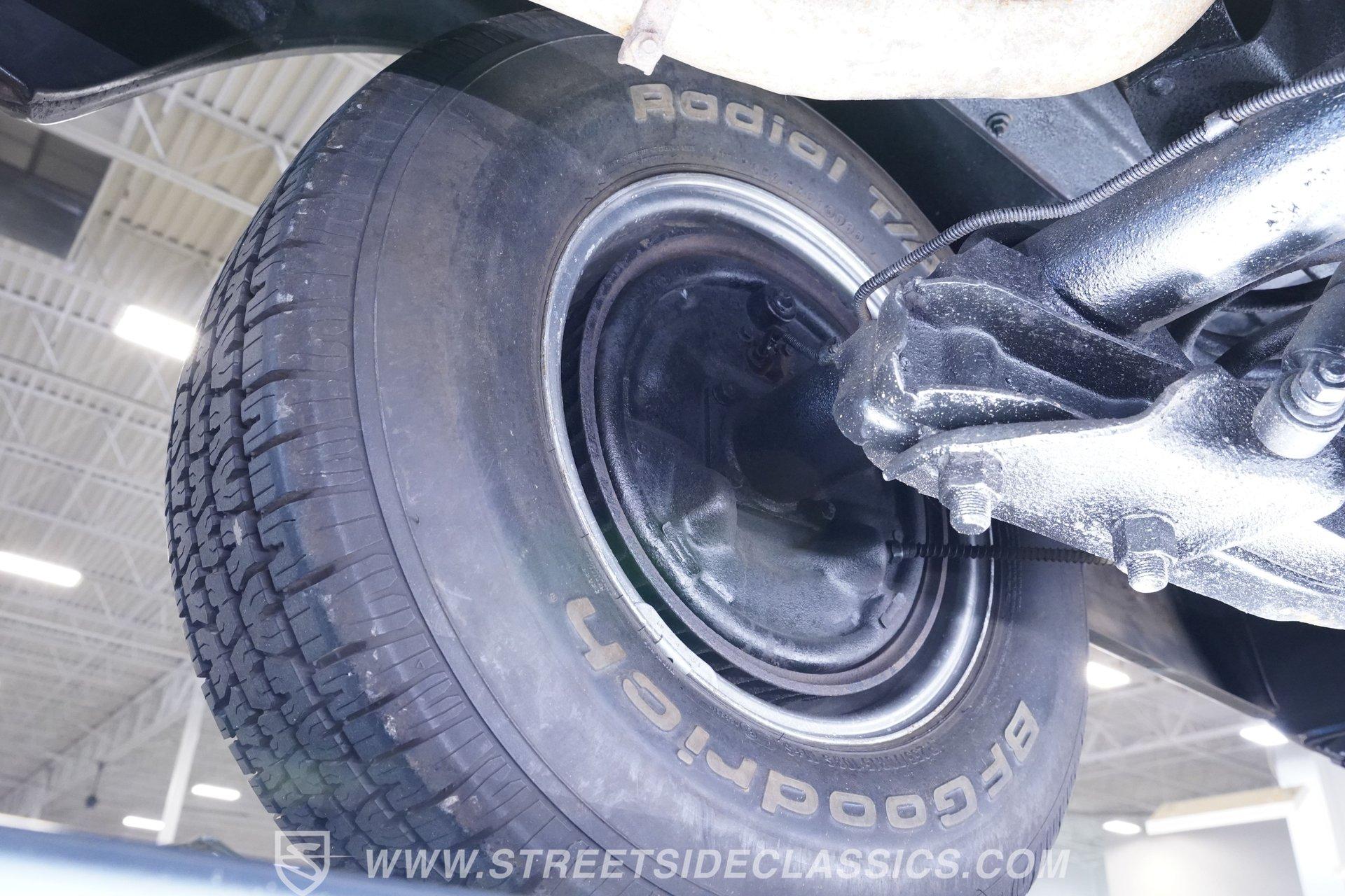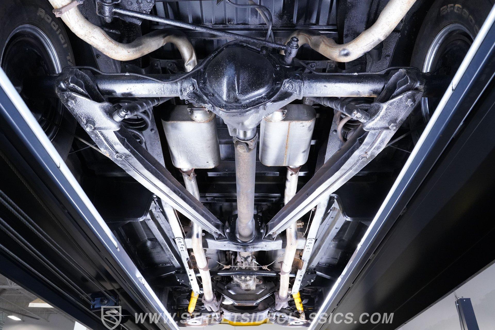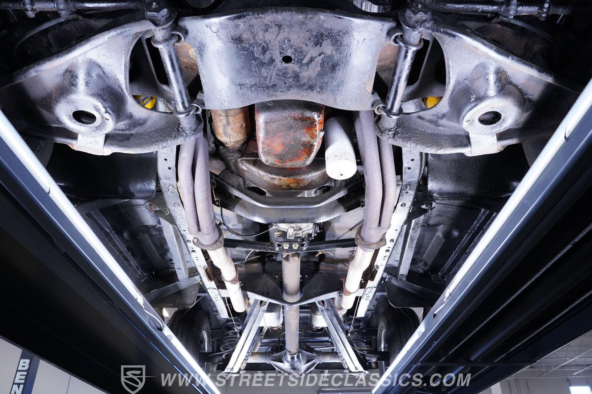 Beneath the hood lies a spirited 327 V8 paired with an Edelbrock single 4-barrel carburetor, long tube headers, and a Muncie 4-speed manual transmission that demands driver involvement. The thrumming 12-bolt rear end and dual exhaust with Thrush mufflers deliver a growl that stirs the soul. Steering and brakes are manual, offering a pure, connected driving experience that harkens back to a simpler time where every shift and turn is felt, not filtered.