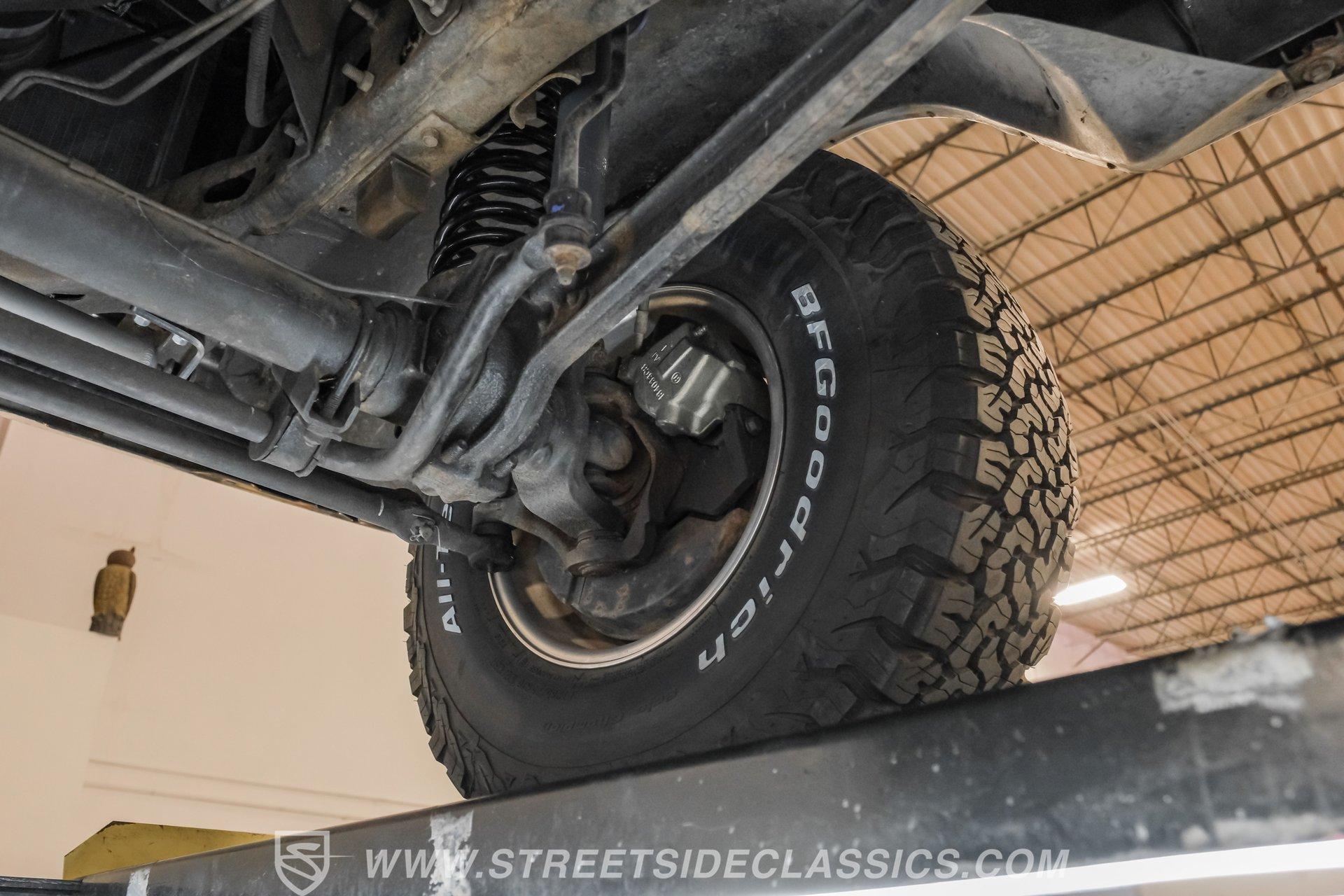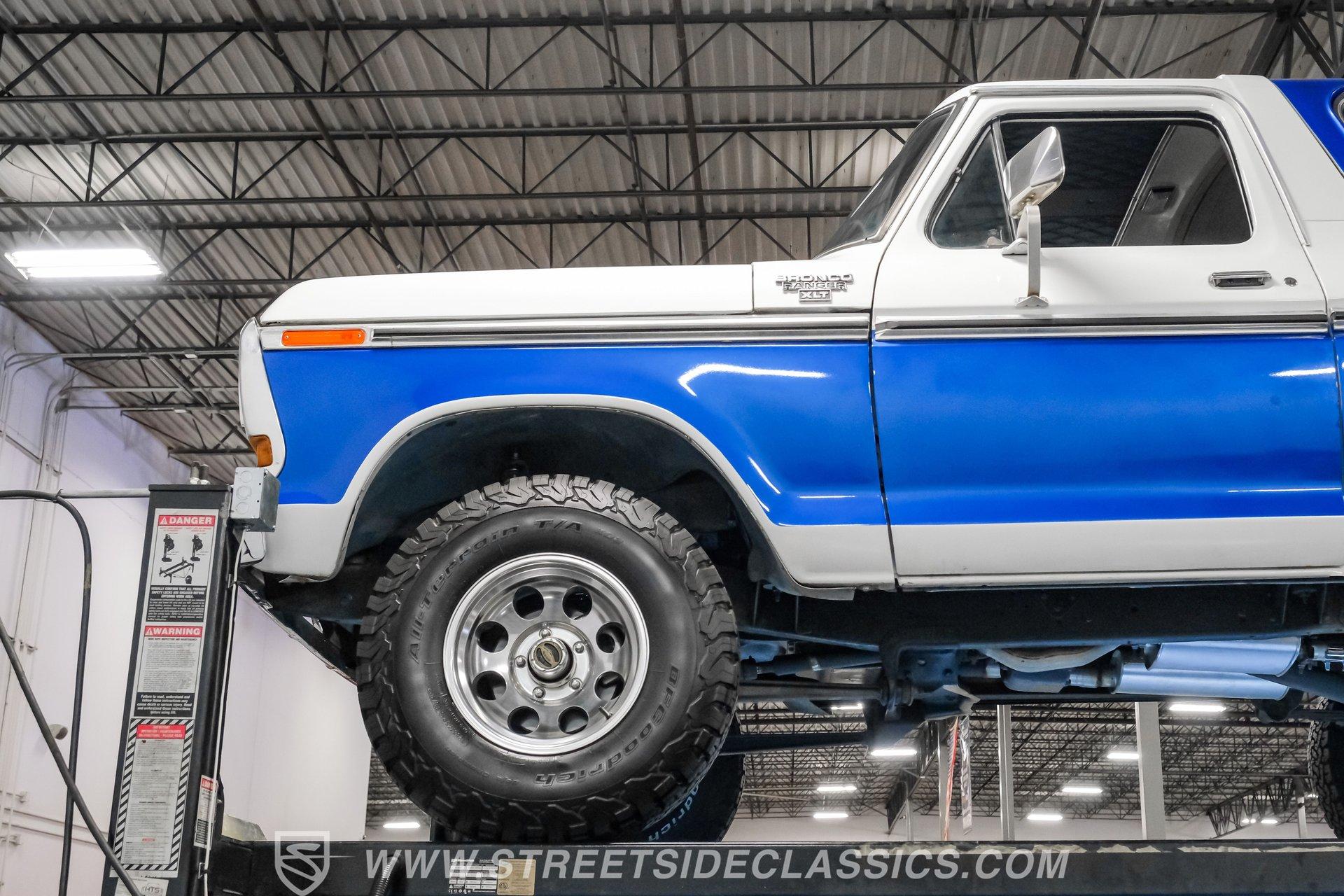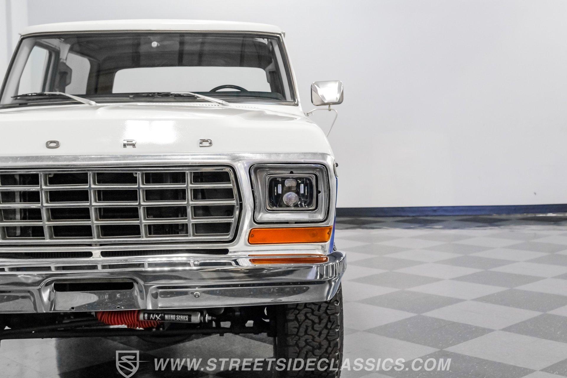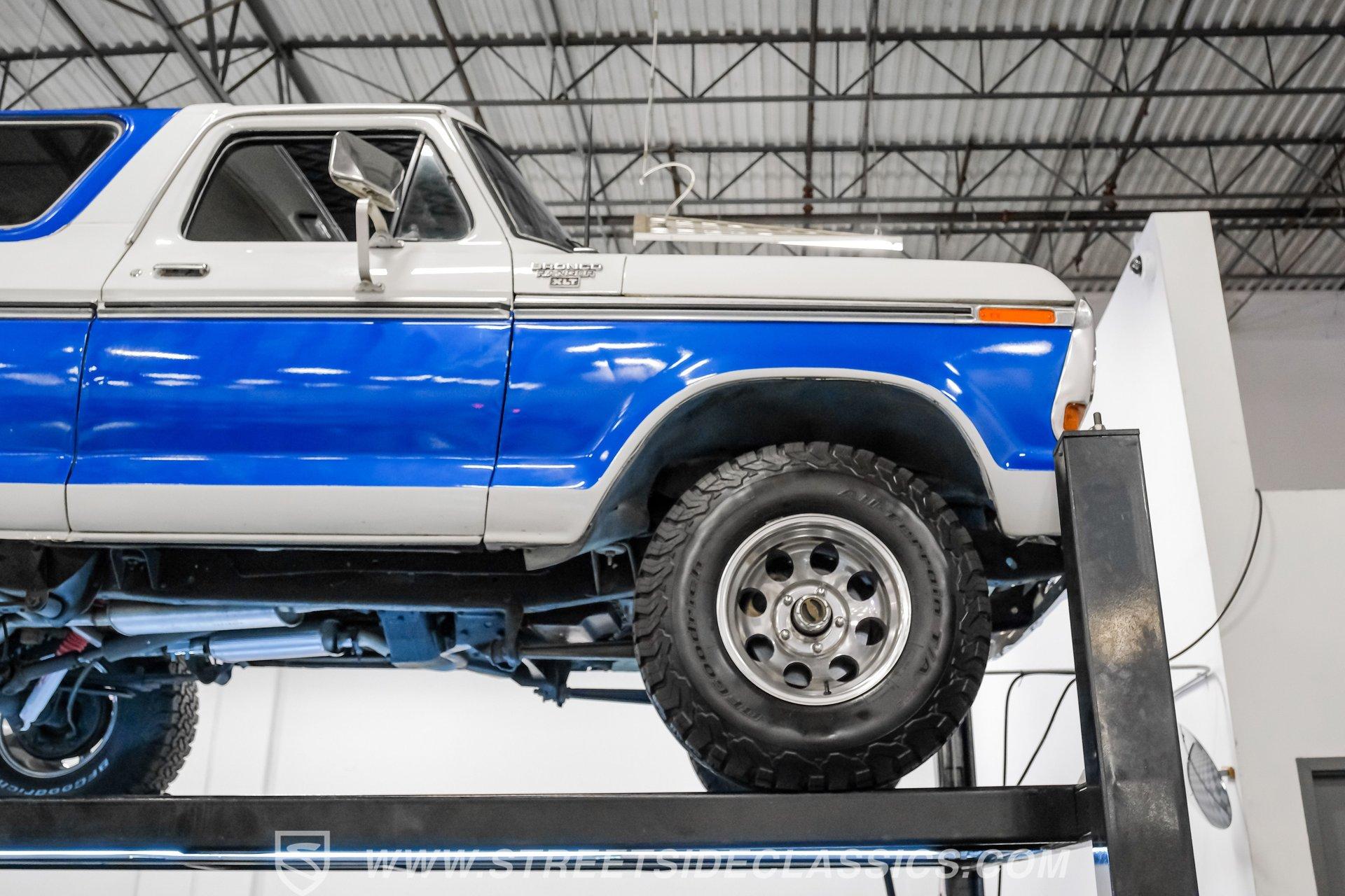 Few vehicles capture classic off-road appeal like this 1979 Ford Bronco, a driver-quality SUV that blends vintage character with standout presence. Repainted in timeless Wimbledon White with blue accents, this Bronco presents a tough attitude while still retaining the character that makes these trucks so desirable. The removable hardtop delivers true open-air cruising when the mood strikes, while factory chrome bumpers add just the right amount of vintage flash. Sitting confidently on 16-inch Pro Comp polished aluminum wheels wrapped in BFGoodrich tires, this Bronco has the stance and presence to match its legendary reputation. It's a driver-quality classic that blends old-school style with the upgrades enthusiasts want for real-world enjoyment.