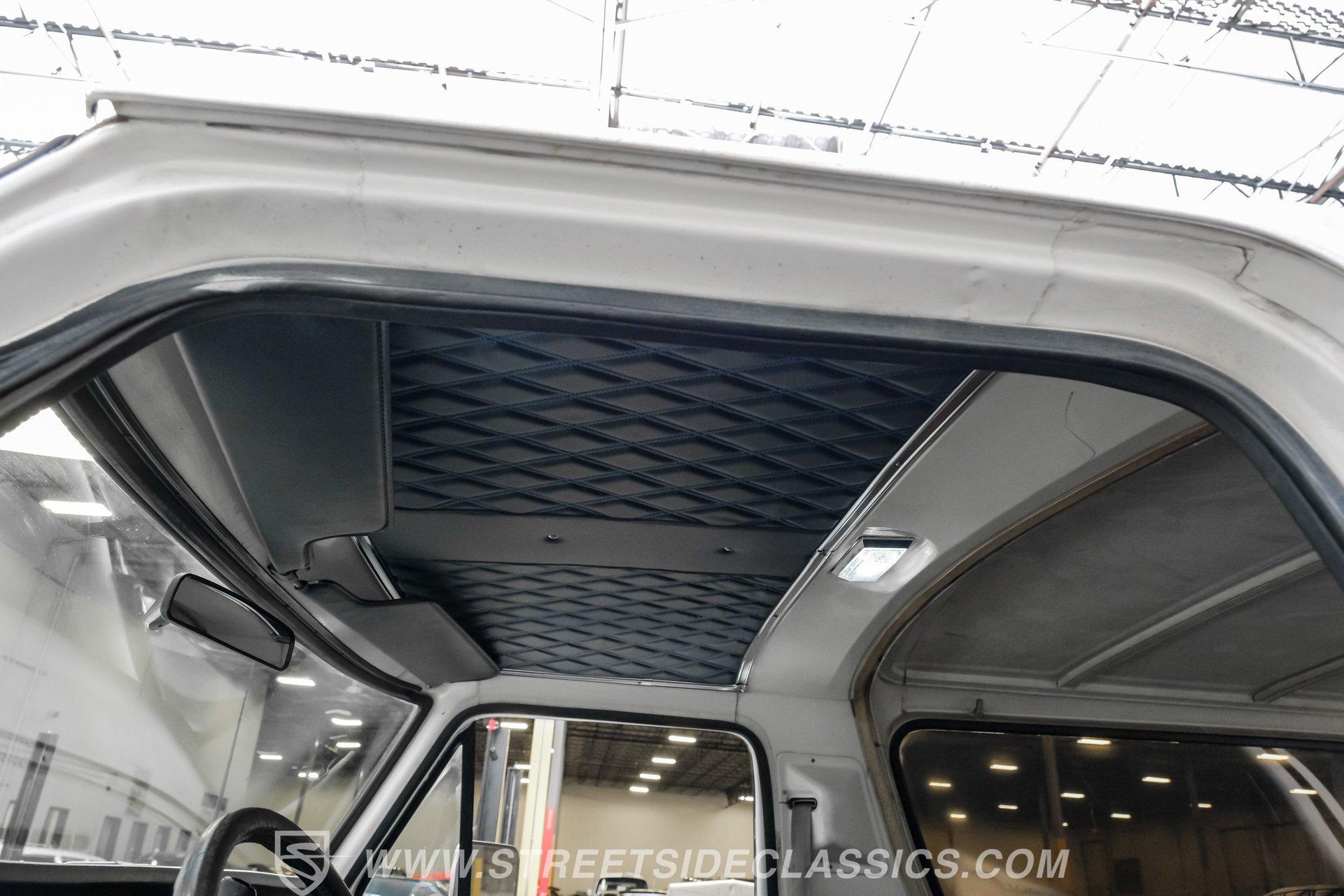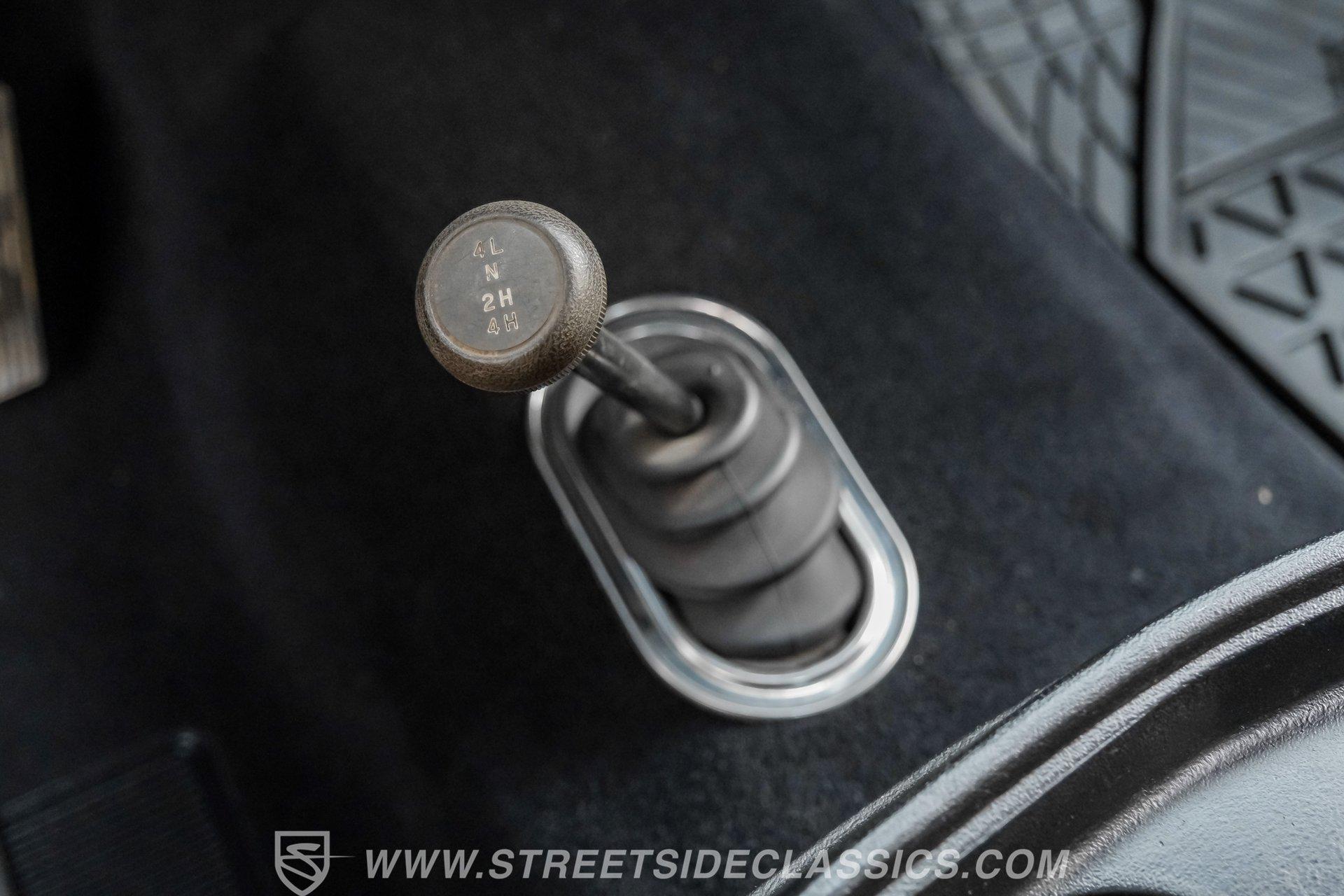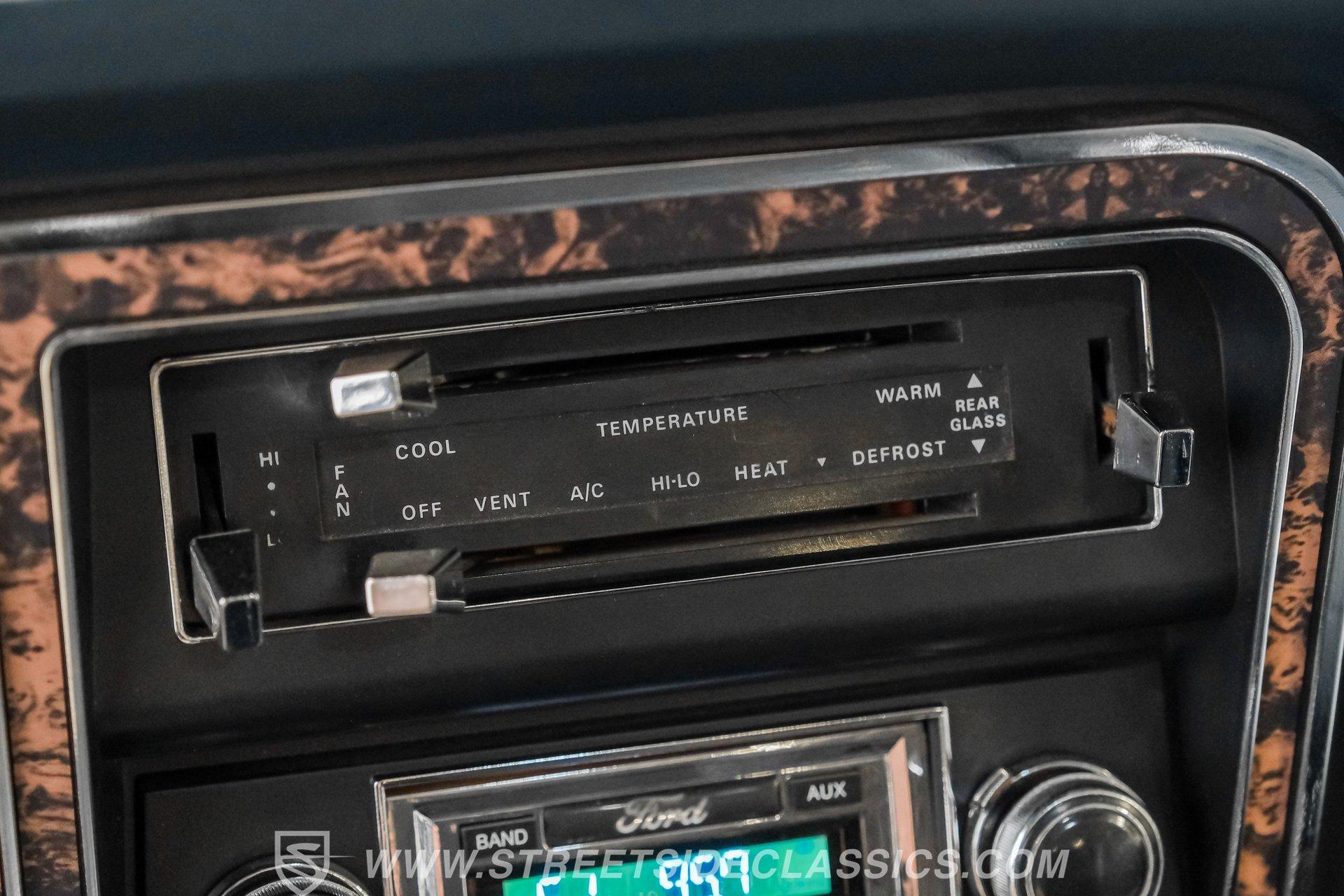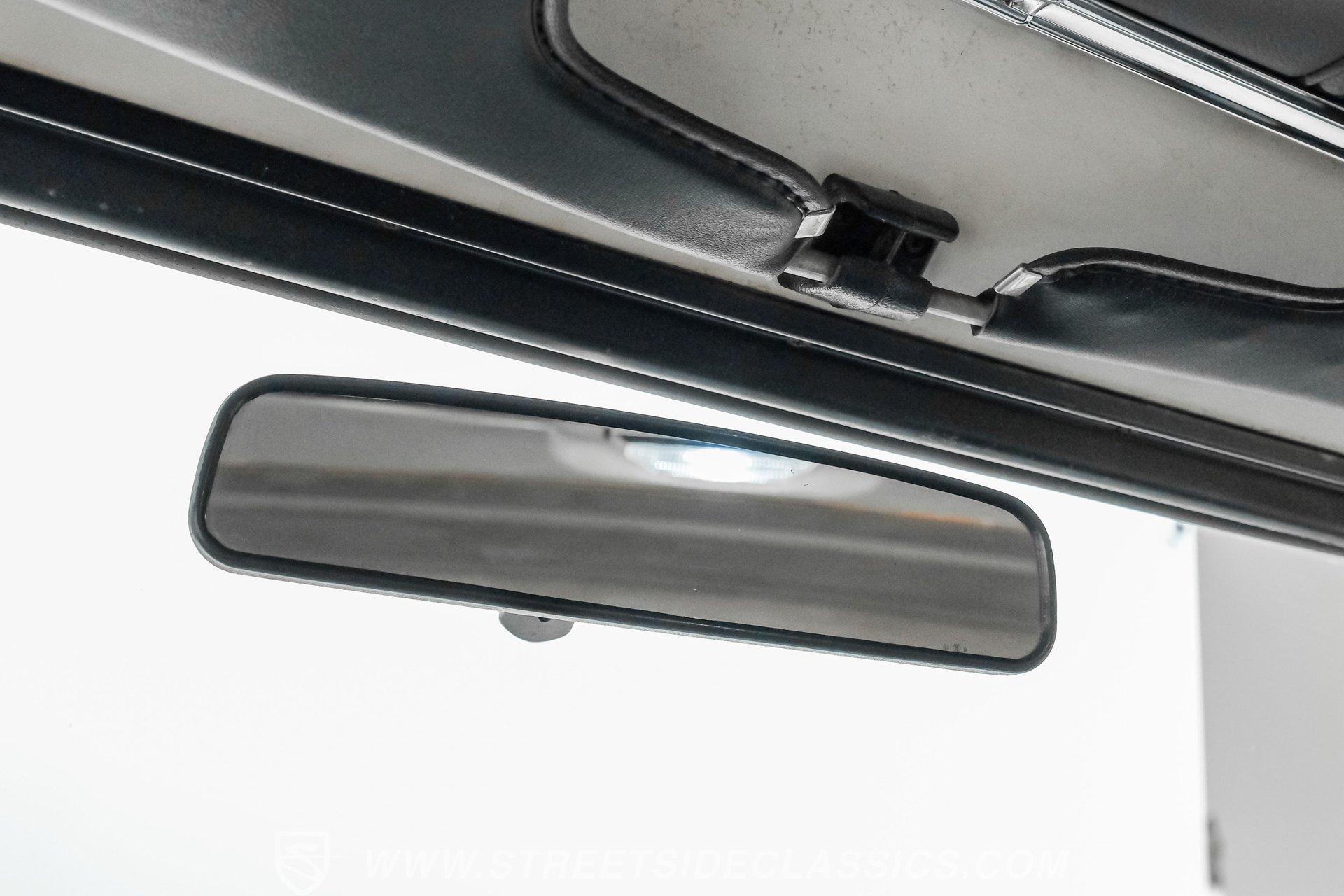 The cabin invites you to sink into custom diamond-stitched blue vinyl bucket seats, perfectly paired with matching door panels and a headliner that refreshes the classic vibe. The black carpet feels fresh underfoot, while the factory dash and gauges maintain that authentic Bronco experience. A modern vintage AM/FM/Aux radio adds convenience without sacrificing style, and the center console with cupholders keeps essentials within easy reach during every journey.