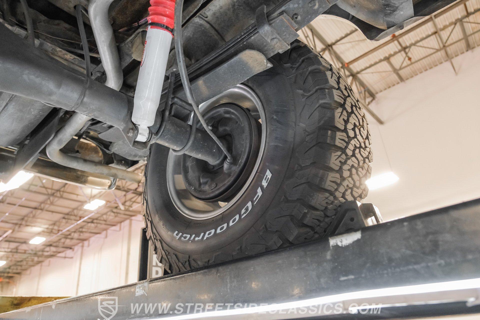 Under the hood lies the heart of a 351M V8 engine, delivering the rumble and raw power that Bronco enthusiasts crave. The 3-speed C6 automatic transmission smoothly channels power to the Dana 44 front axle and Ford 9'' rear, backed by power disc brakes up front and power drums in the rear. Upgraded suspension components like BDS NX Nitro dual steering stabilizers and Rancho shocks ensure a composed ride on or off pavement. The dual exhaust adds a throaty soundtrack that completes the driving experience with u unmistakable presence.