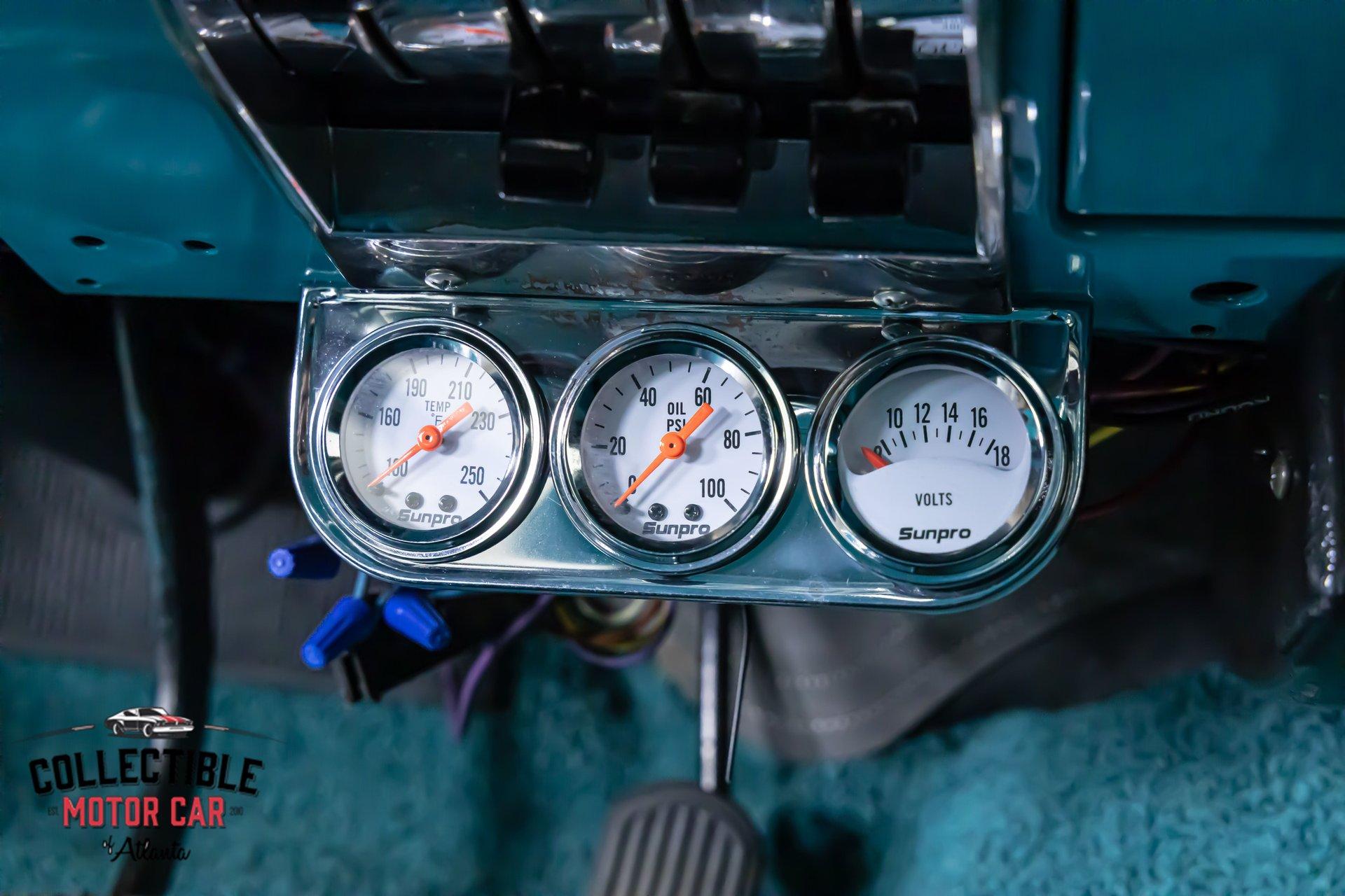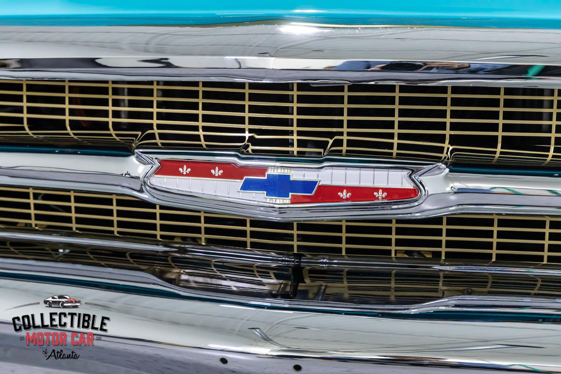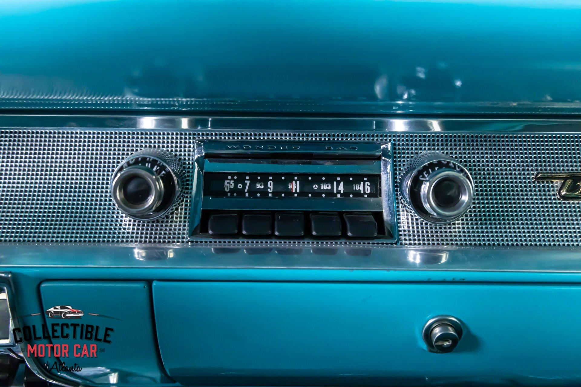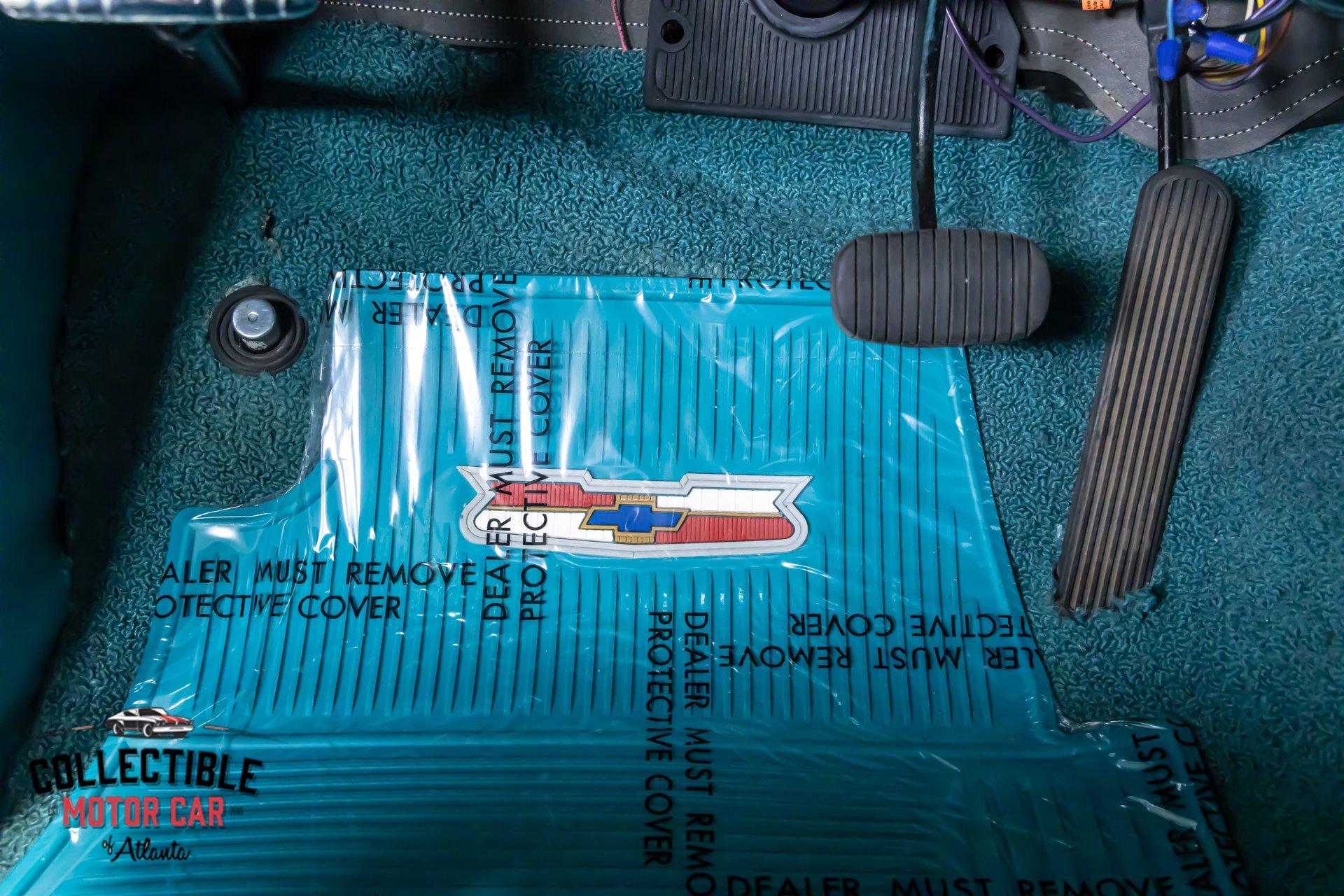 Inside, the turquoise and black interior is exactly what you want to see in a Bel Air. It is bright, period-correct in feel, and full of character. The cabin has been updated with a custom steering wheel and tilt column for a more comfortable driving position, while auxiliary under-dash gauges help keep an eye on vital engine functions. The bench seats, door panels, dash layout, and color combination all work together to deliver that unmistakable mid-century Chevrolet vibe, but with a few upgrades that make it easier to live with.