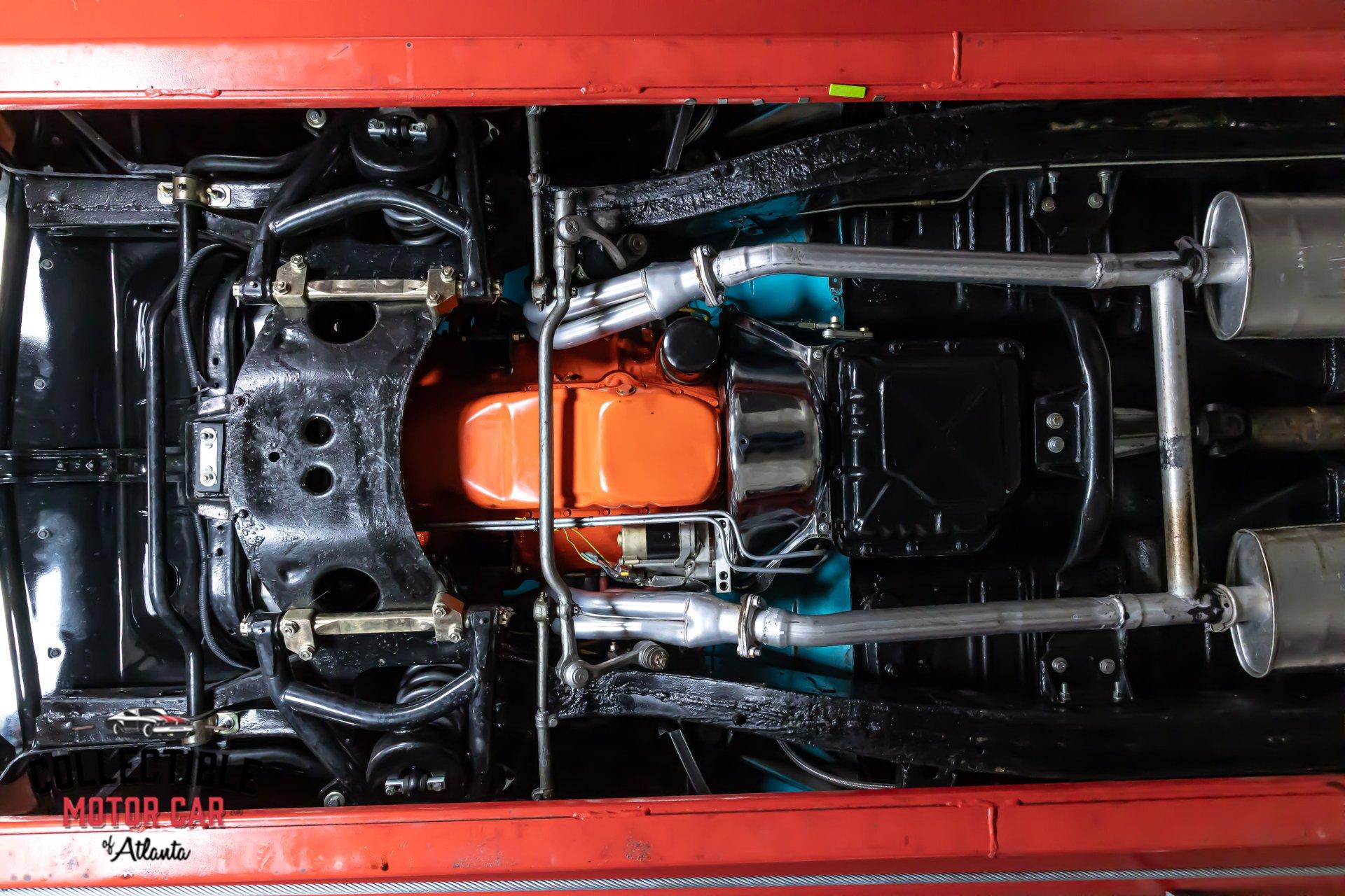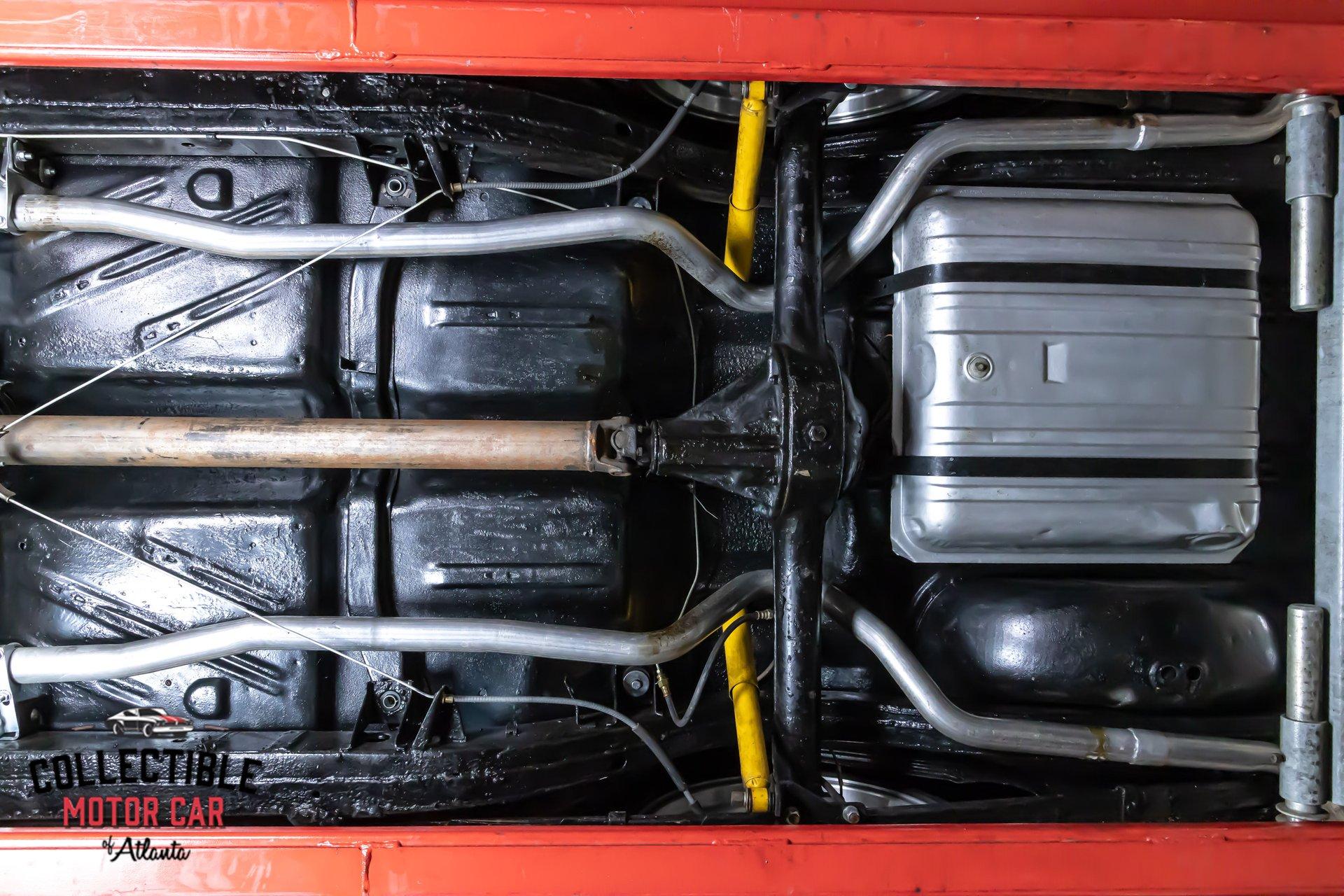 Underneath, this Bel Air shows signs of thoughtful upgrading where it counts. The front suspension appears to have been modernized with tubular control arms and coilover-style components, helping improve stance, handling, and road feel over a stock setup. Front disc brakes add confidence behind the wheel, and the dual exhaust gives the car the right tone without taking away from its refined cruiser personality. Altogether, it is a classic Chevy that looks right, sits right, and drives like a car built to be enjoyed.